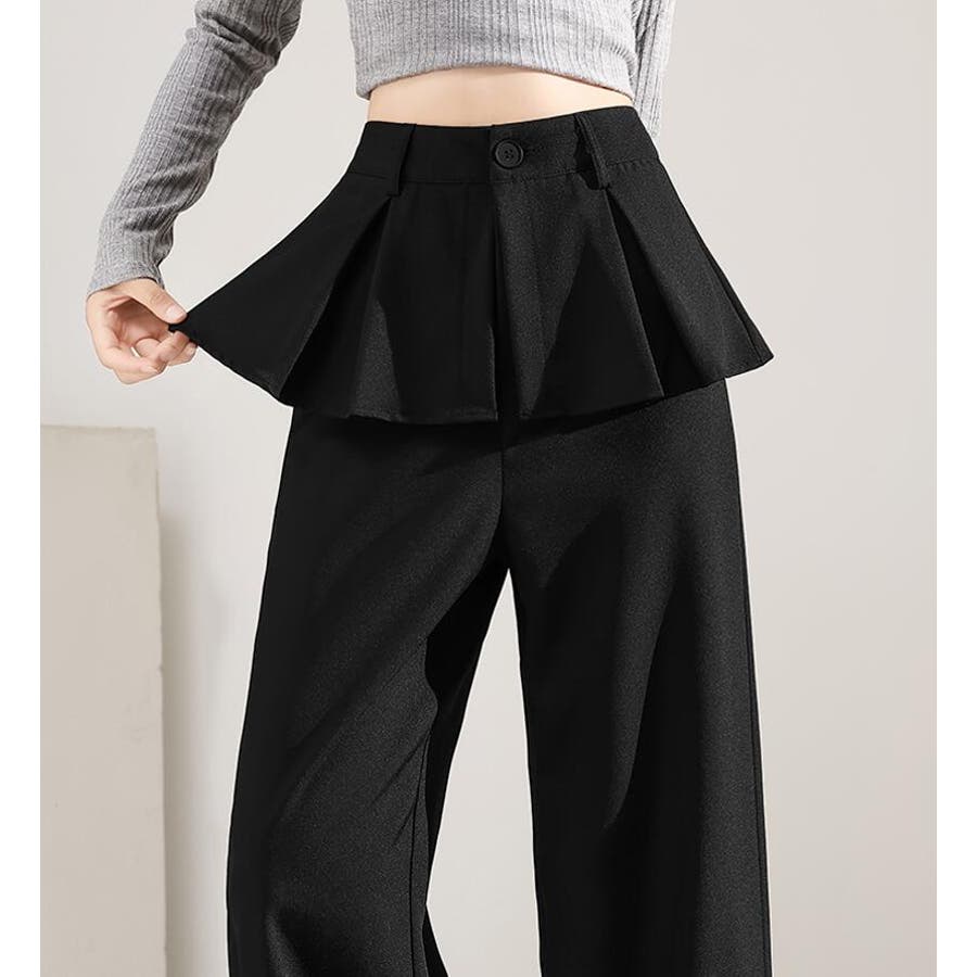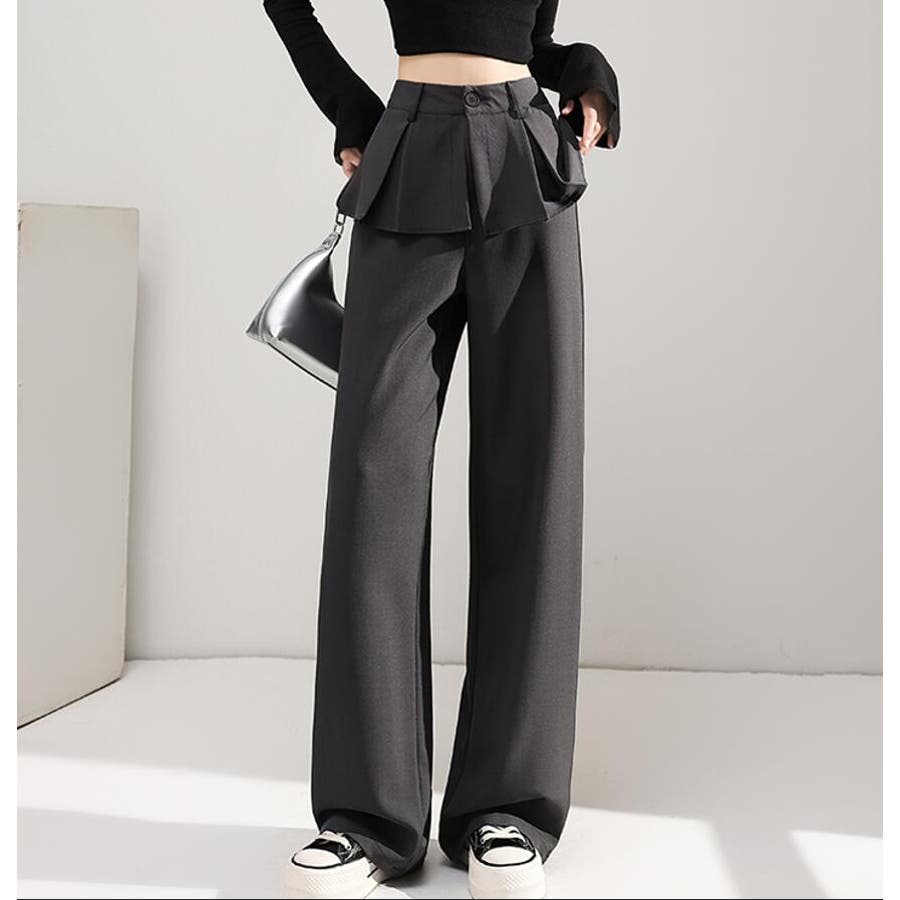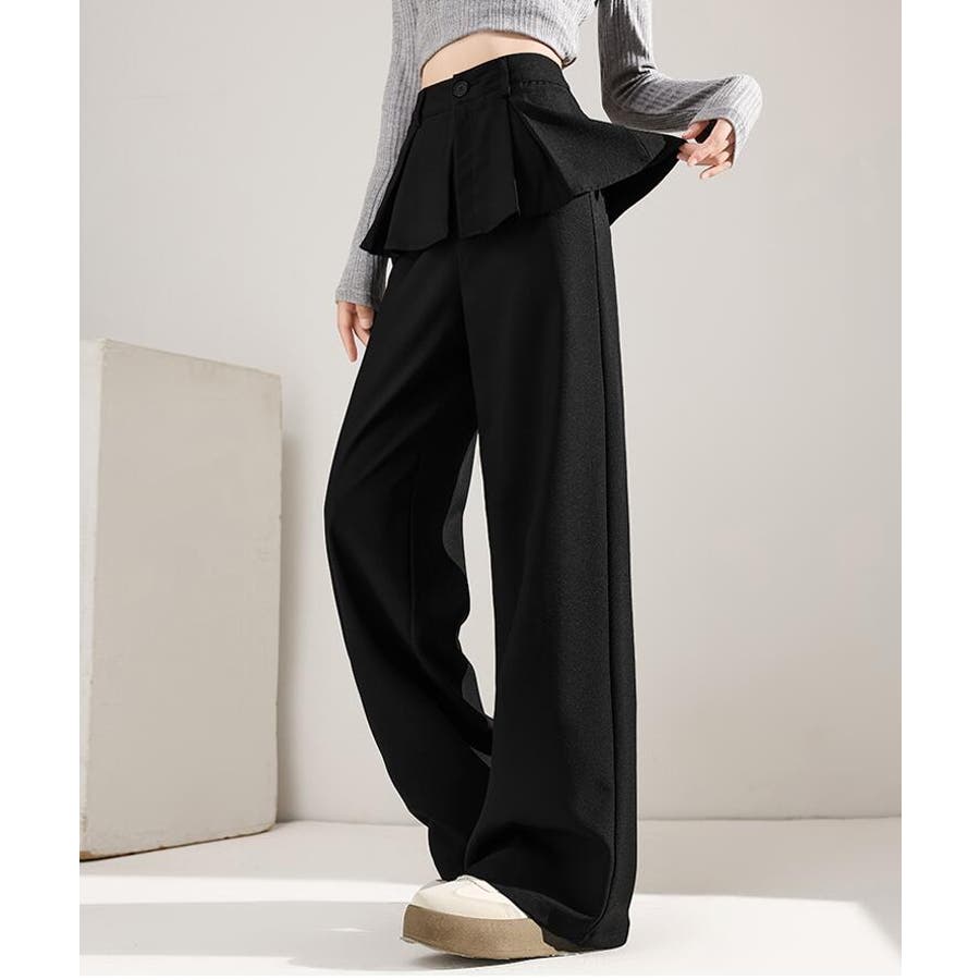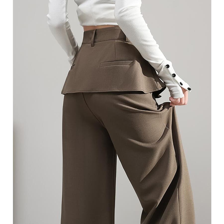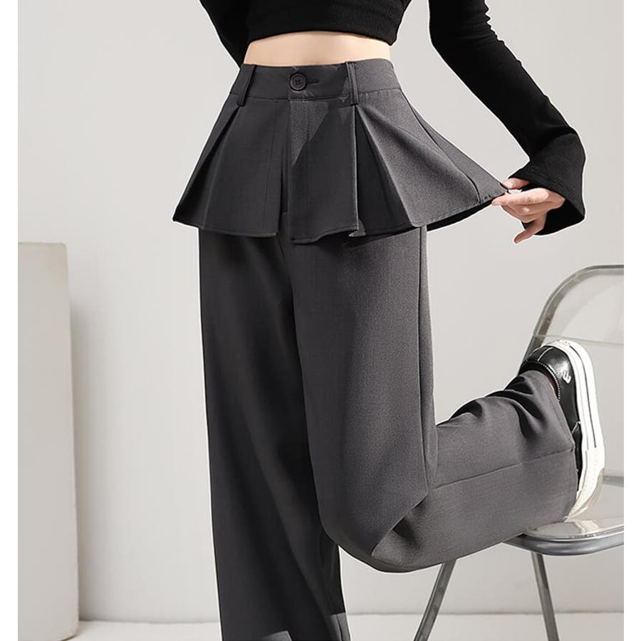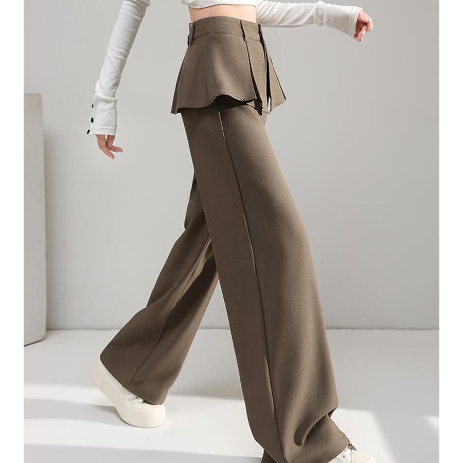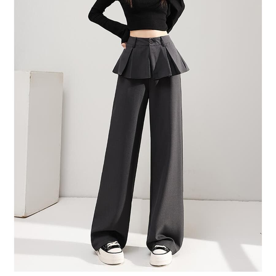 フェイクツーピースデザイン プリーツアクセントワイドパンツ