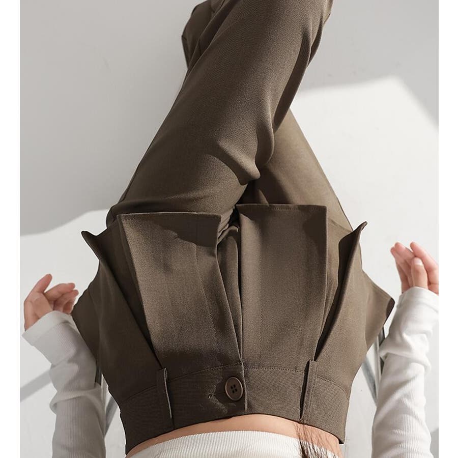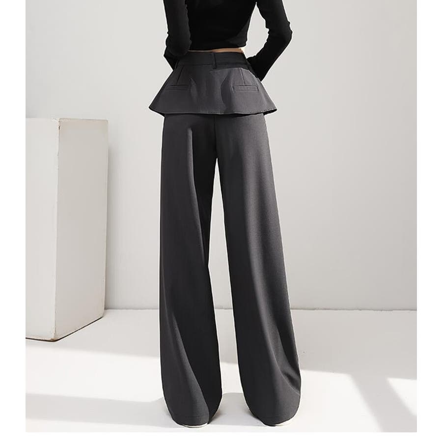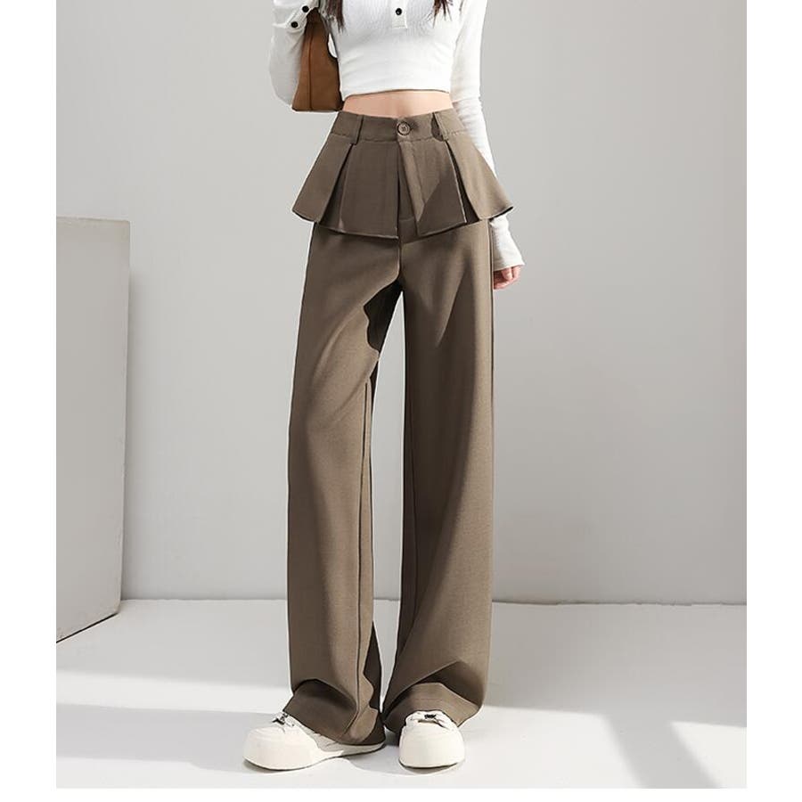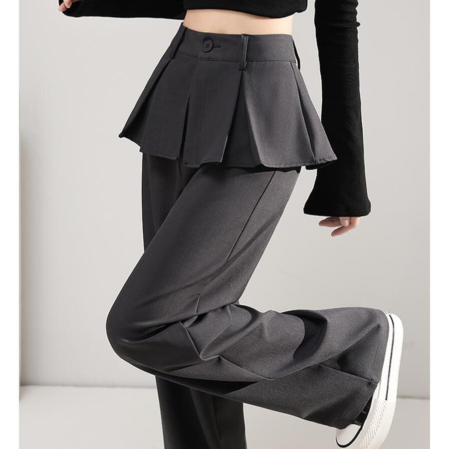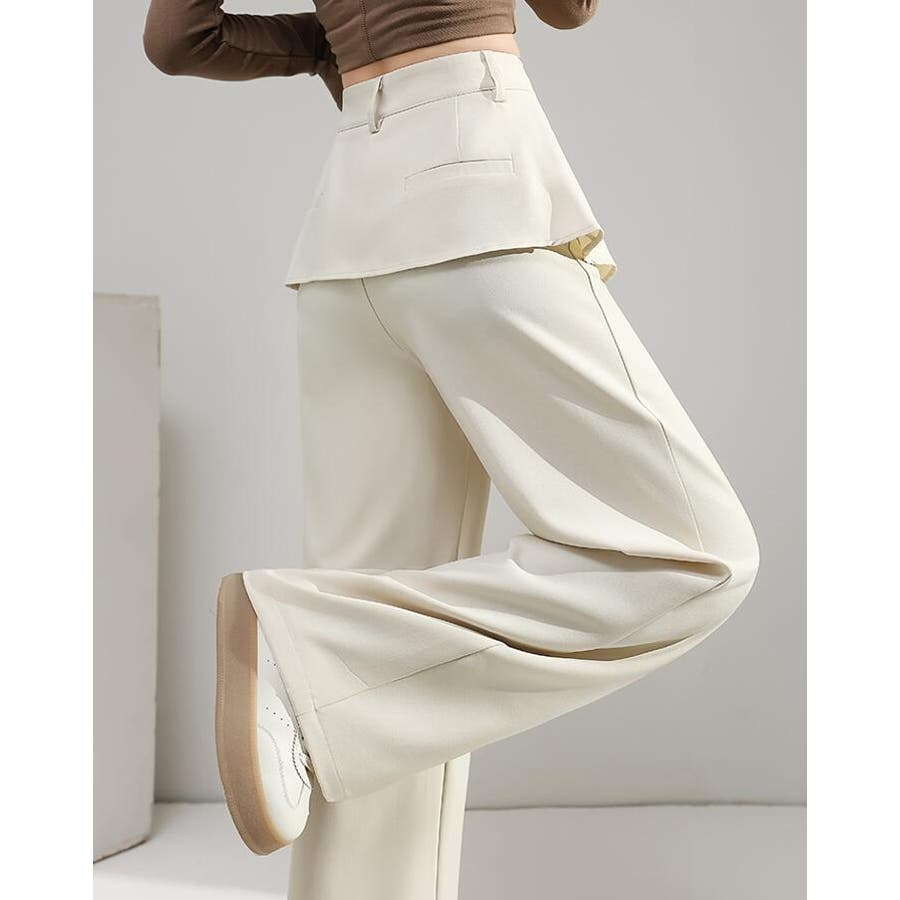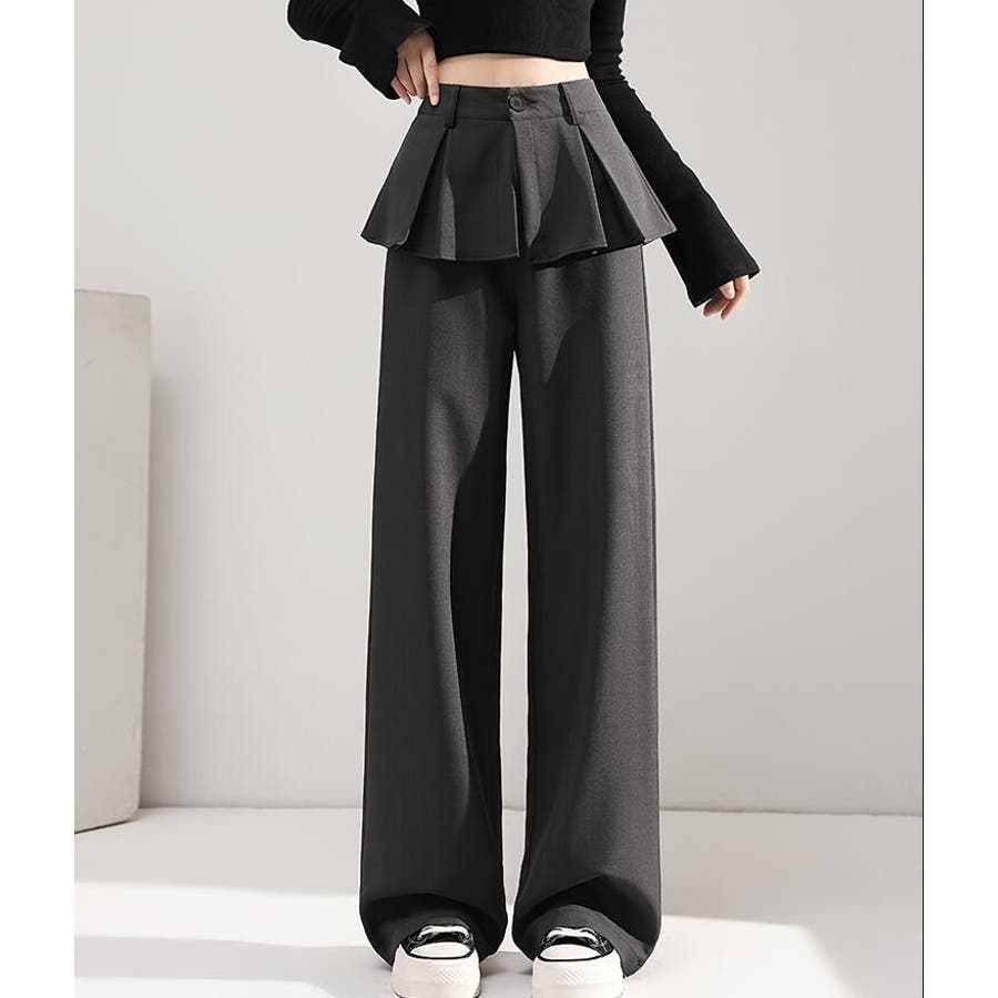 フェイクツーピースデザイン プリーツアクセントワイドパンツ
