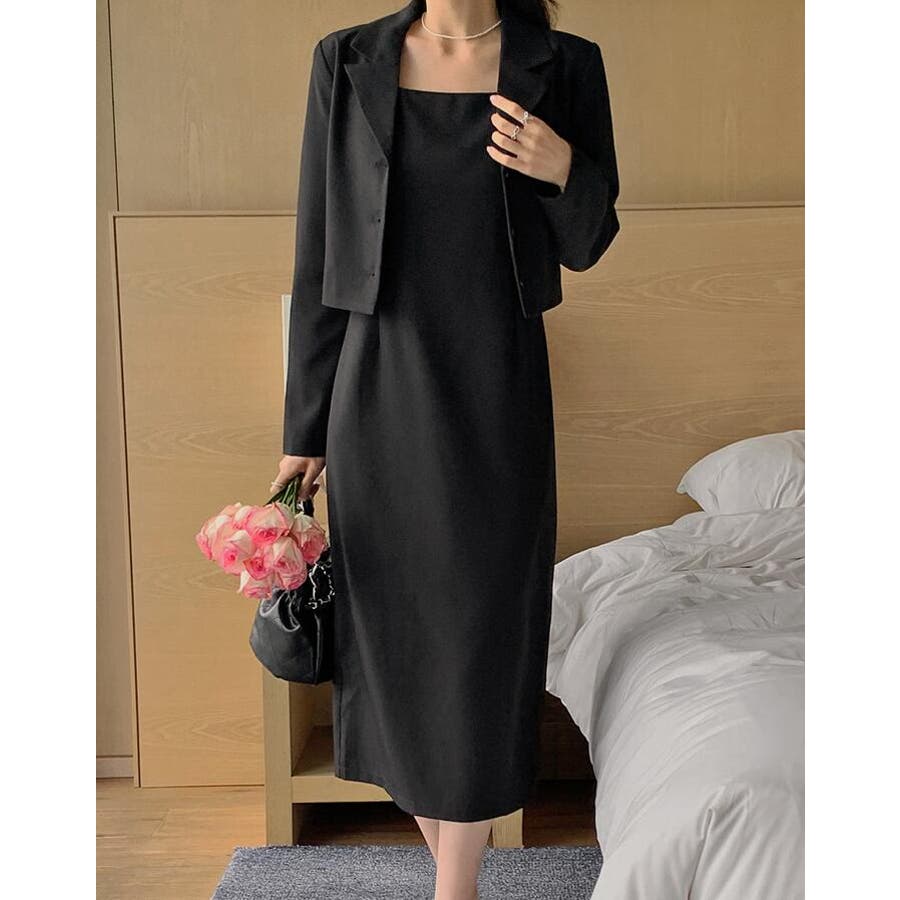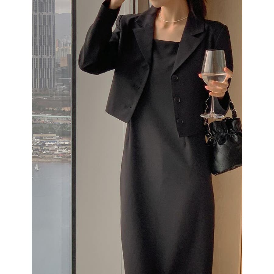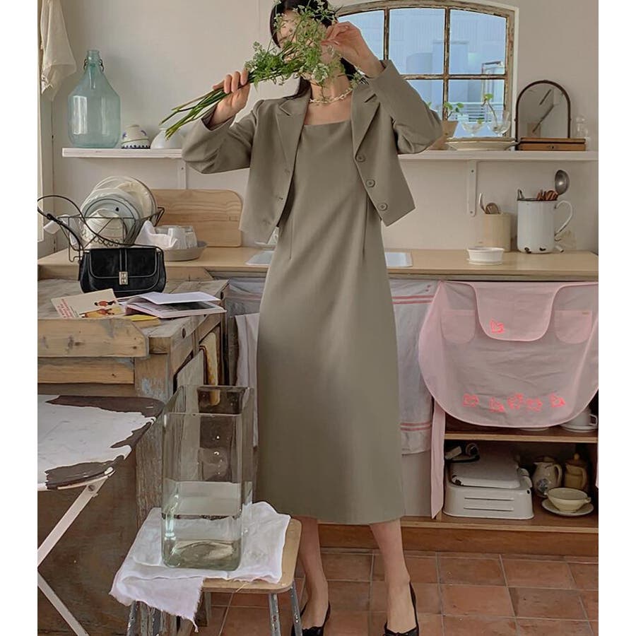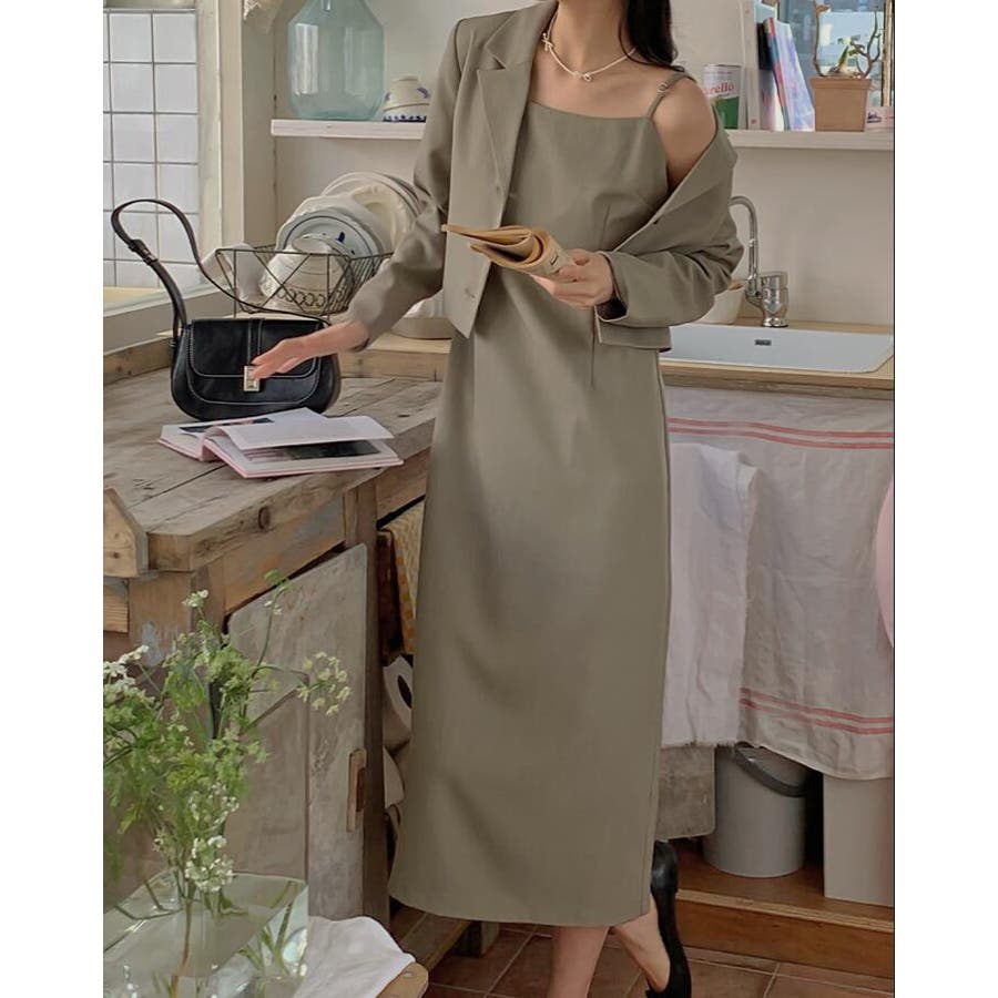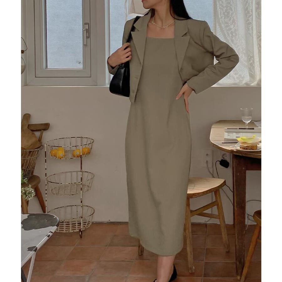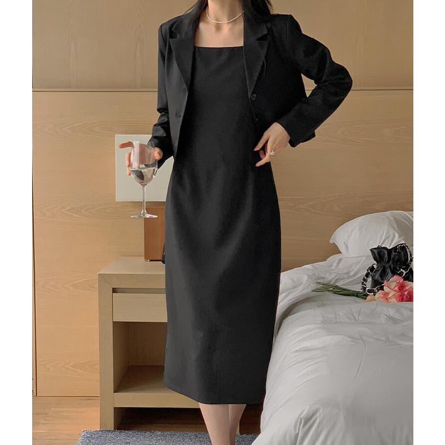 ブレザー & ストラップドレス 2 ピース、エレガントなスタイル