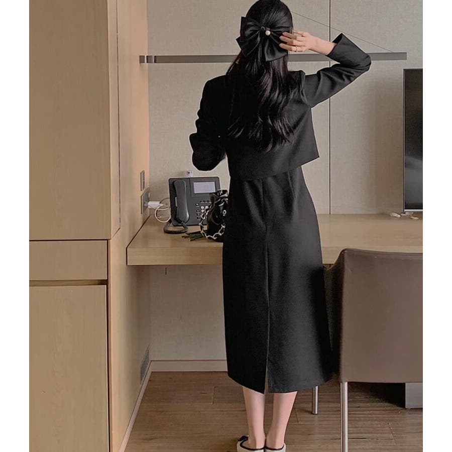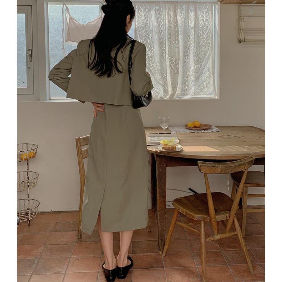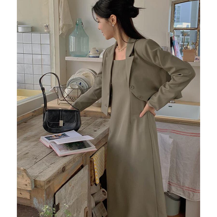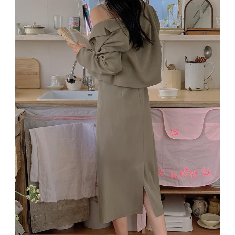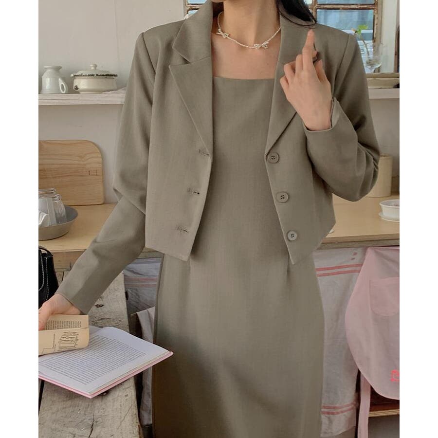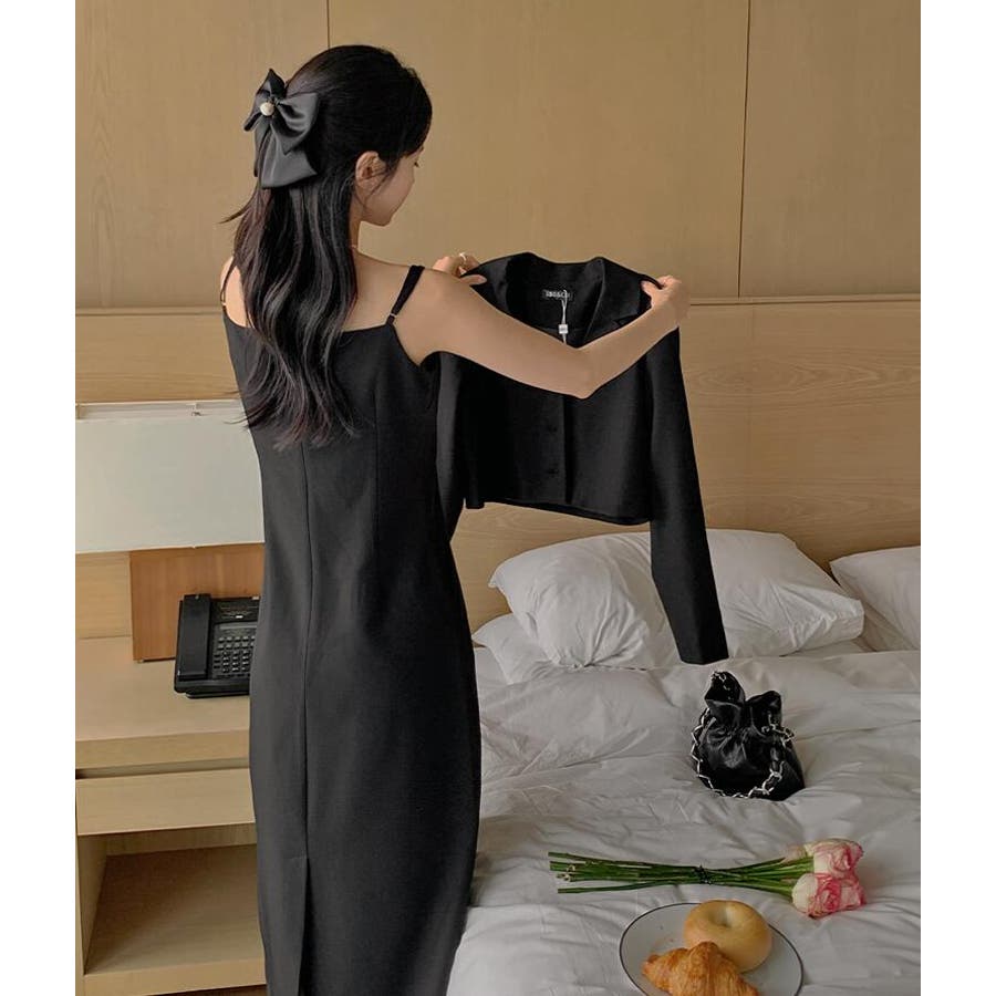 ブレザー & ストラップドレス 2 ピース、エレガントなスタイル