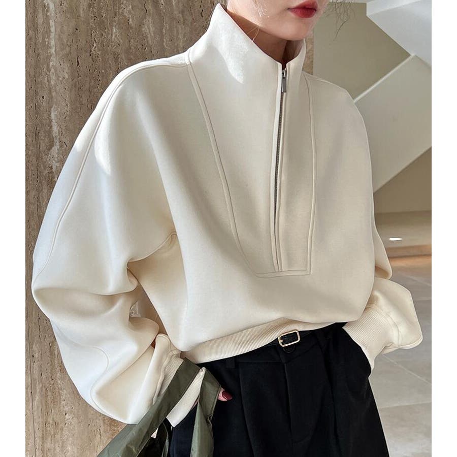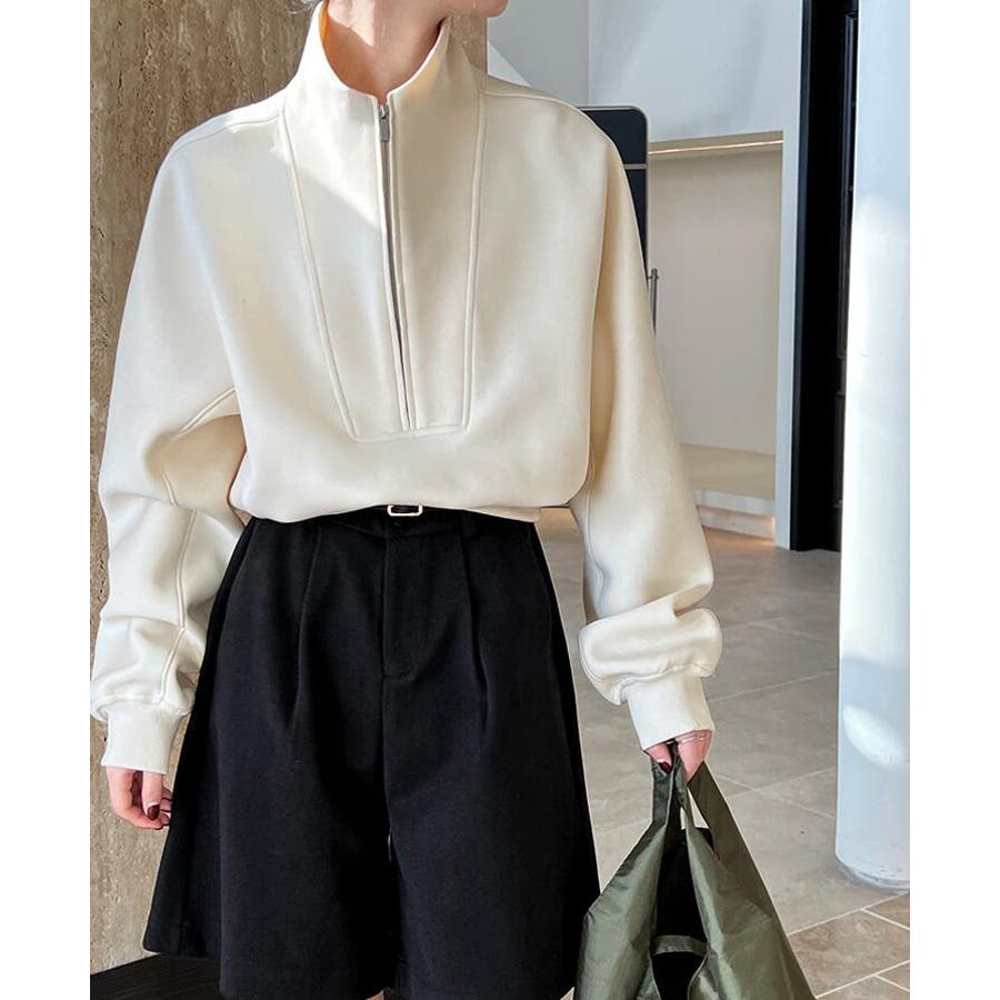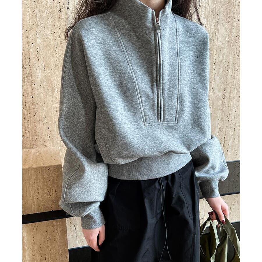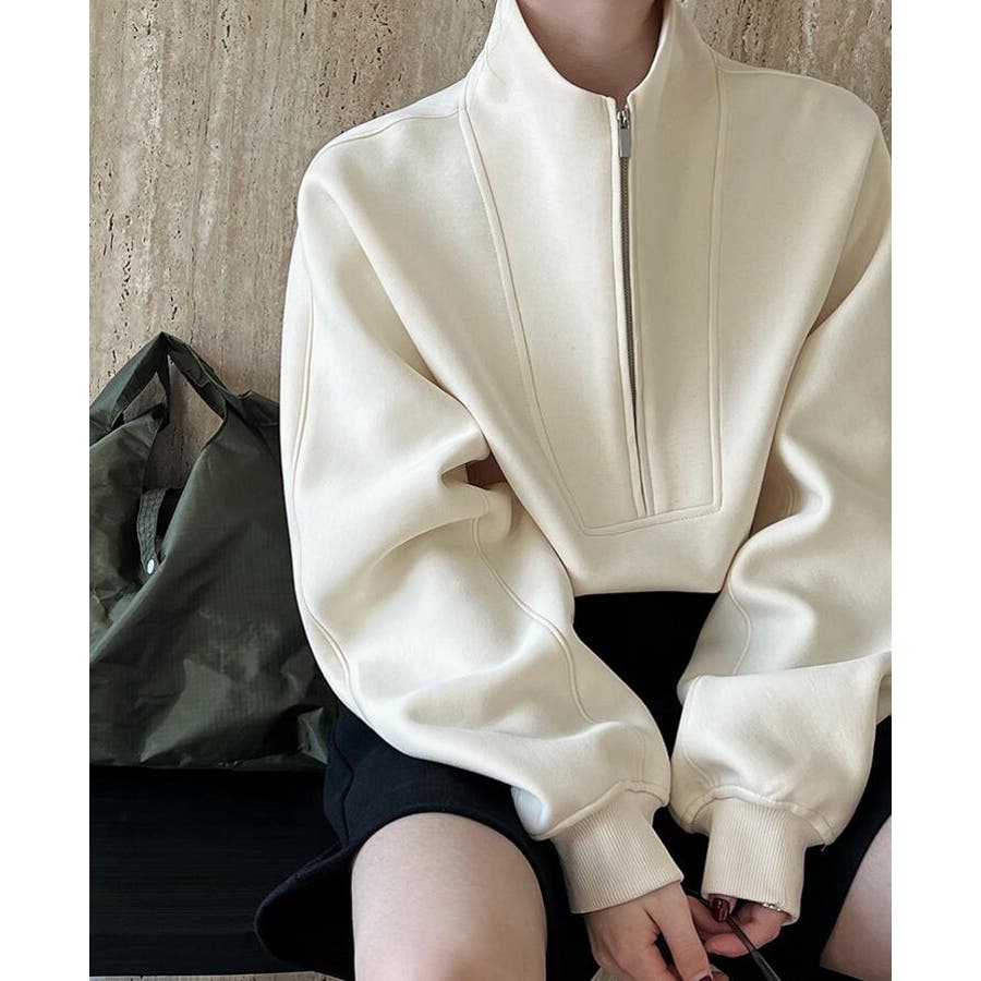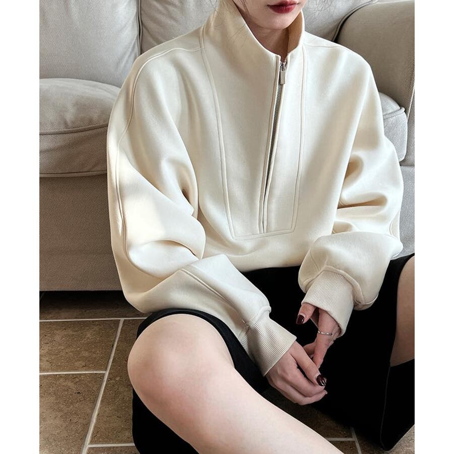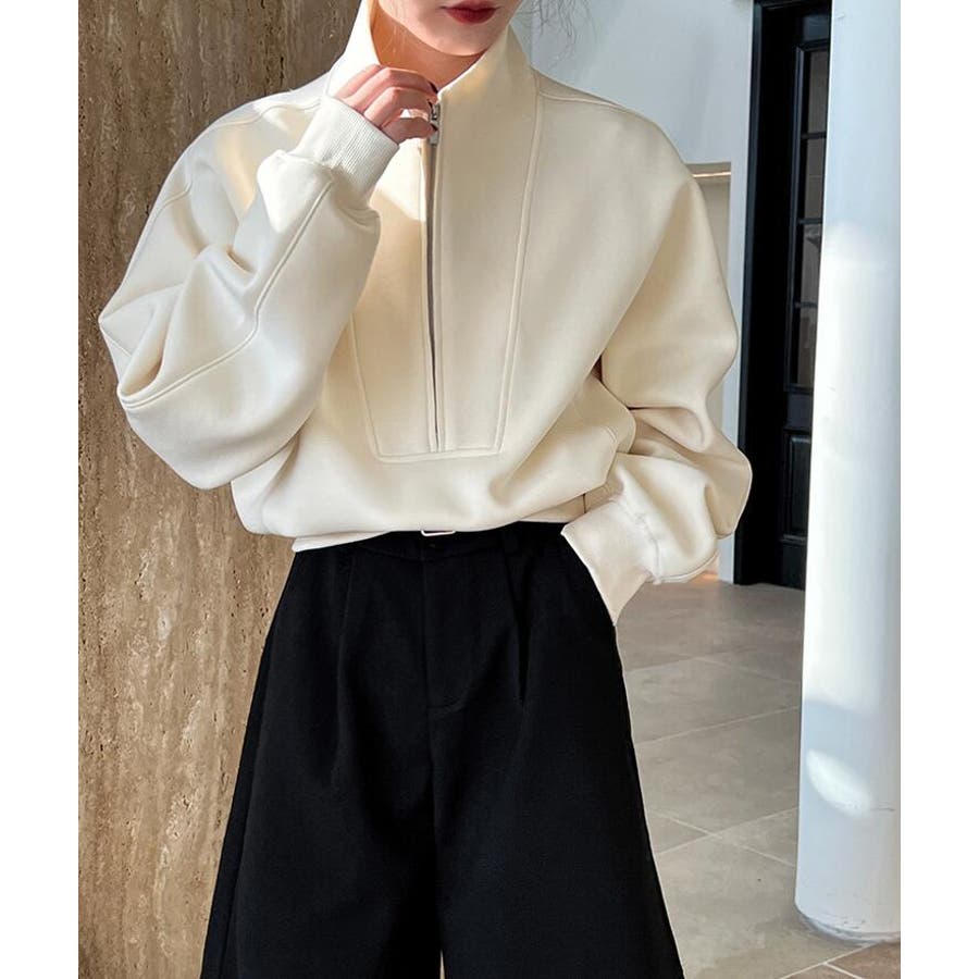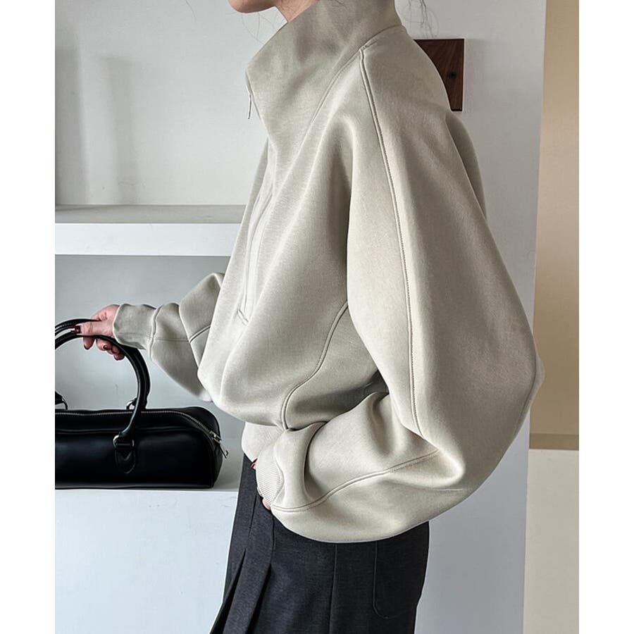 ハーフファスナー スタンドカラー オーバーサイズスウェット