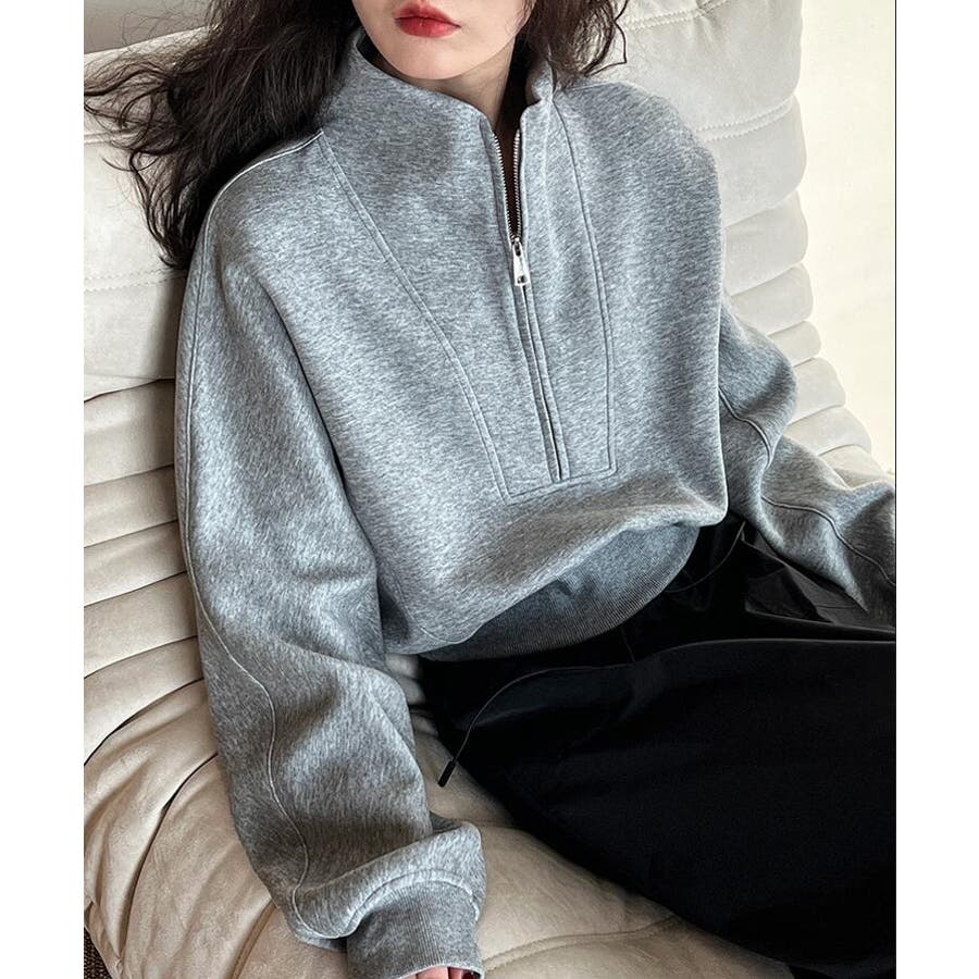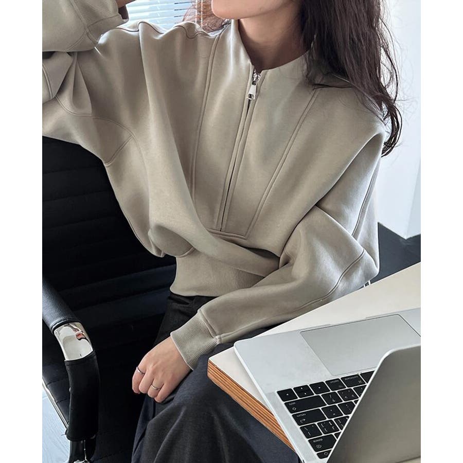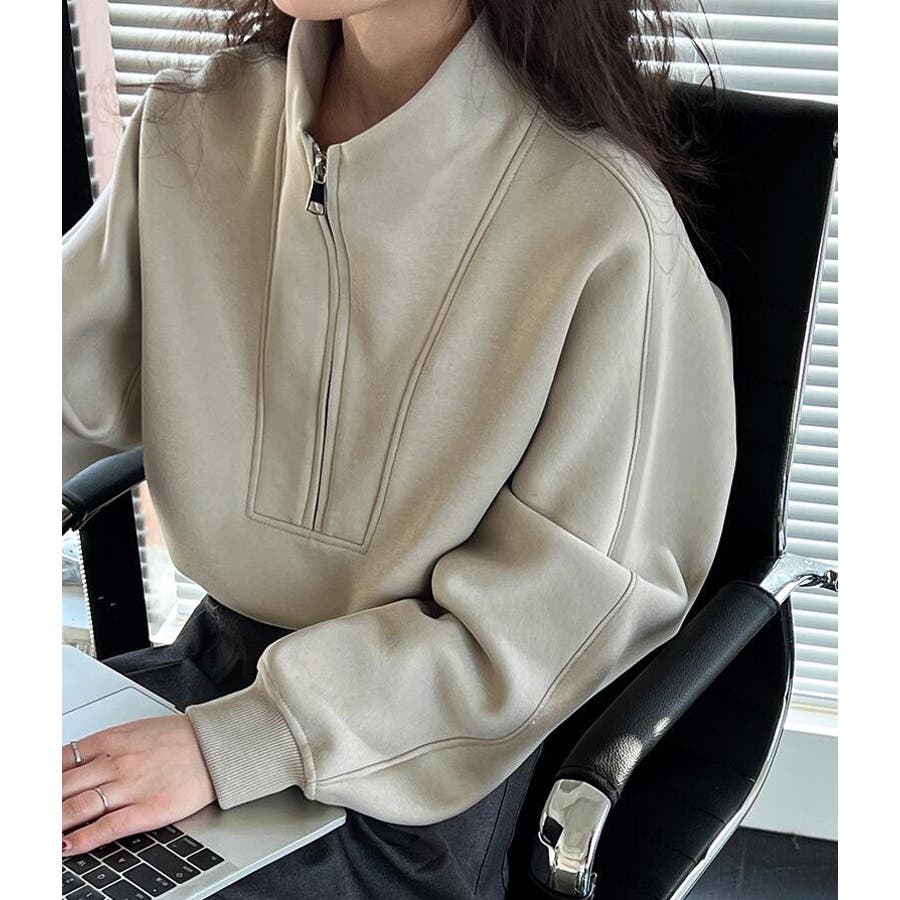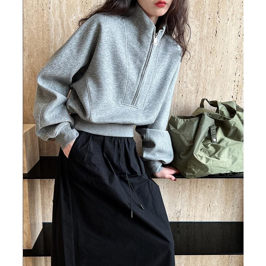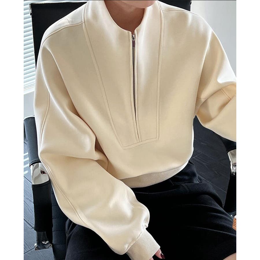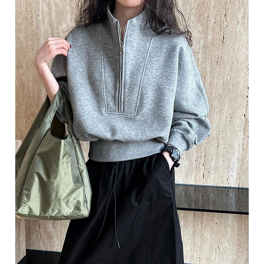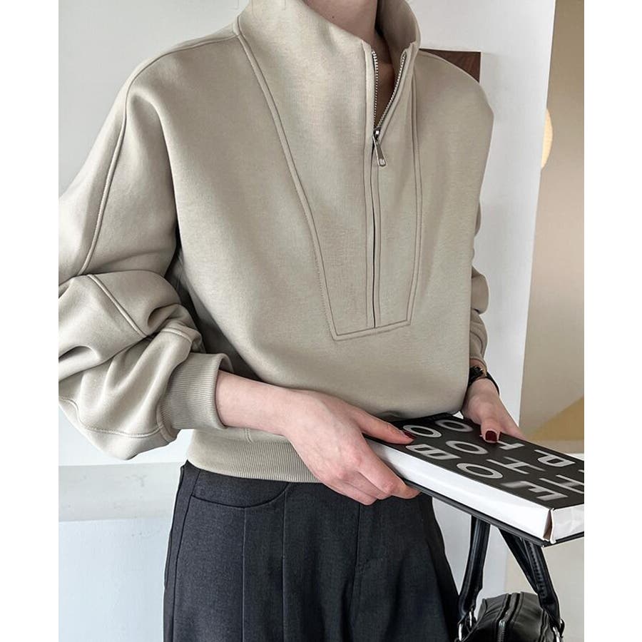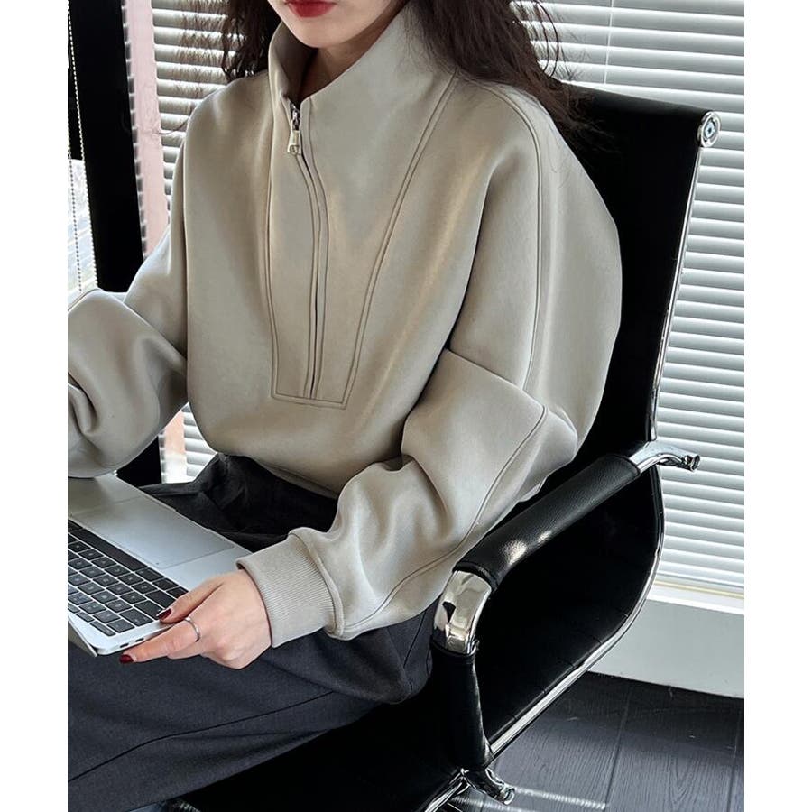 ハーフファスナー スタンドカラー オーバーサイズスウェット
