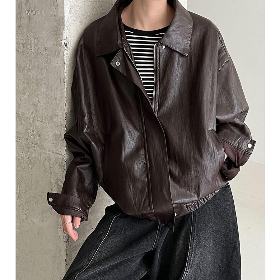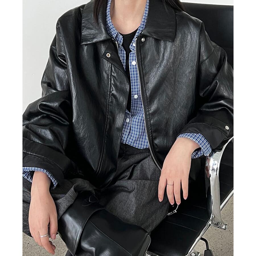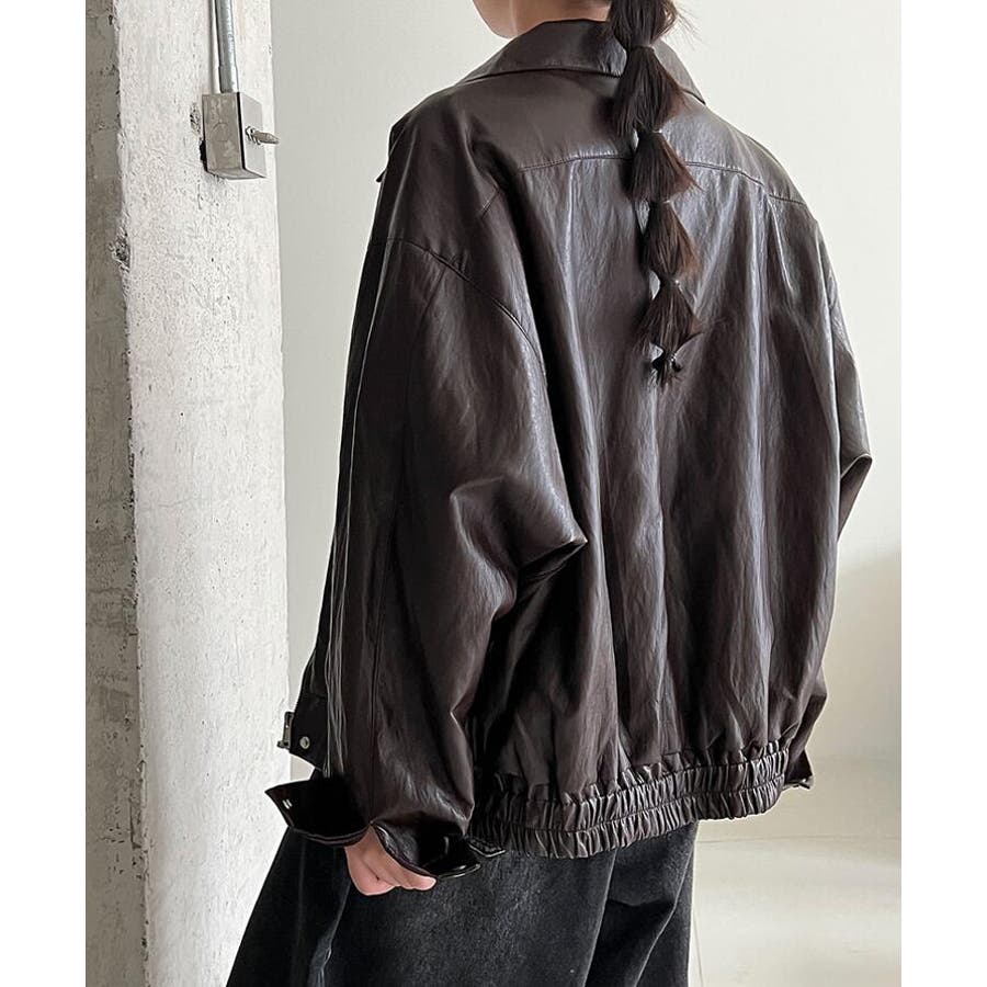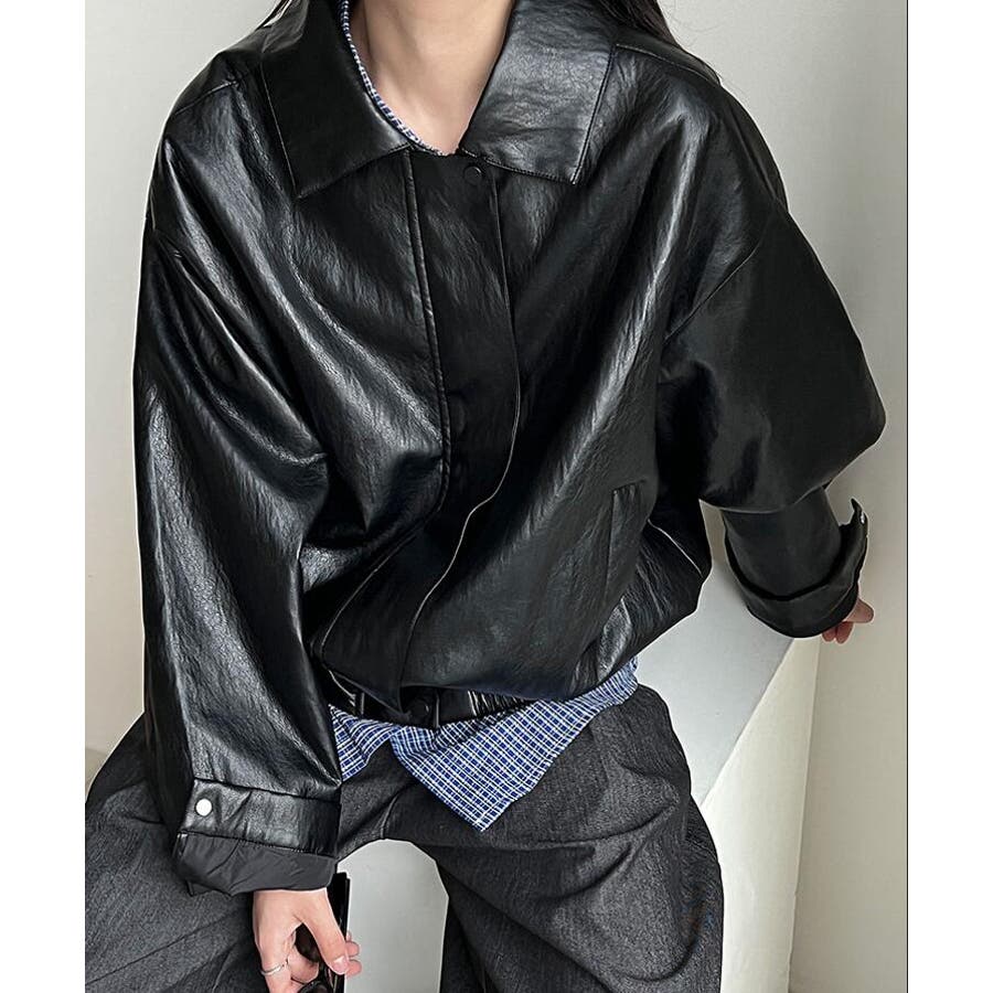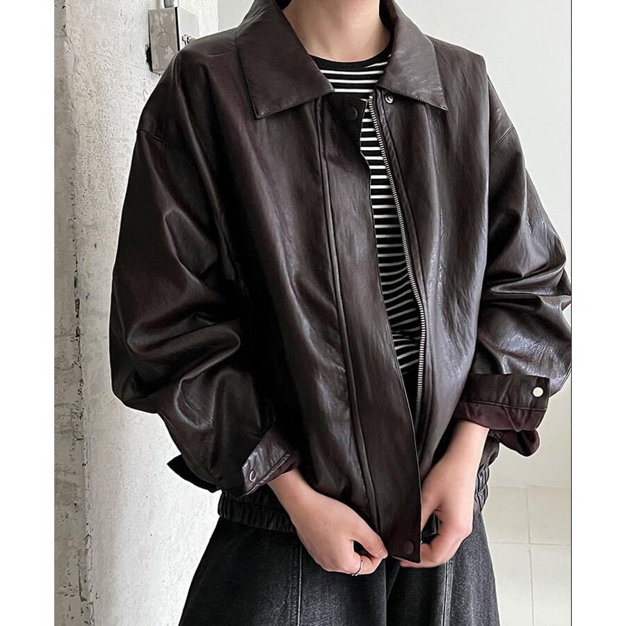 ターンダウンカラー オーバーサイズ レザーアウター