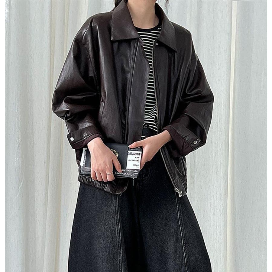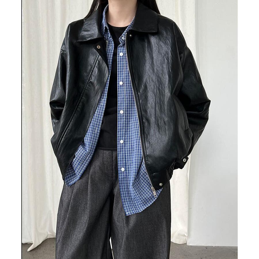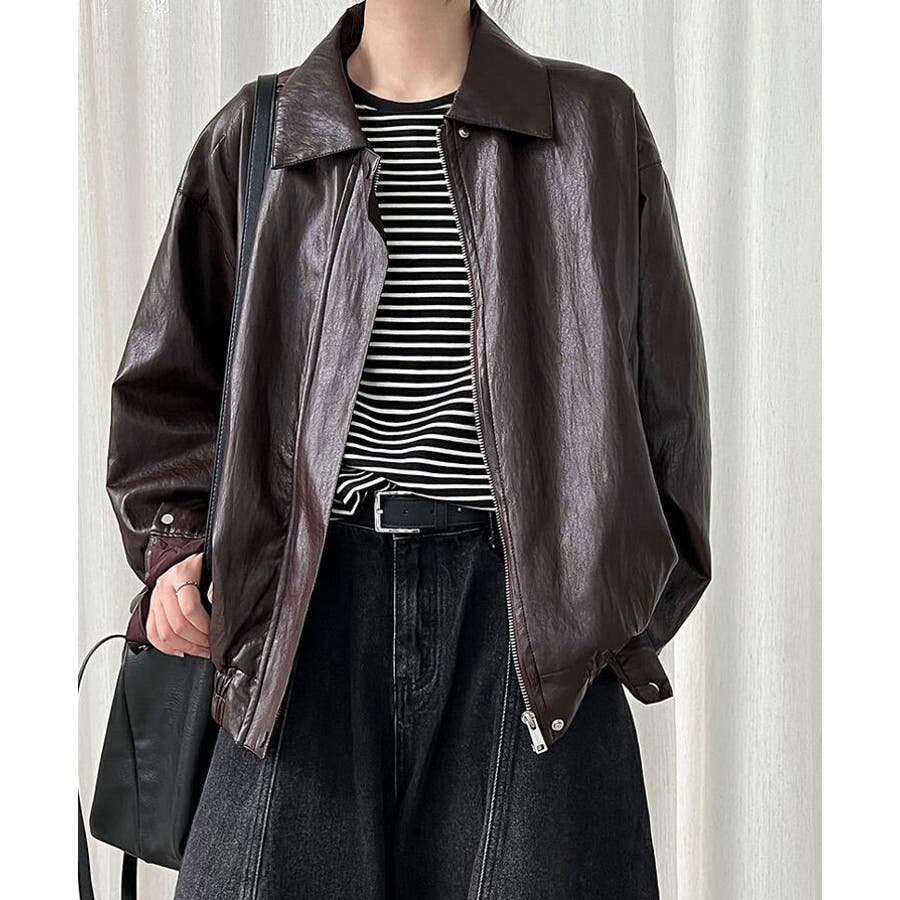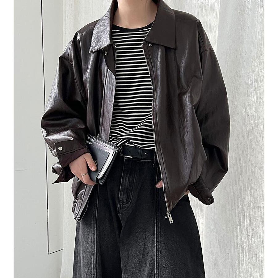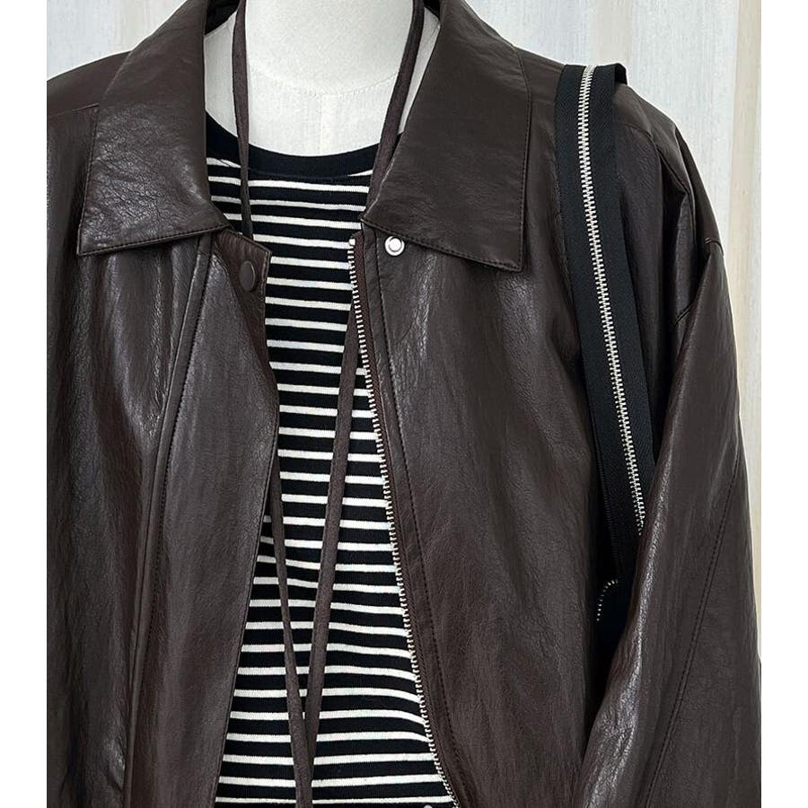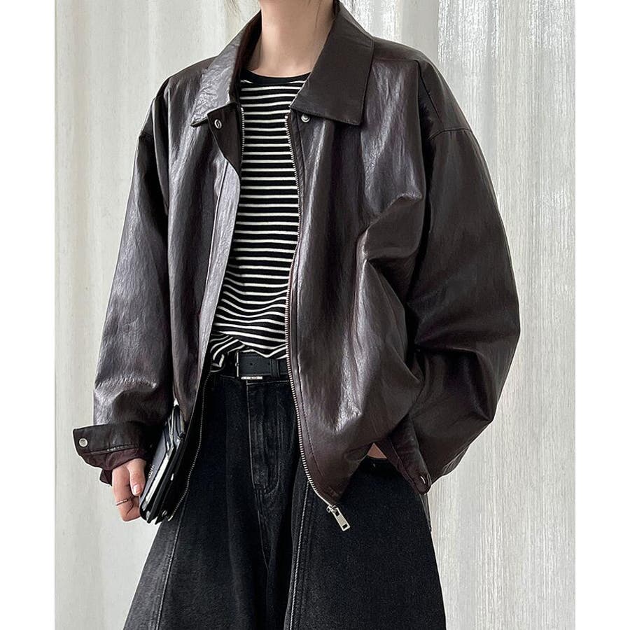 ターンダウンカラー オーバーサイズ レザーアウター