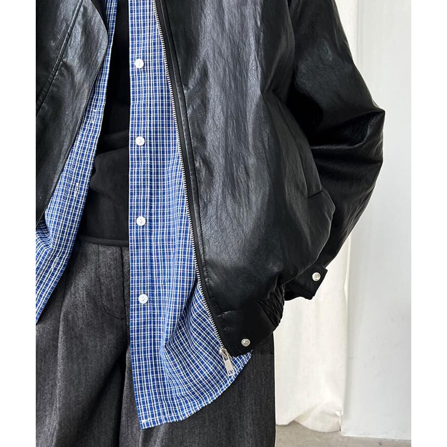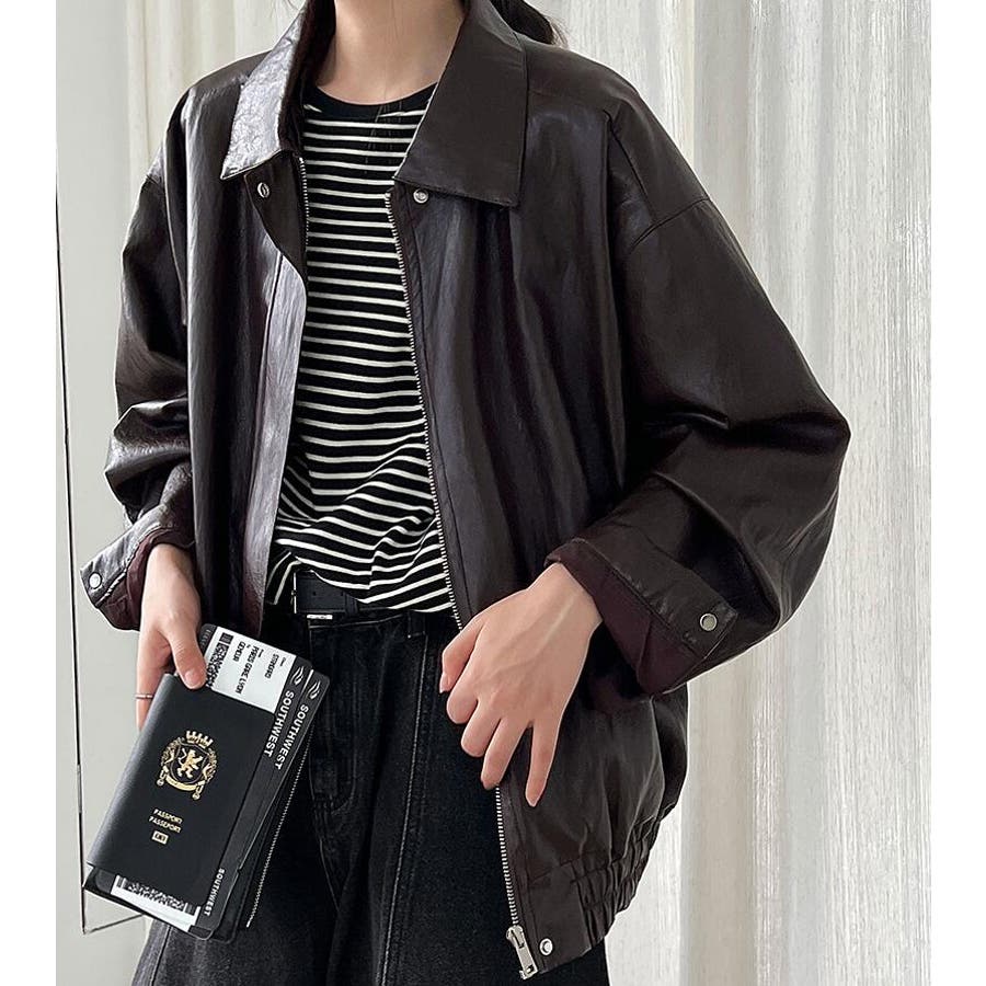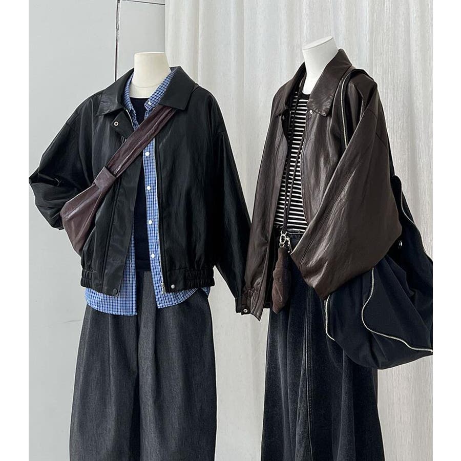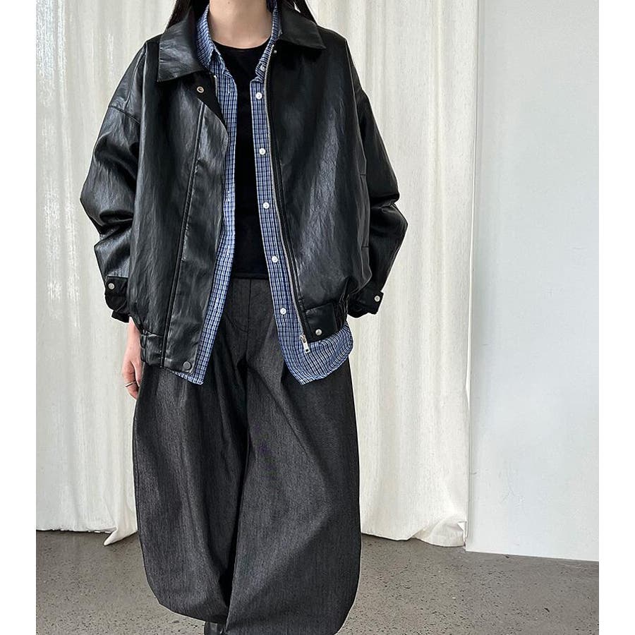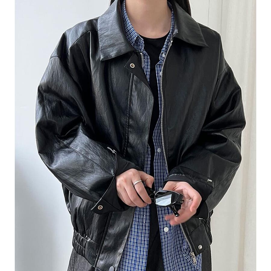 ターンダウンカラー オーバーサイズ レザーアウター