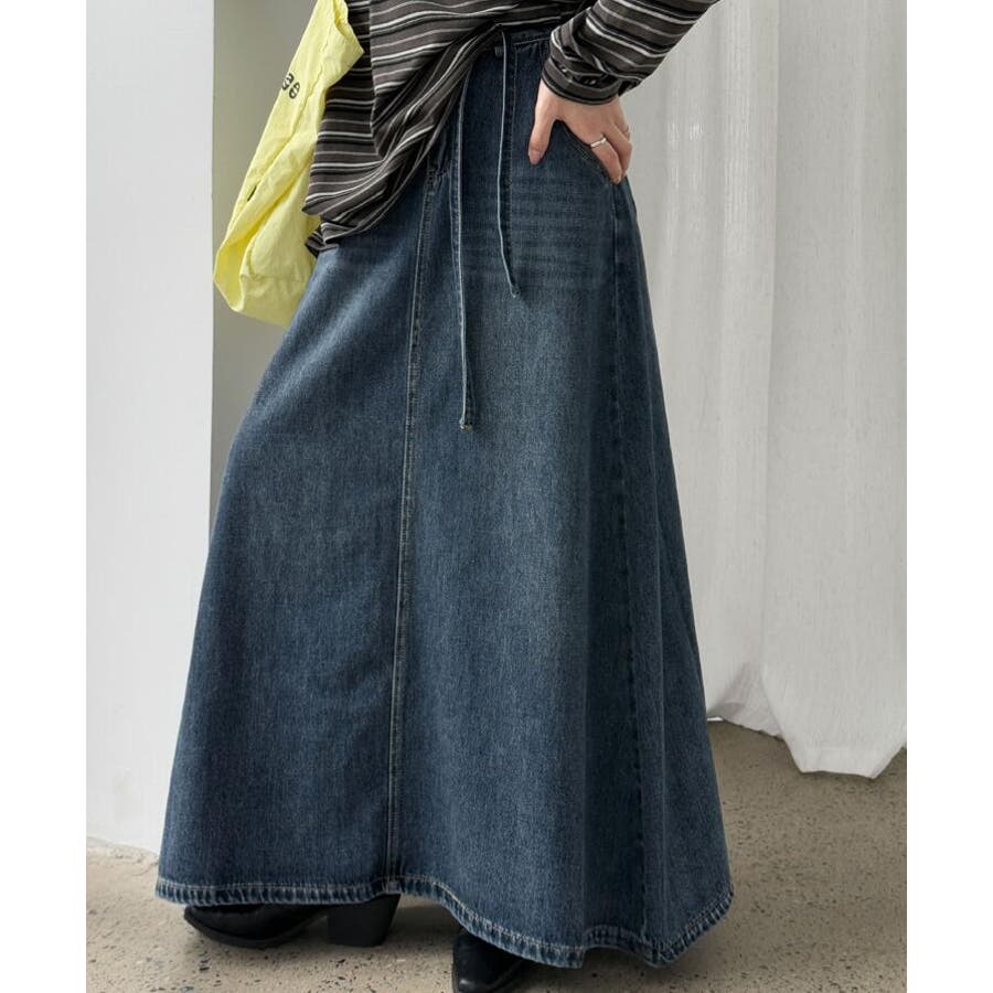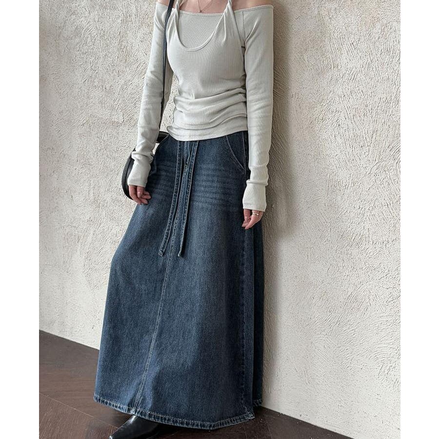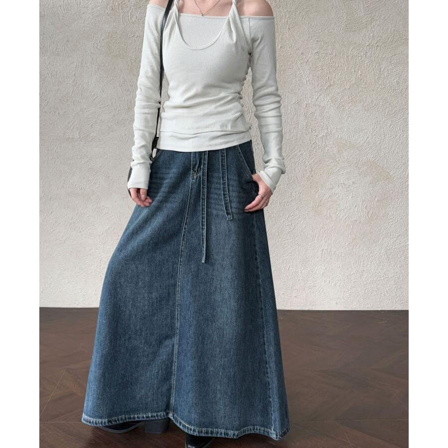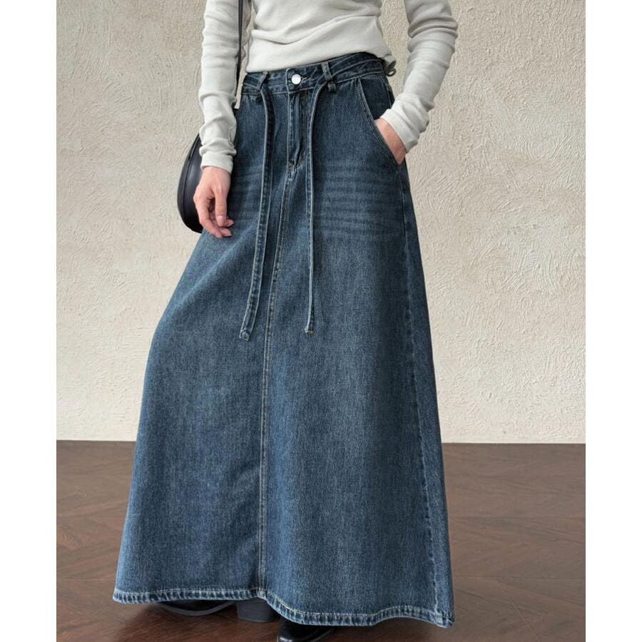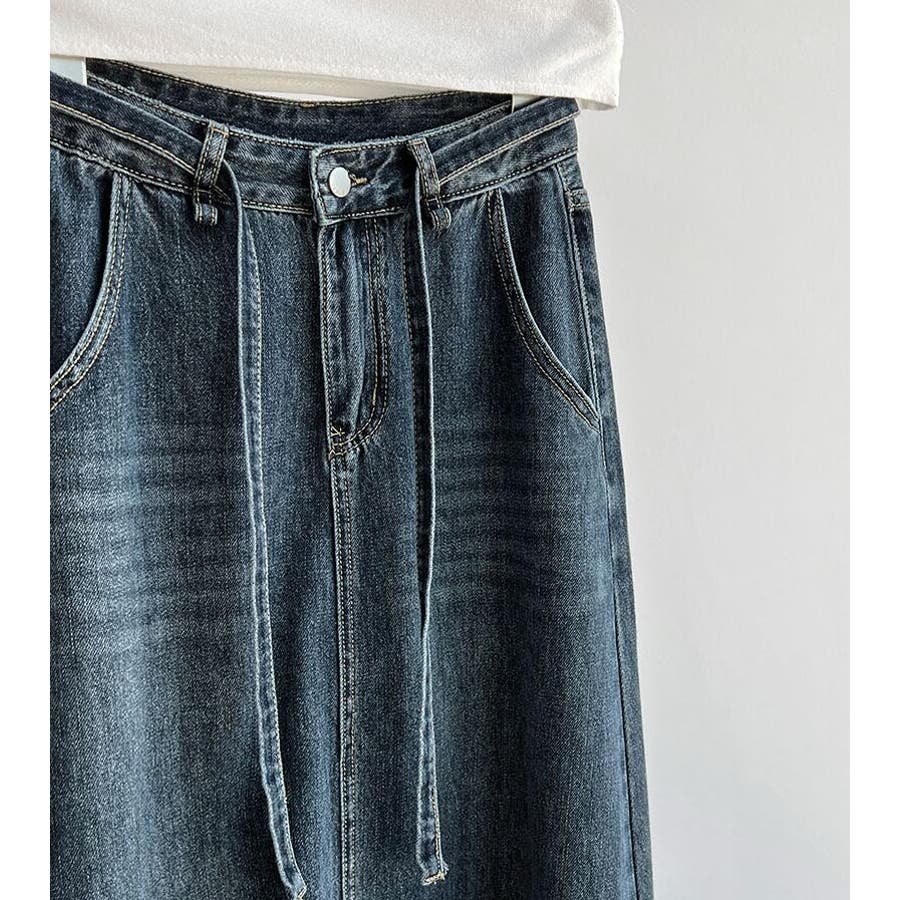 デニムロングスカート シューレースデザイン ポケット付き