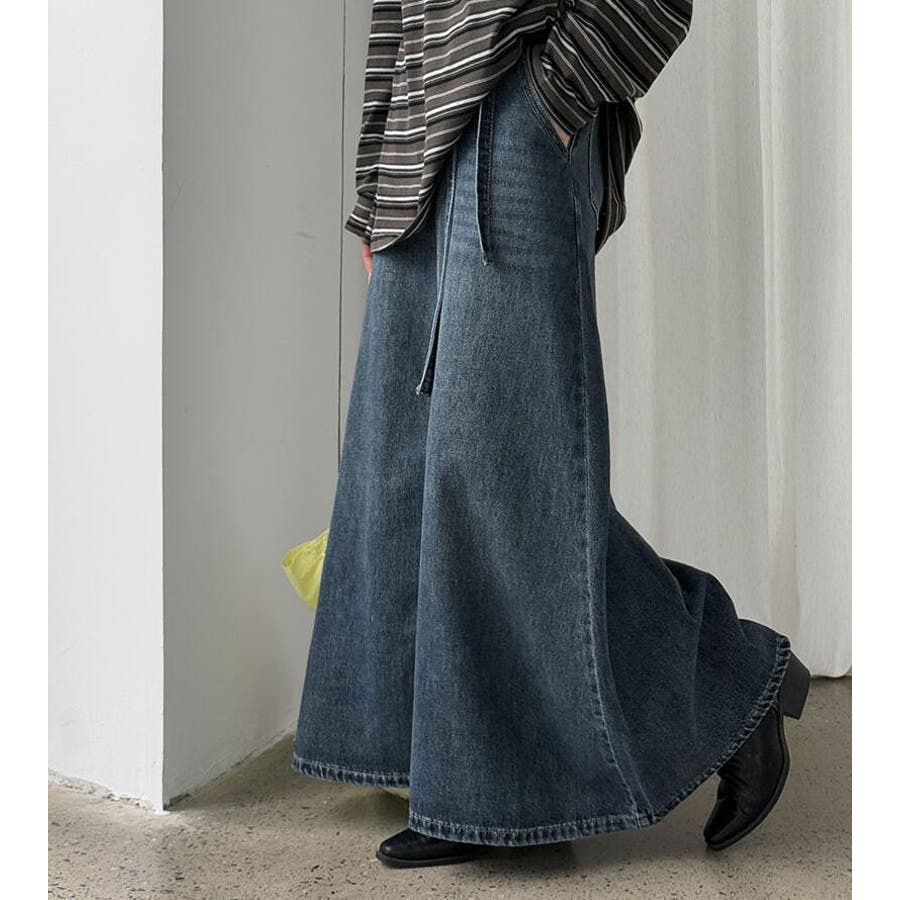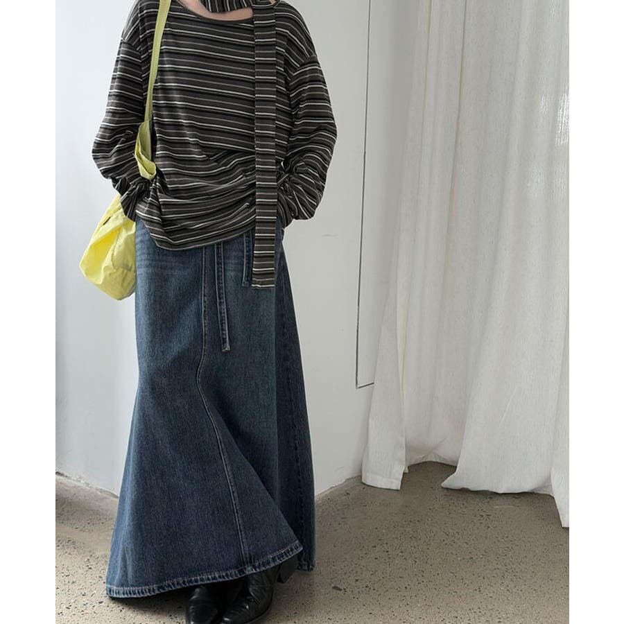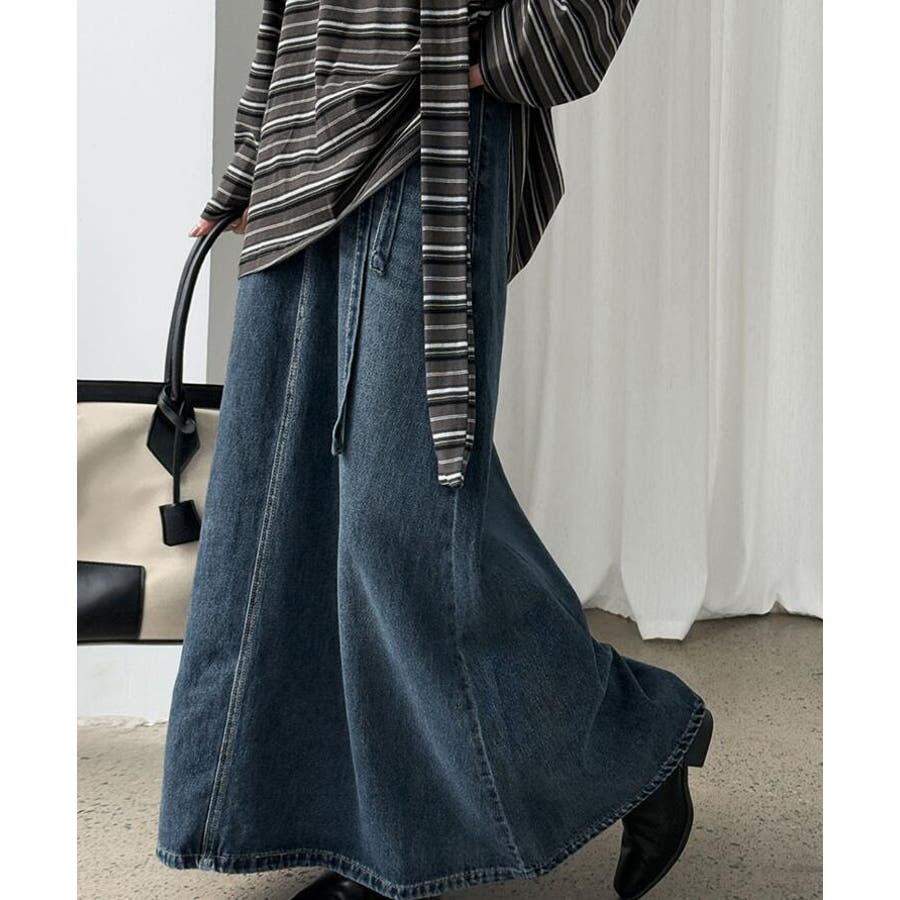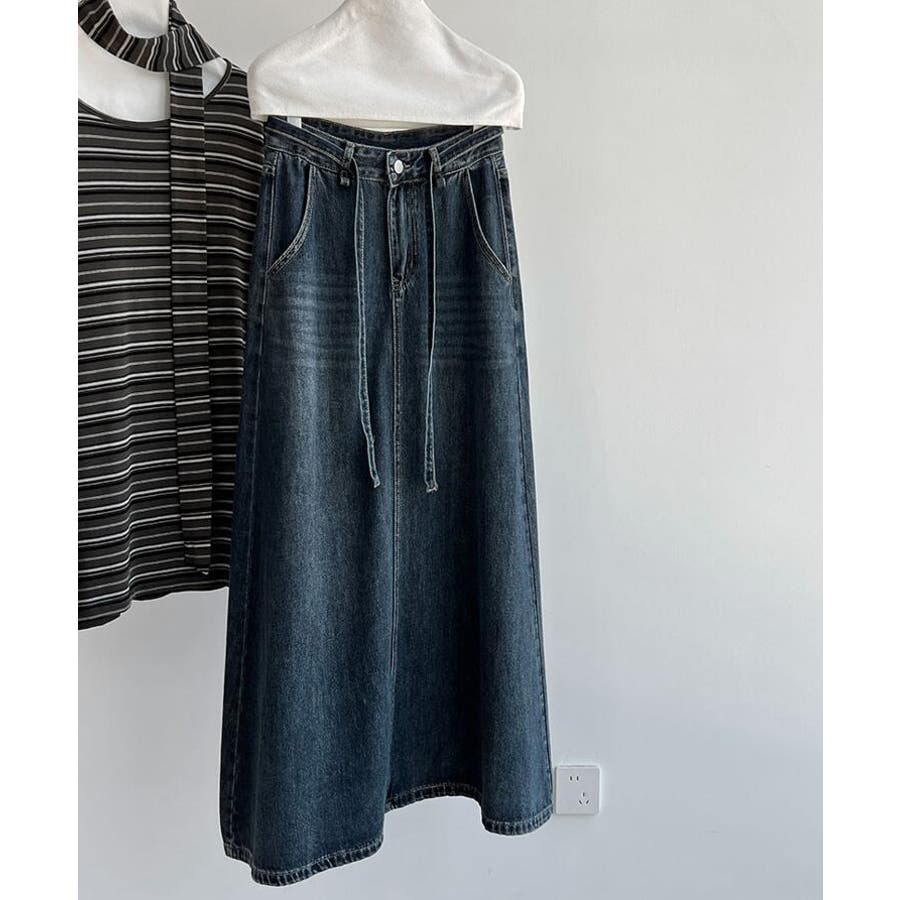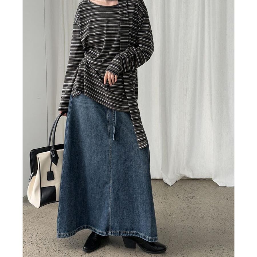 デニムロングスカート シューレースデザイン ポケット付き