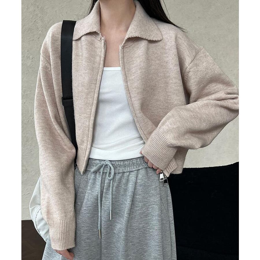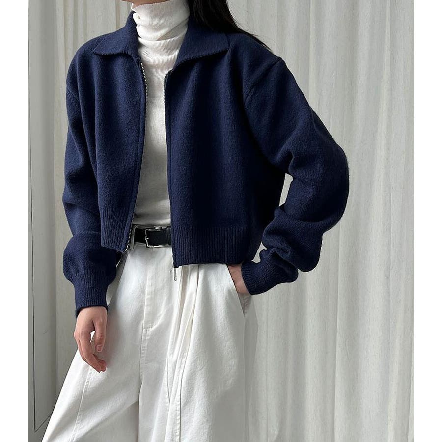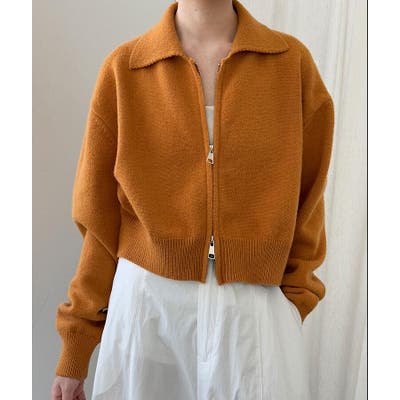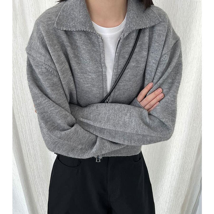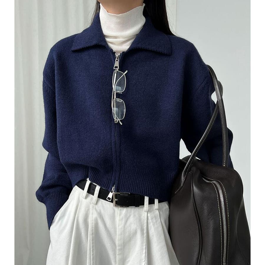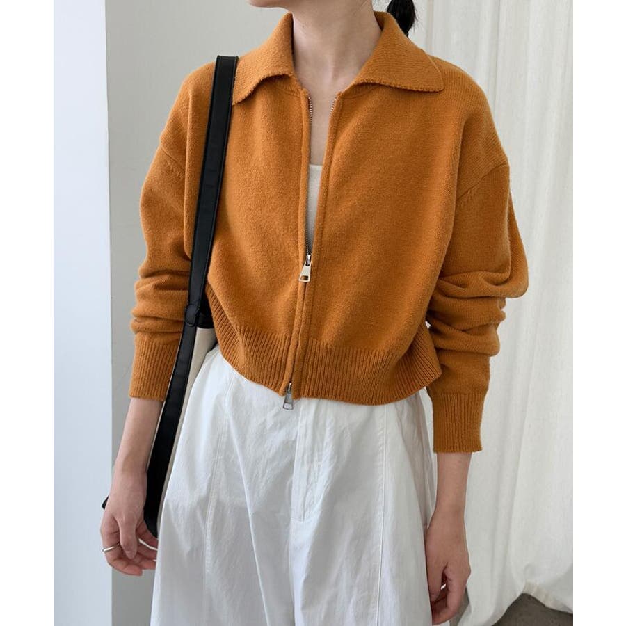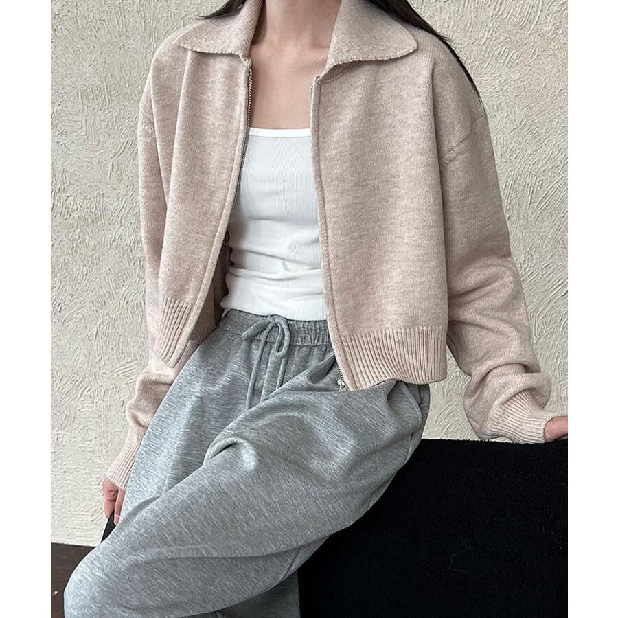 ターンダウンカラー ショート ニットアウター ファスナーデザイン