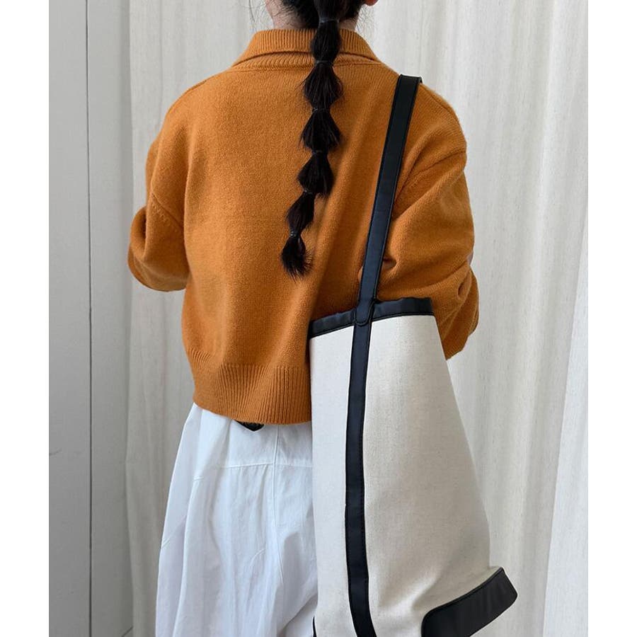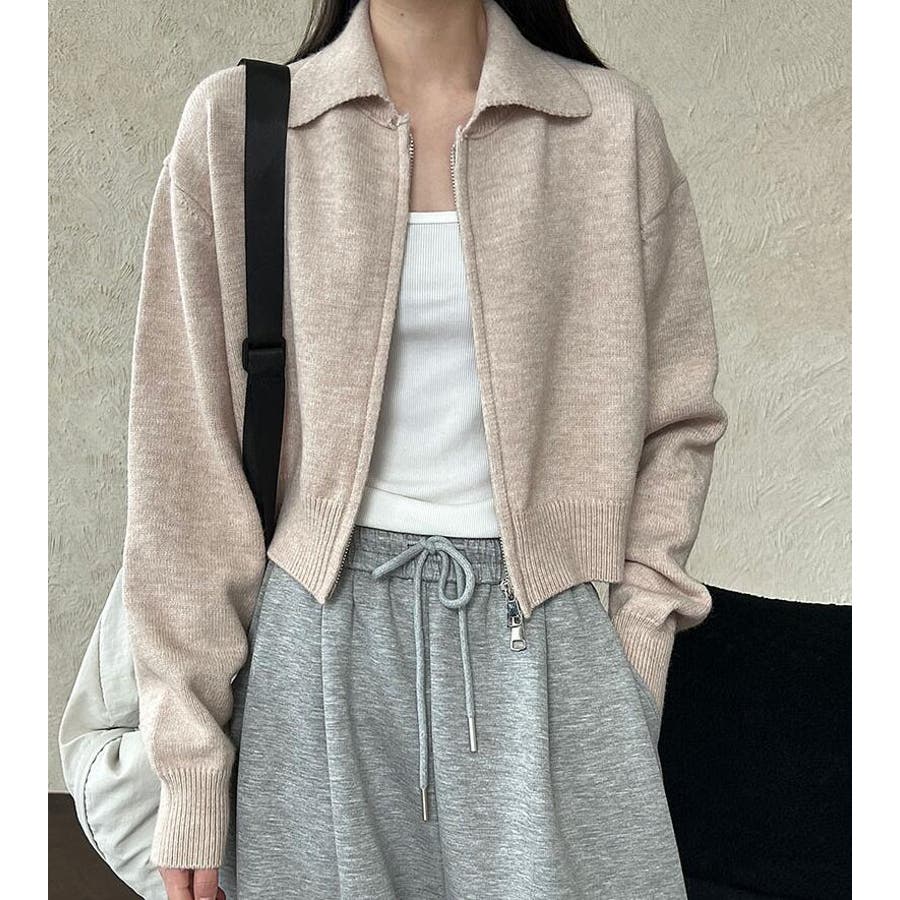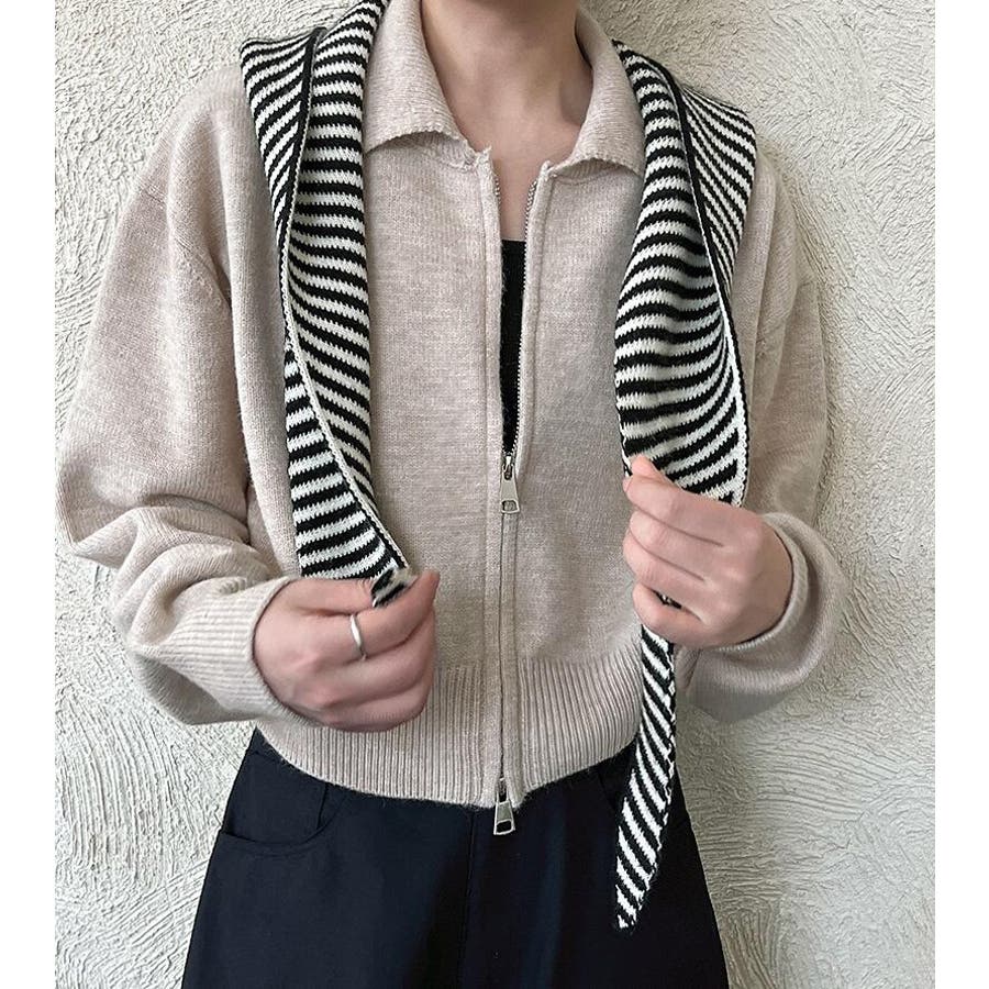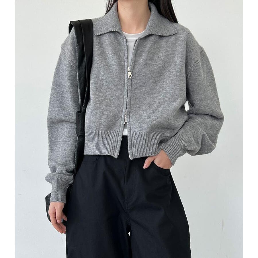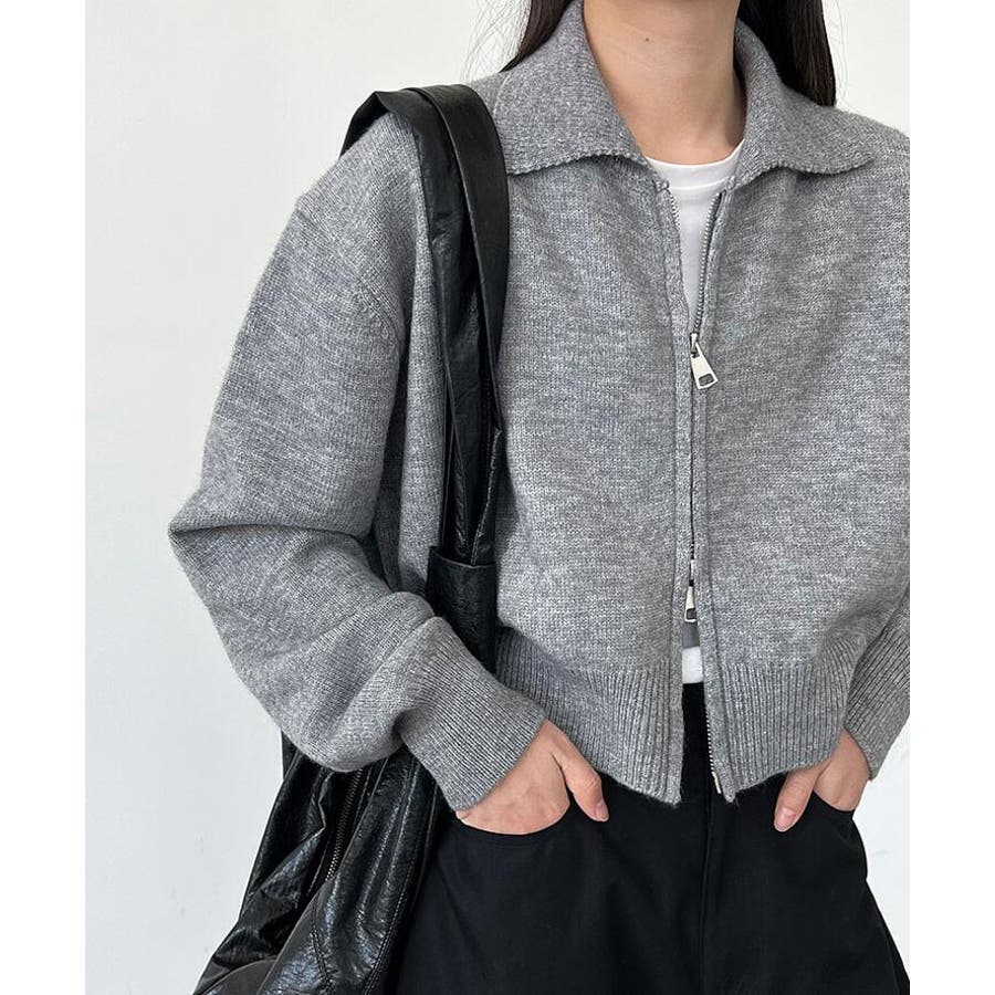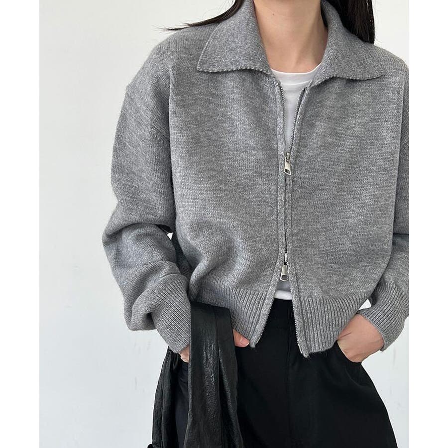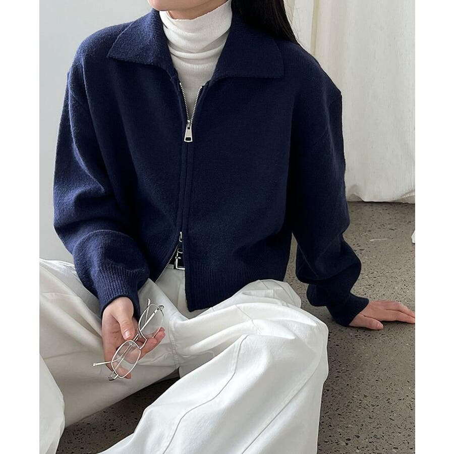ターンダウンカラー ショート ニットアウター ファスナーデザイン