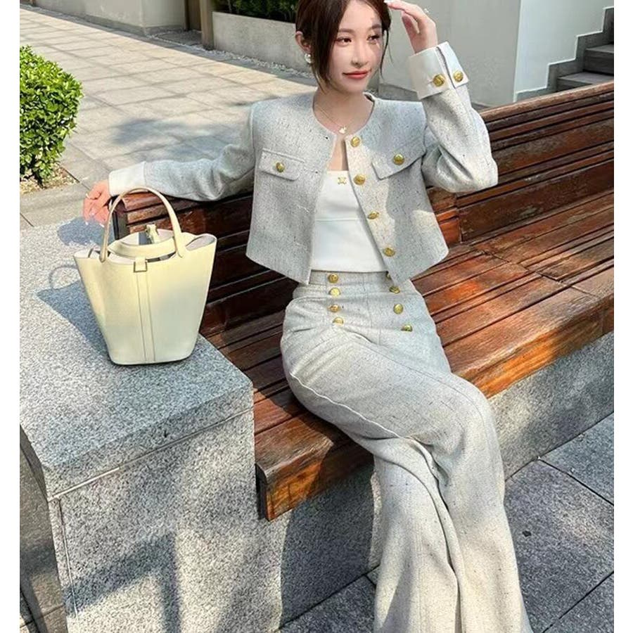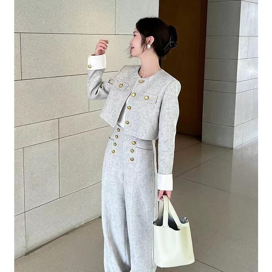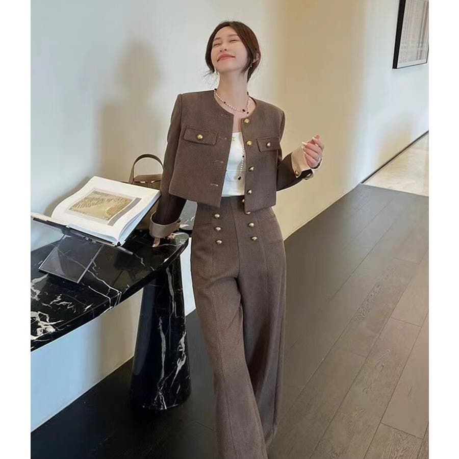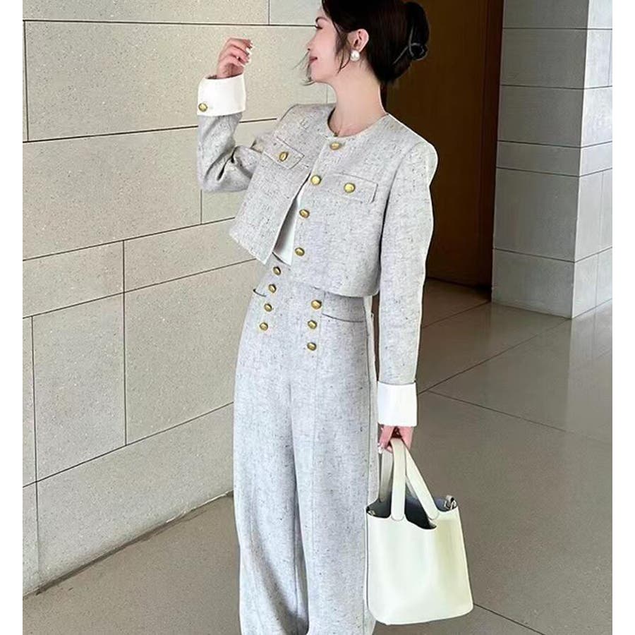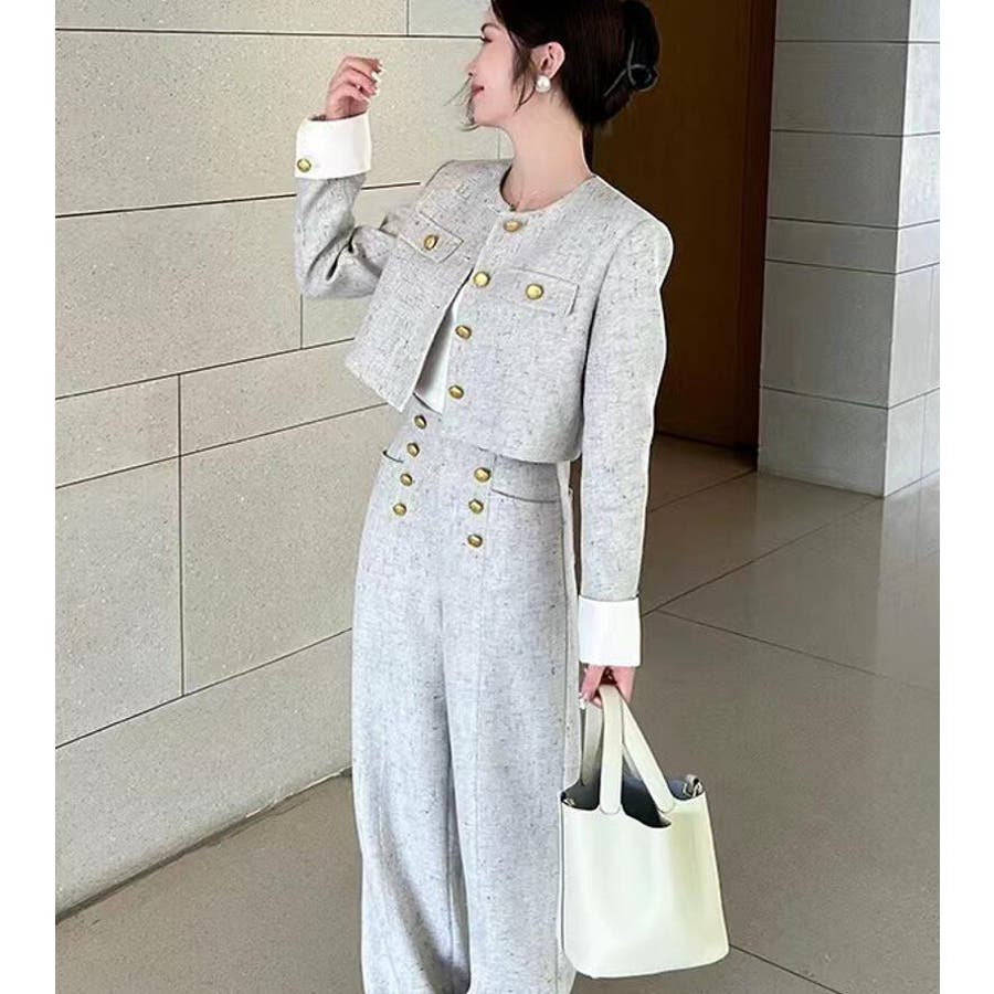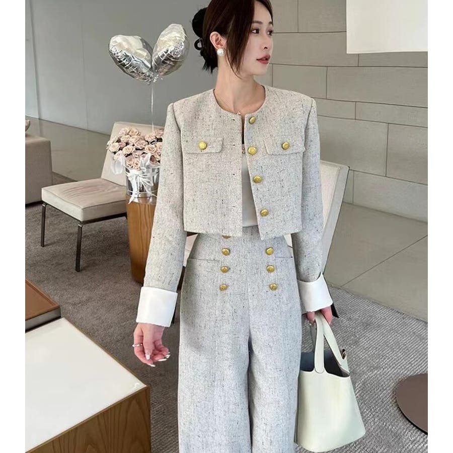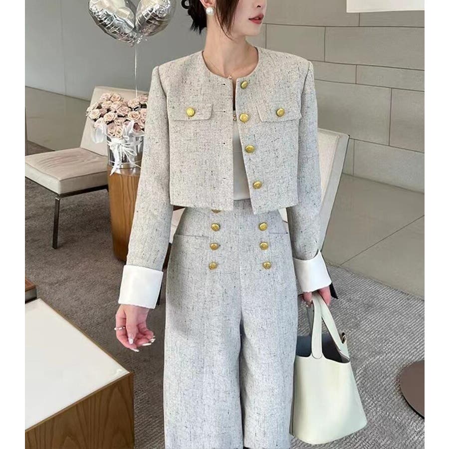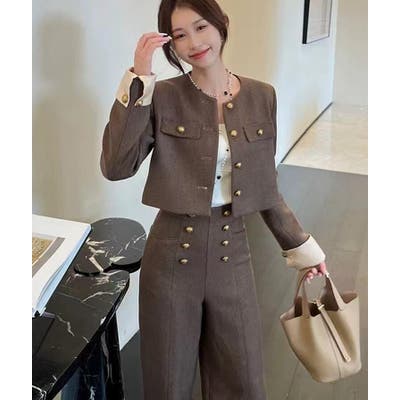 ミニマル丸ネックショート メタルボタン ワイドレッグ セット
