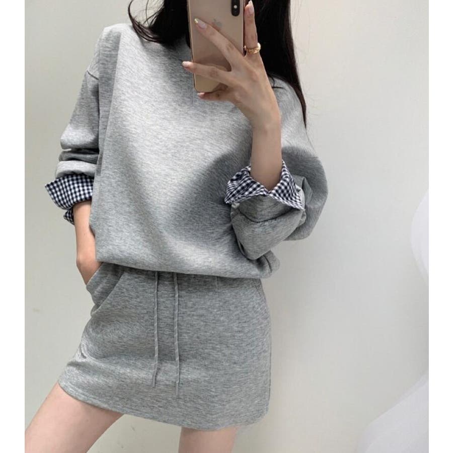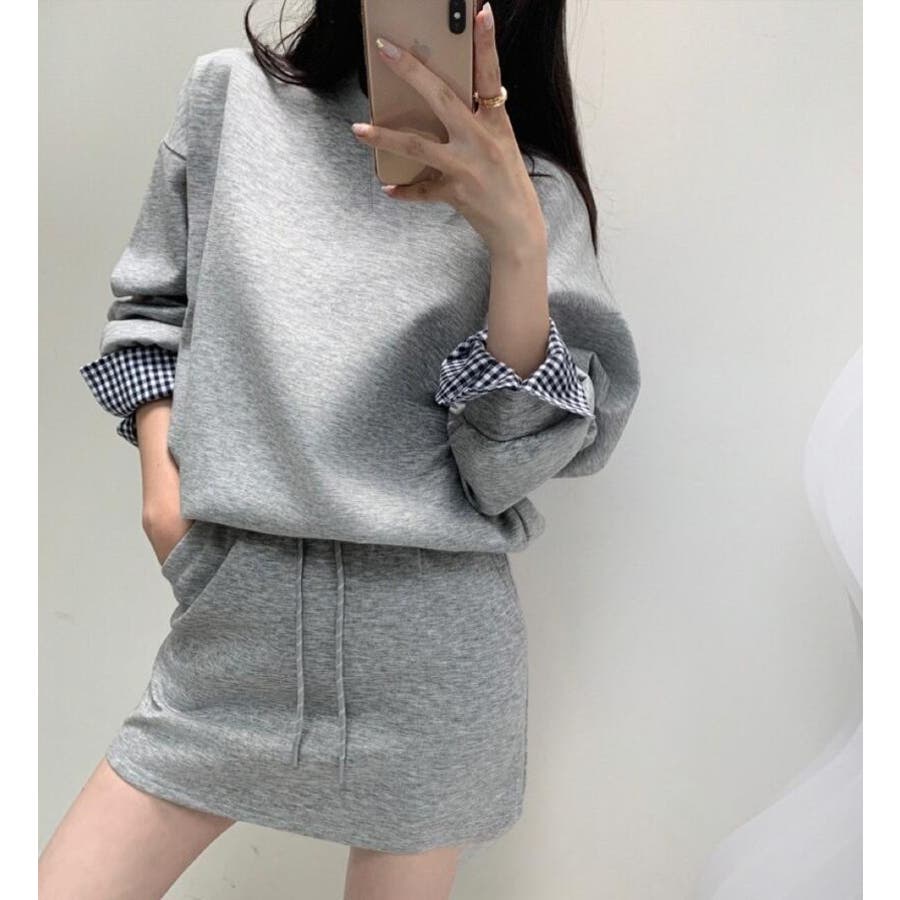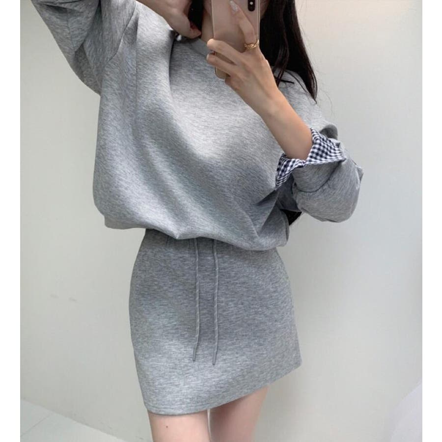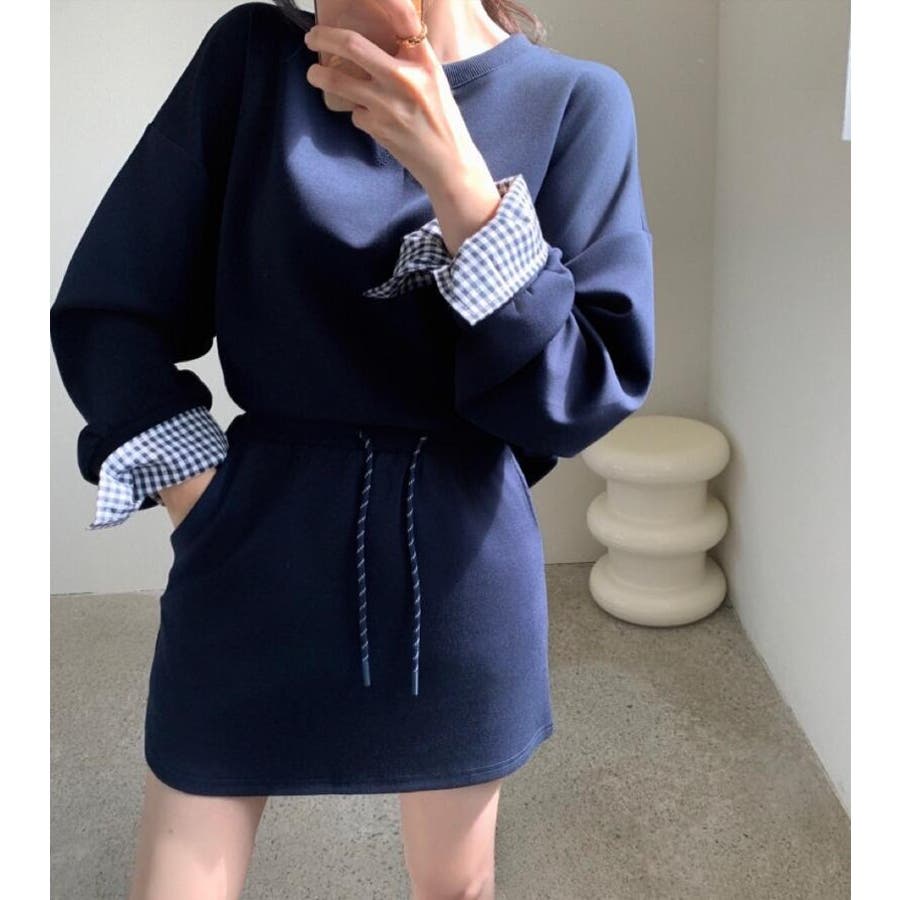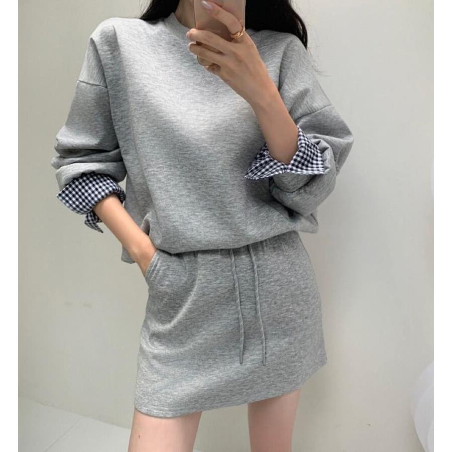 チェックキャフスディテールのスウェットドレスセット
