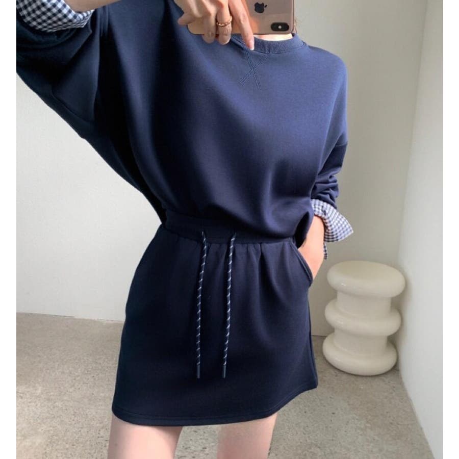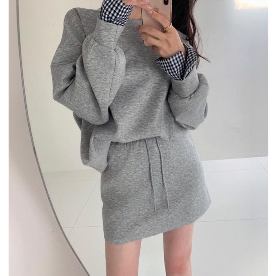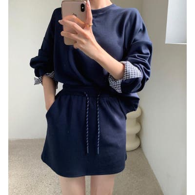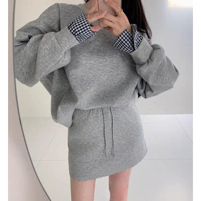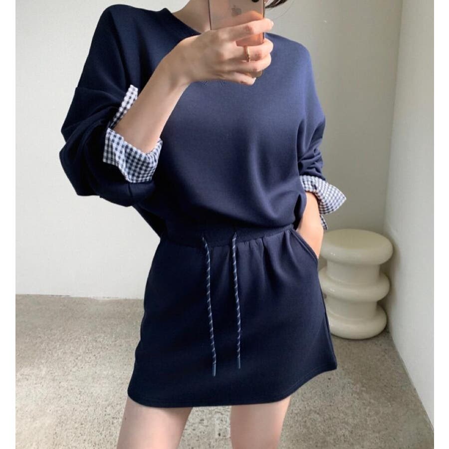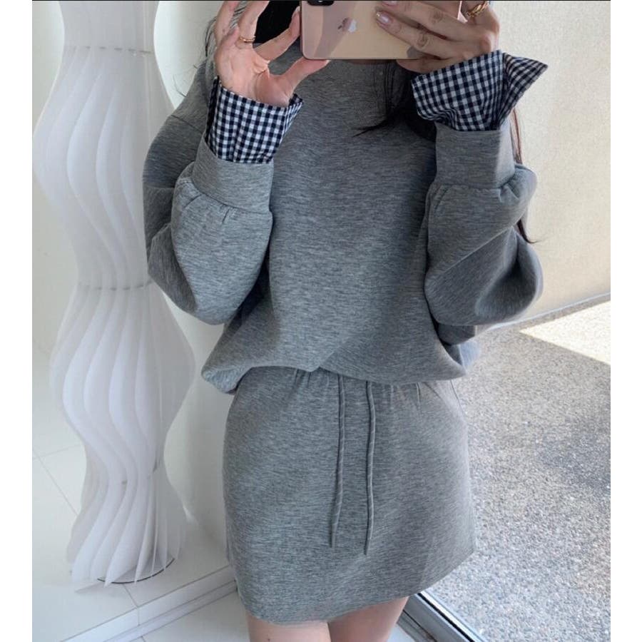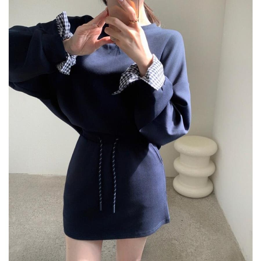 チェックキャフスディテールのスウェットドレスセット
