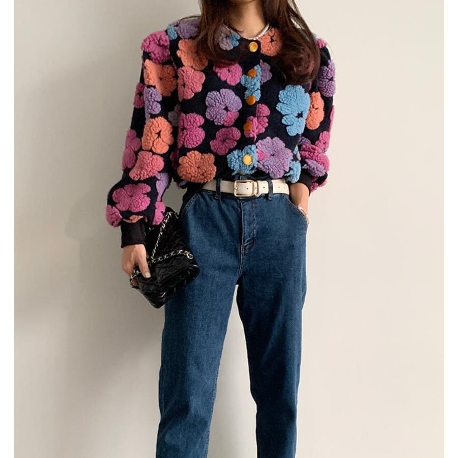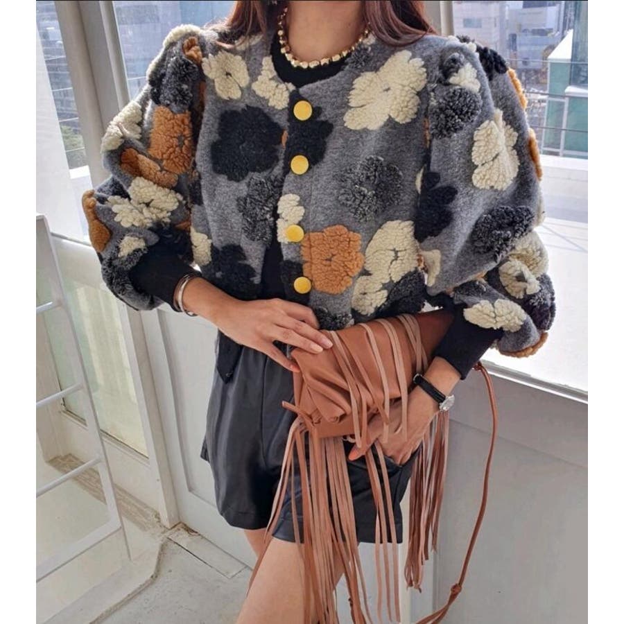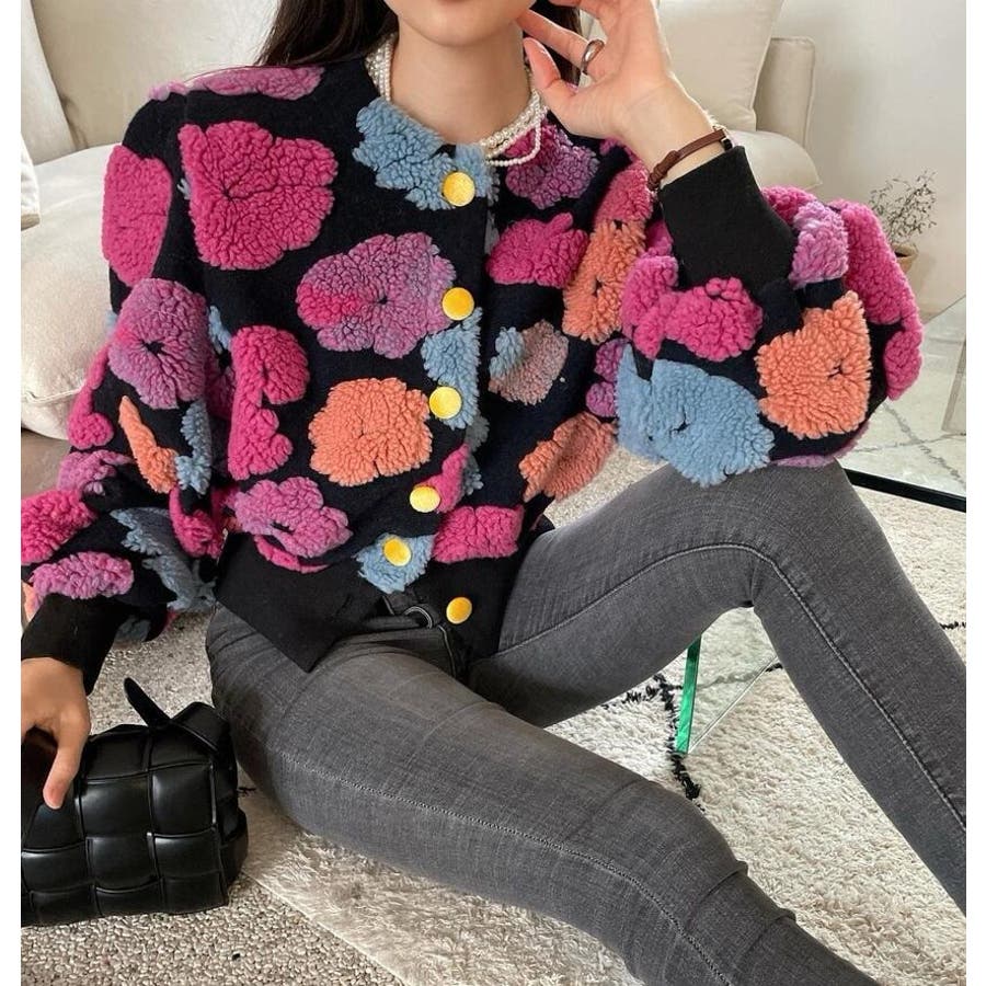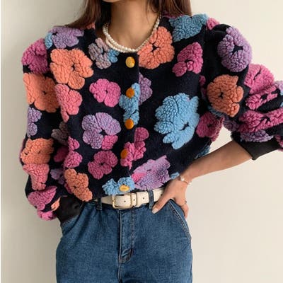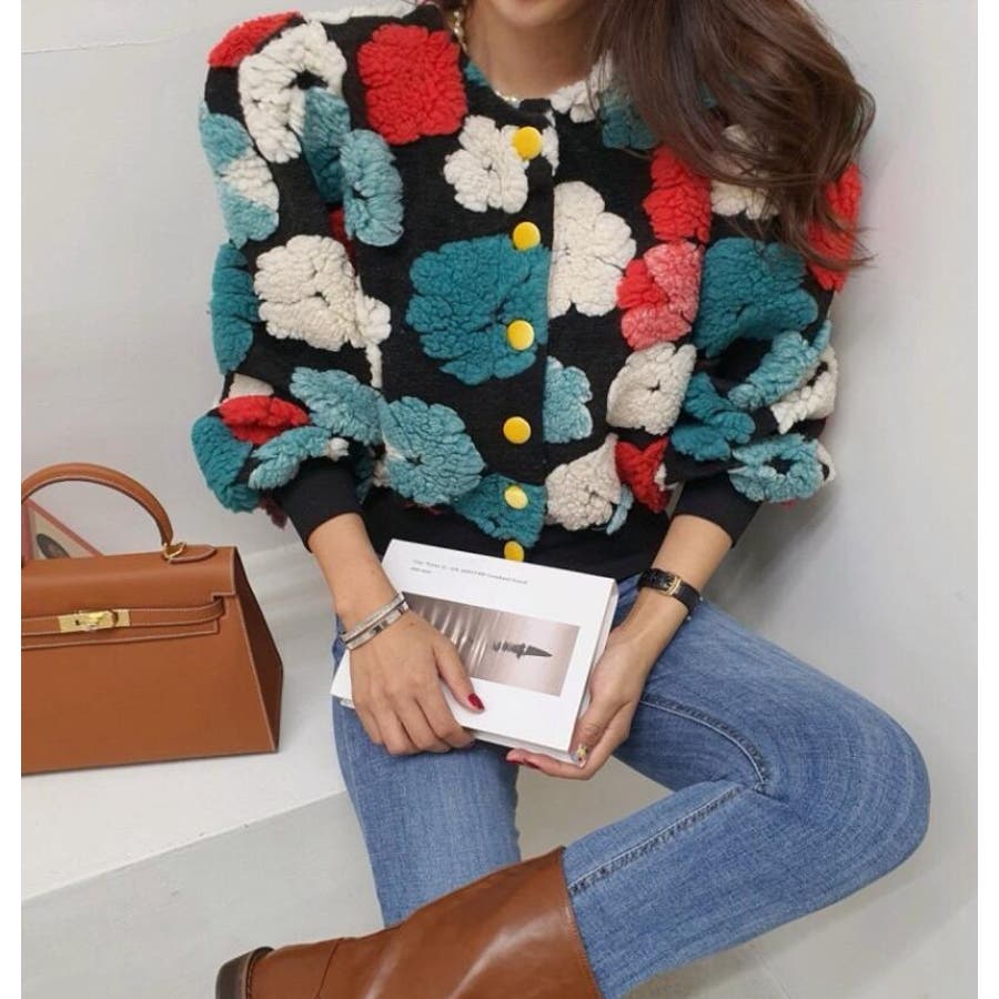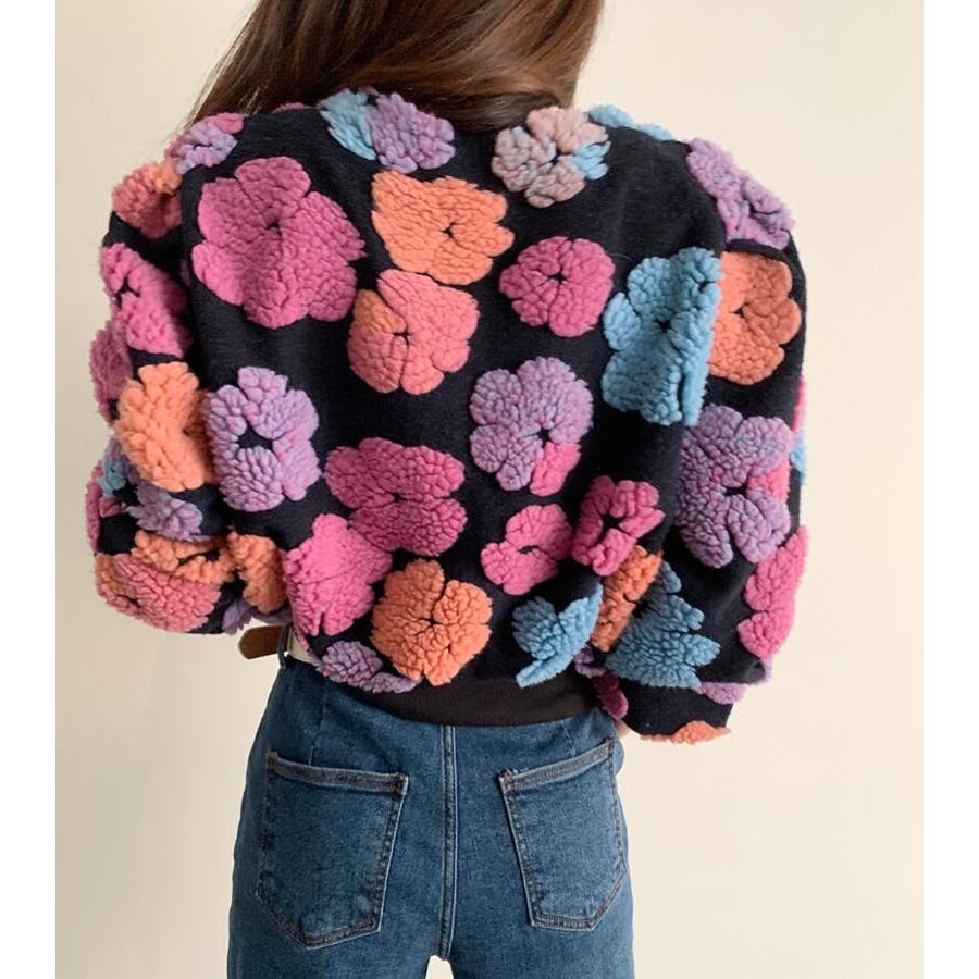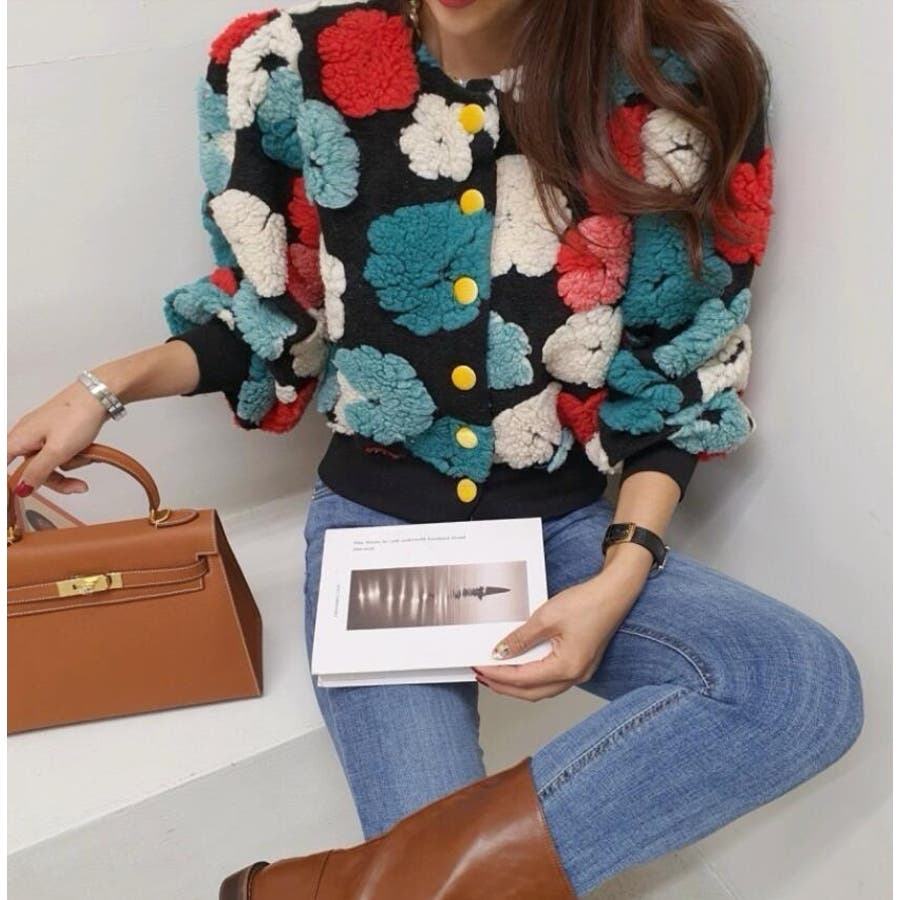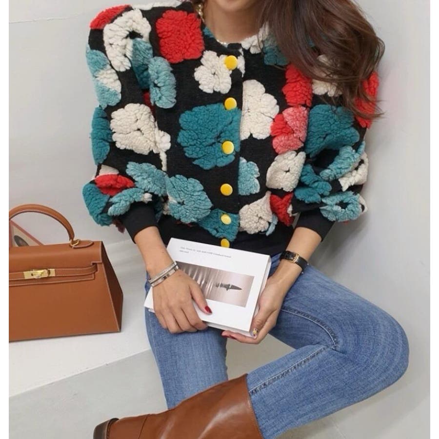 フラワーデザインのボタン付きジャケット