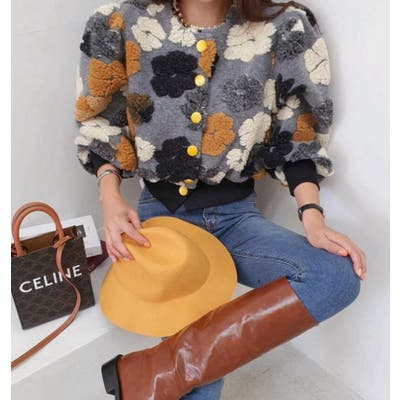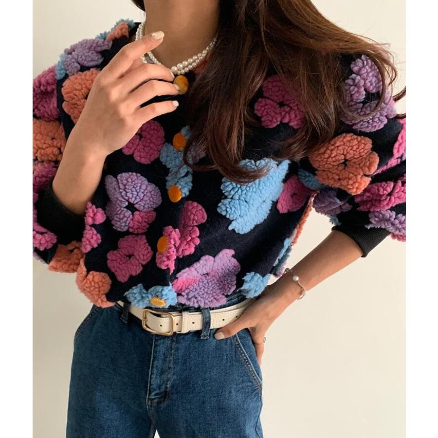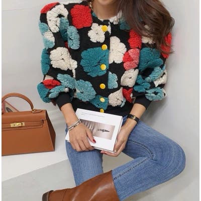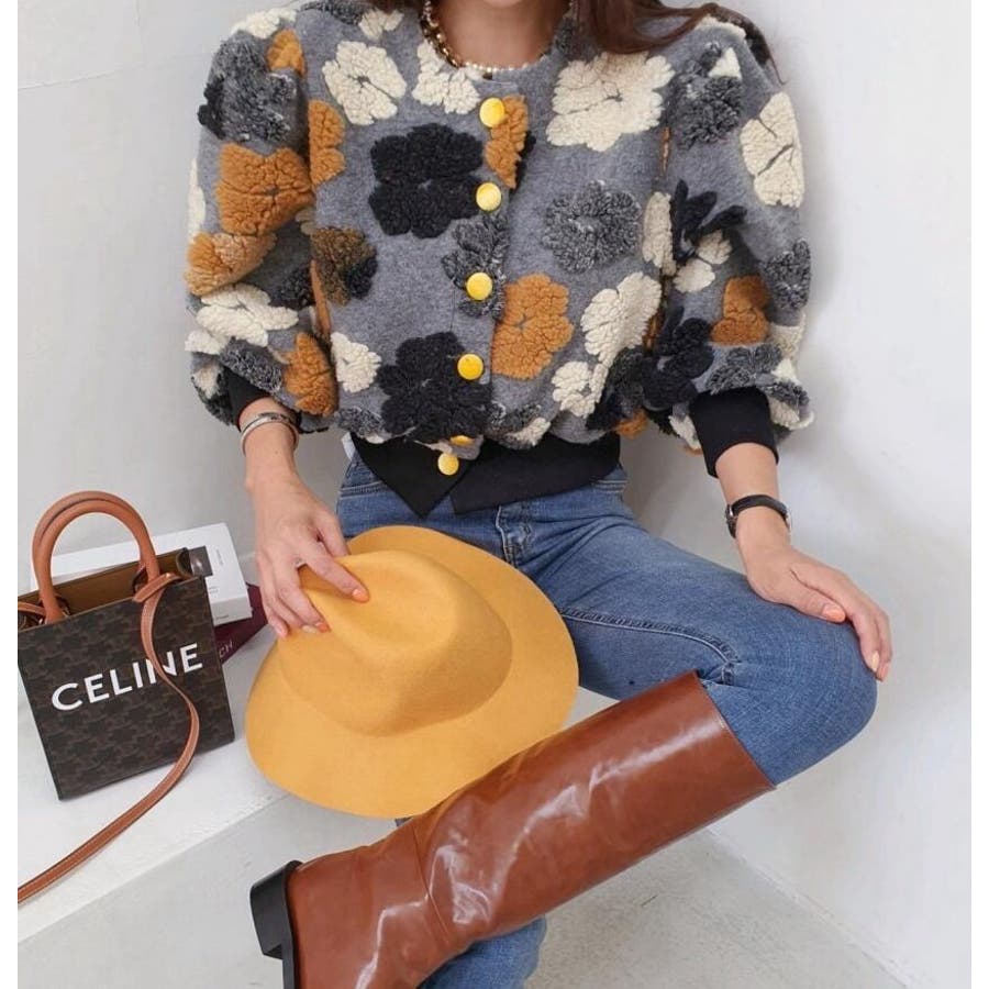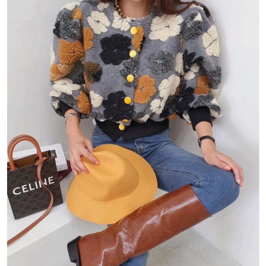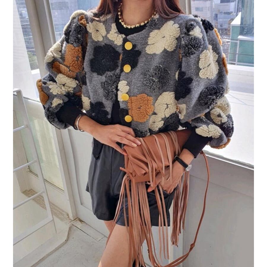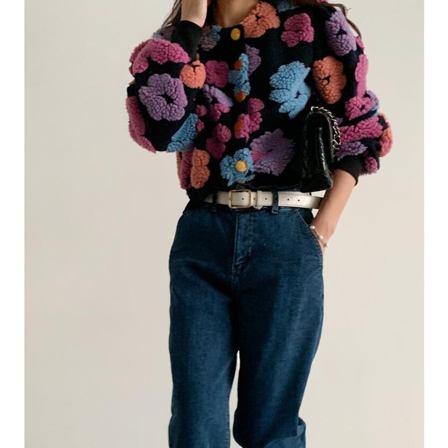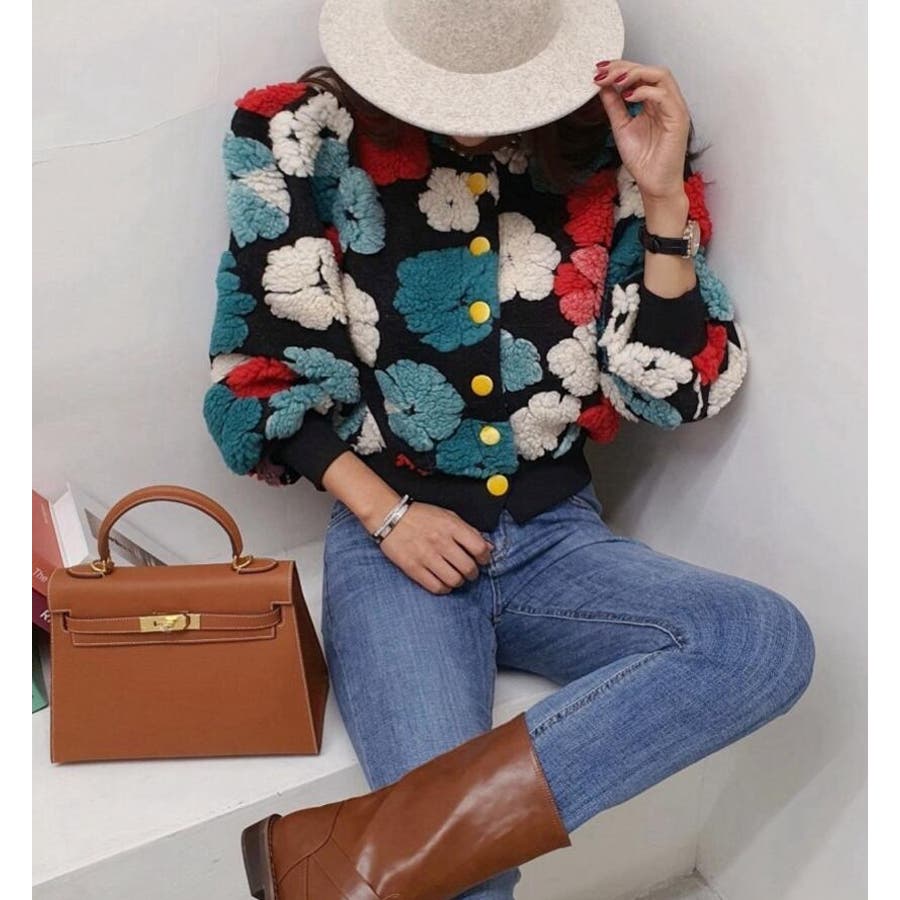 フラワーデザインのボタン付きジャケット