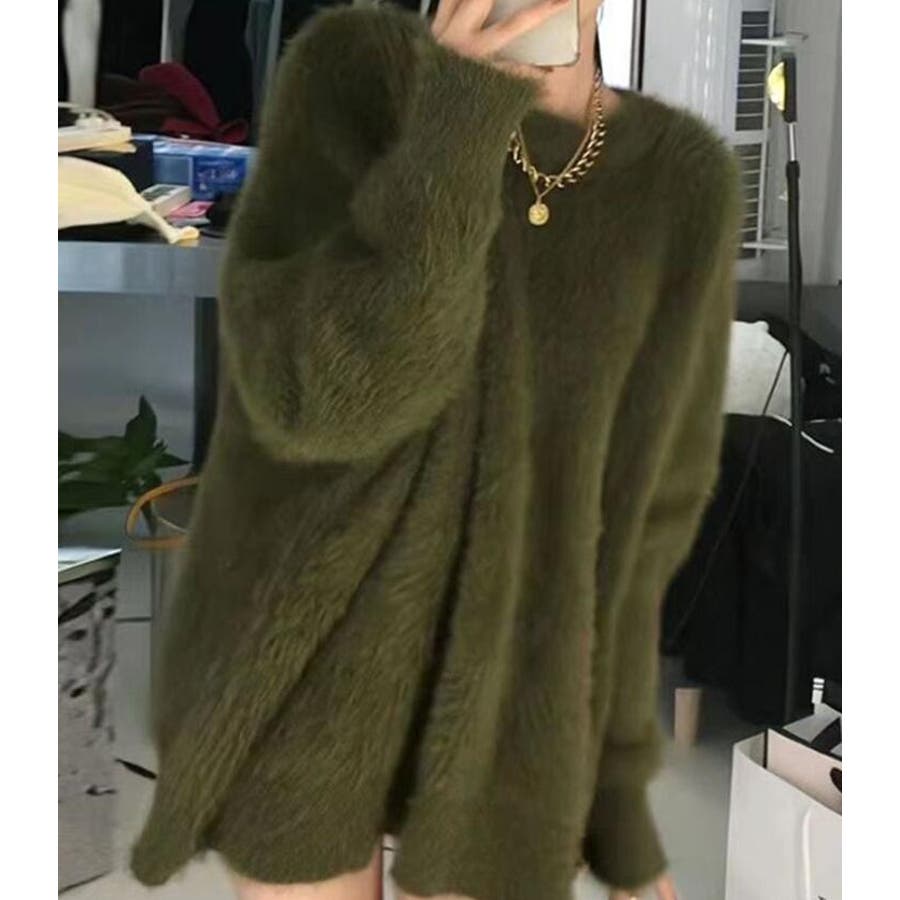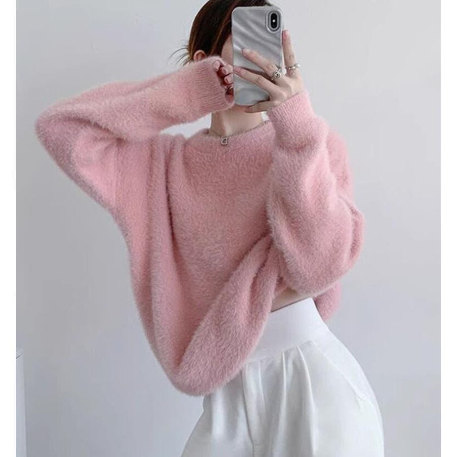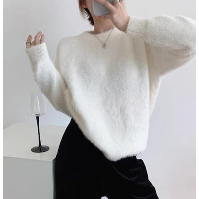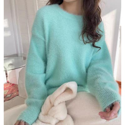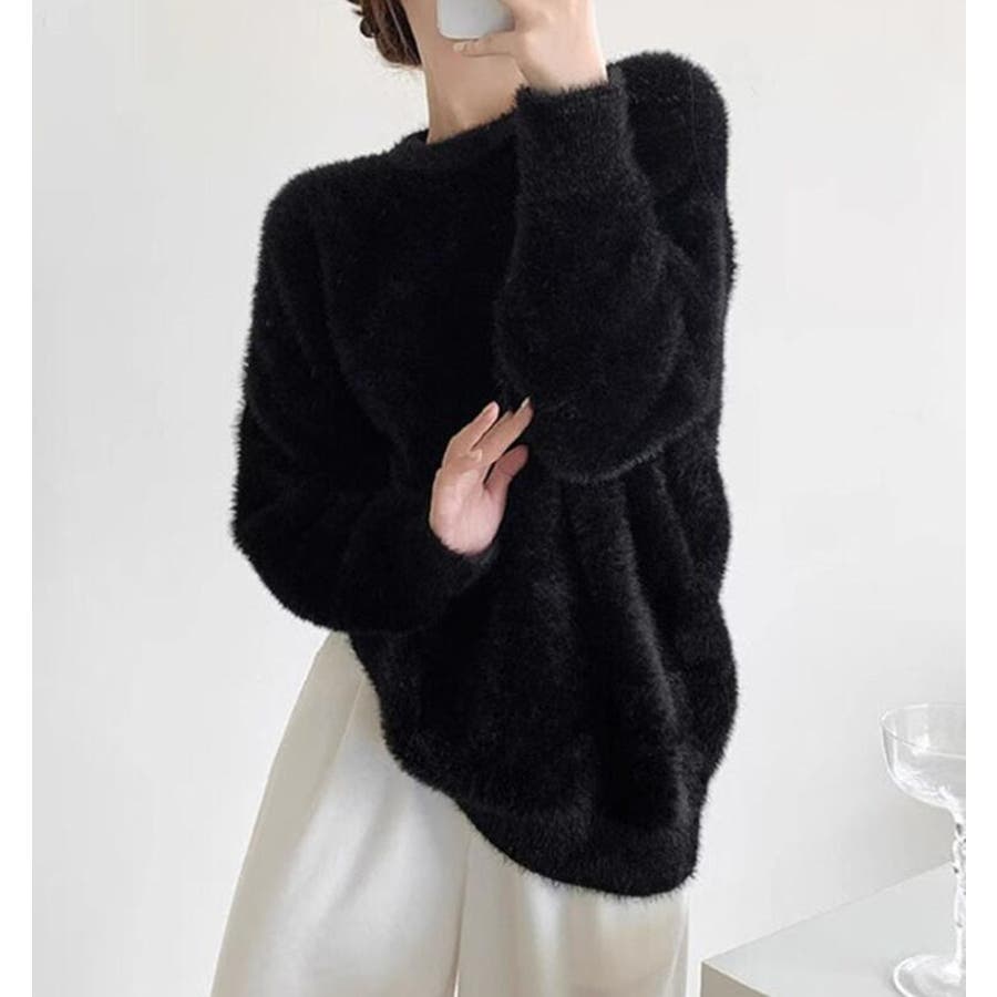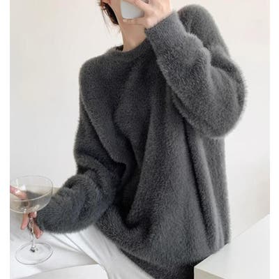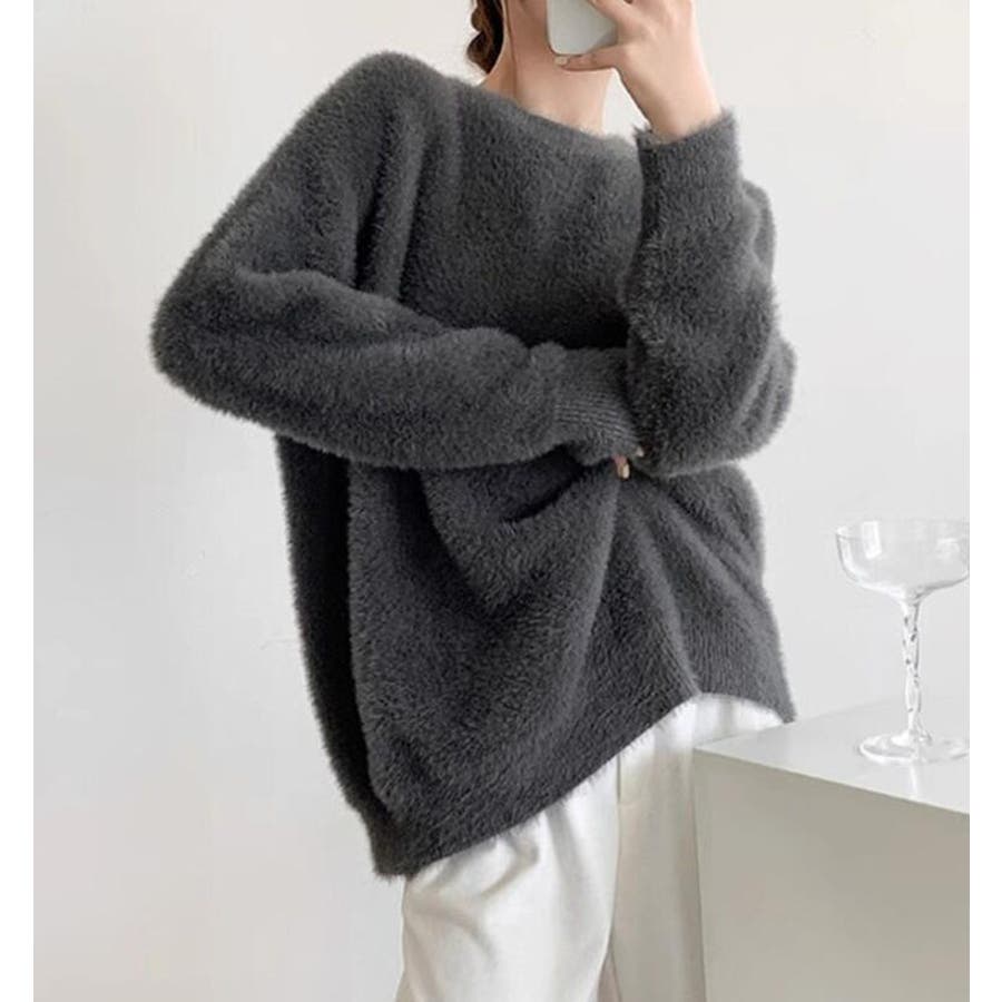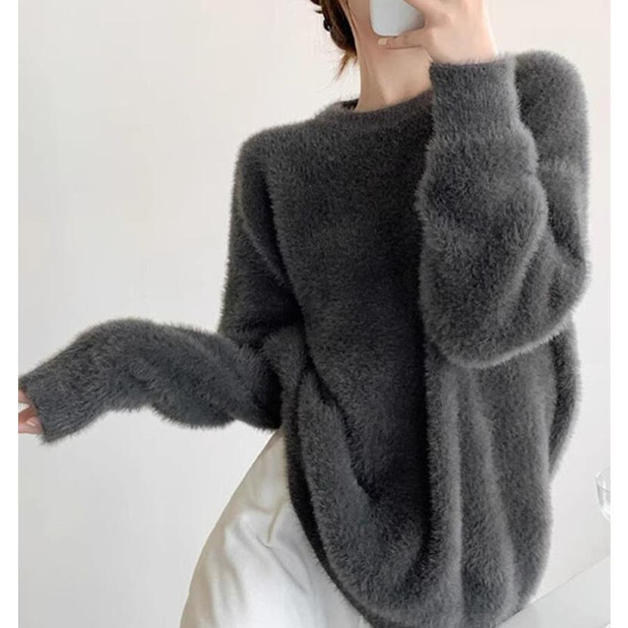 丸襟ふわふわニットセーター
