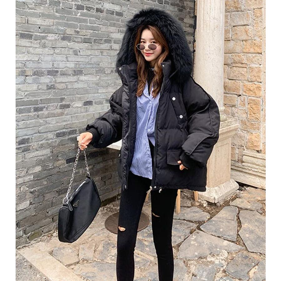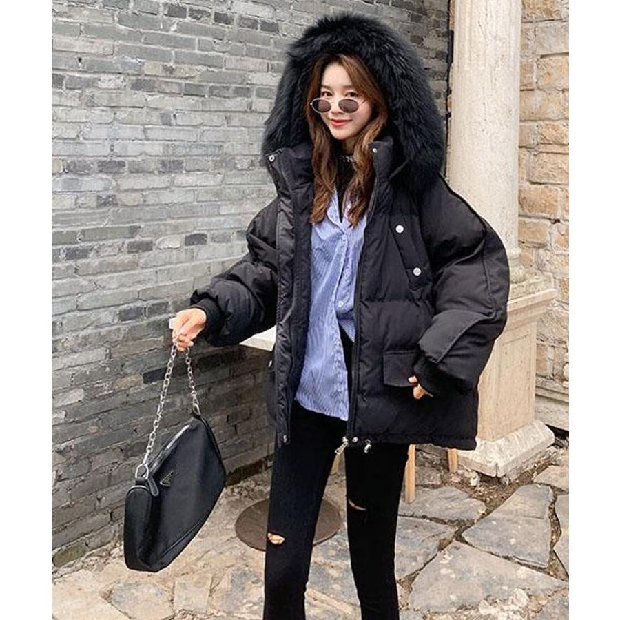 ファーフード付きボリューム感あふれるダウンジャケット