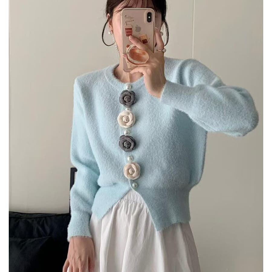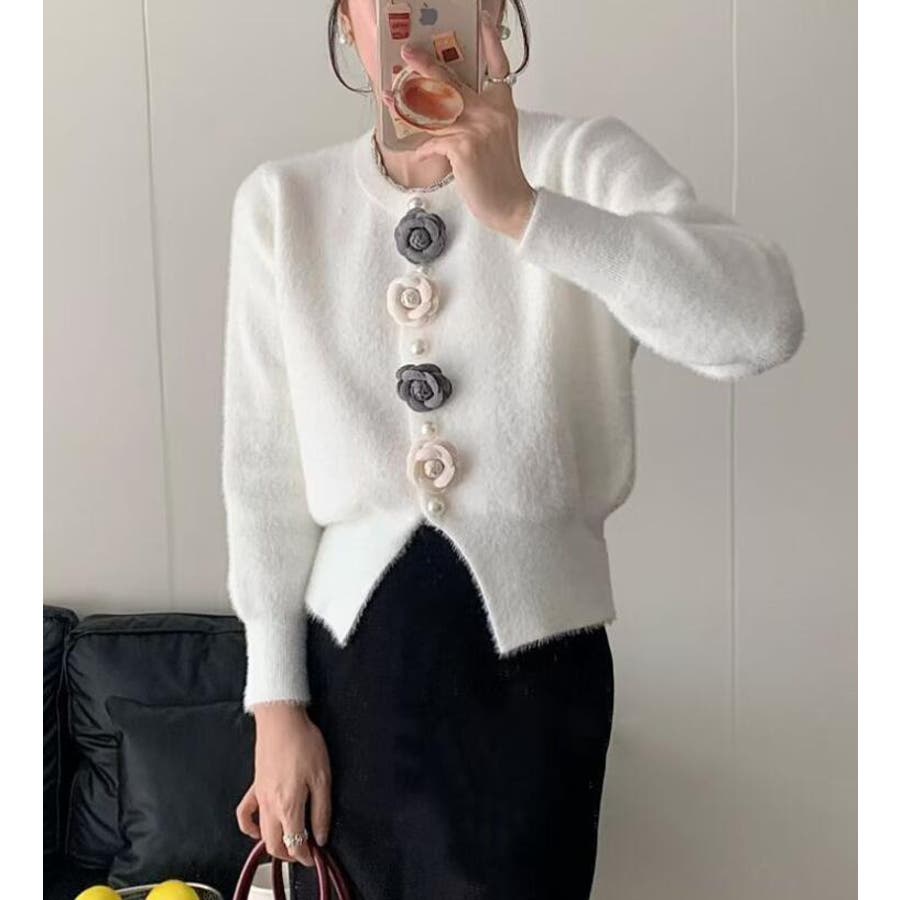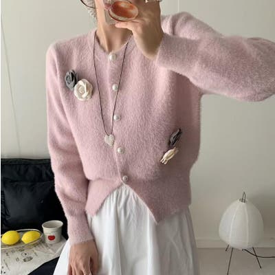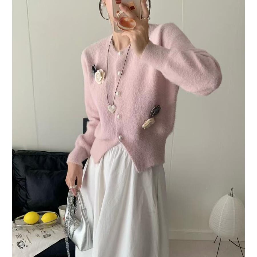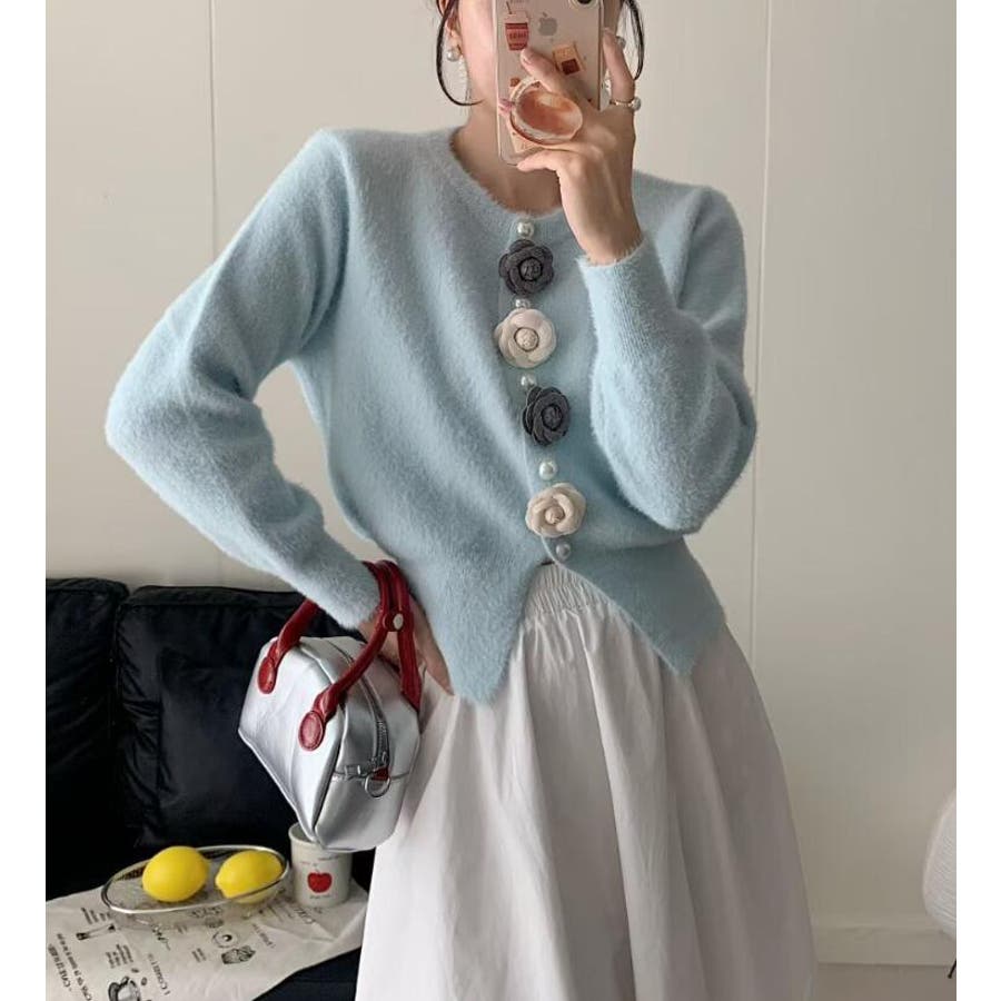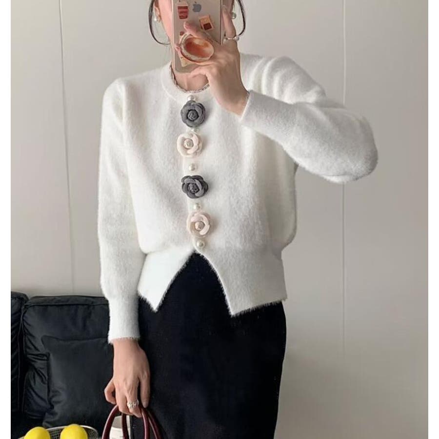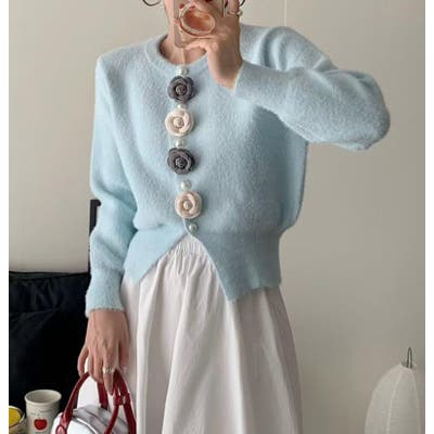 フラワーボタンニットカーディガン