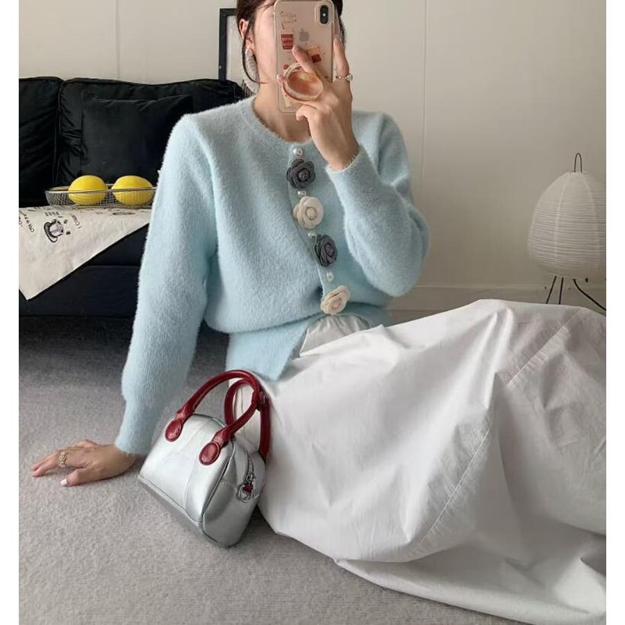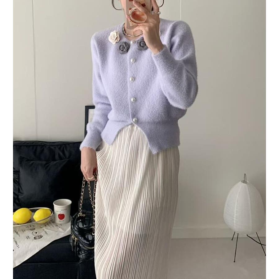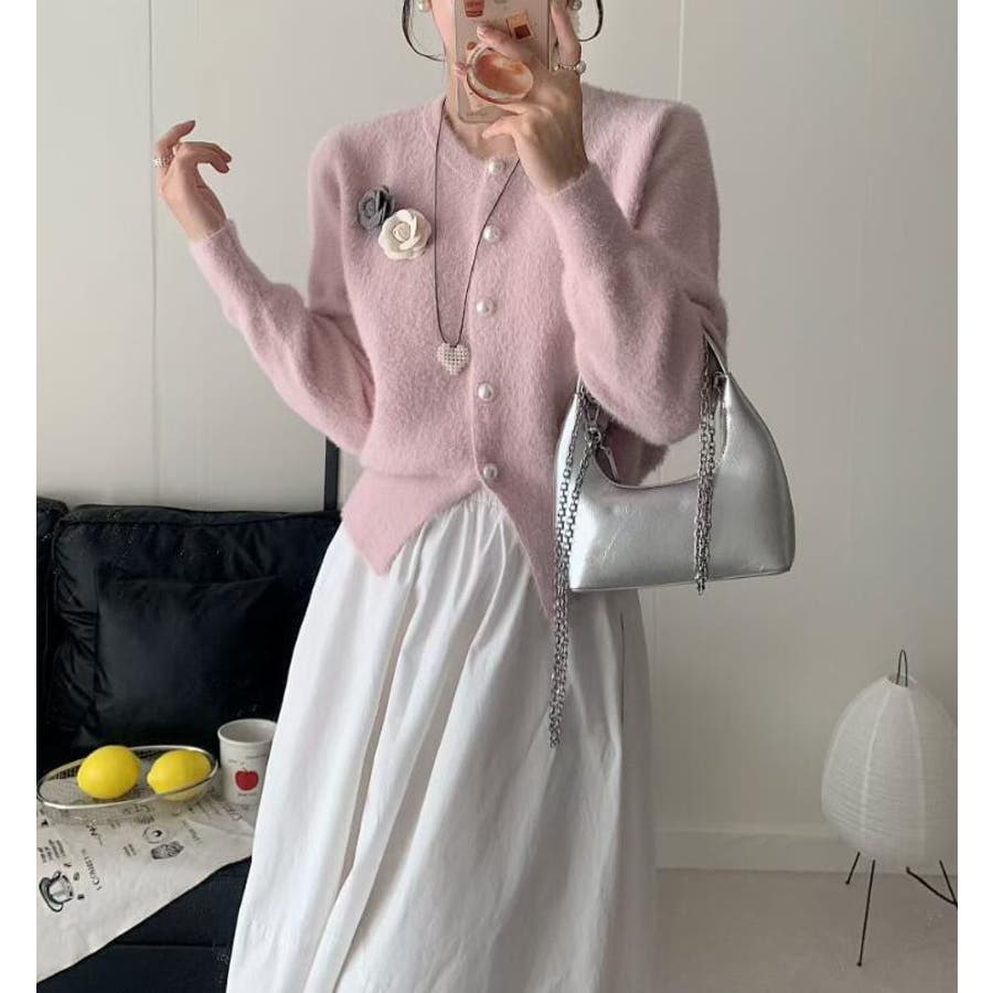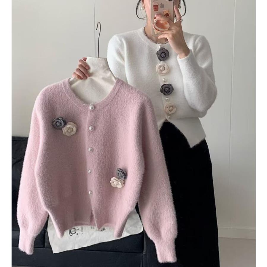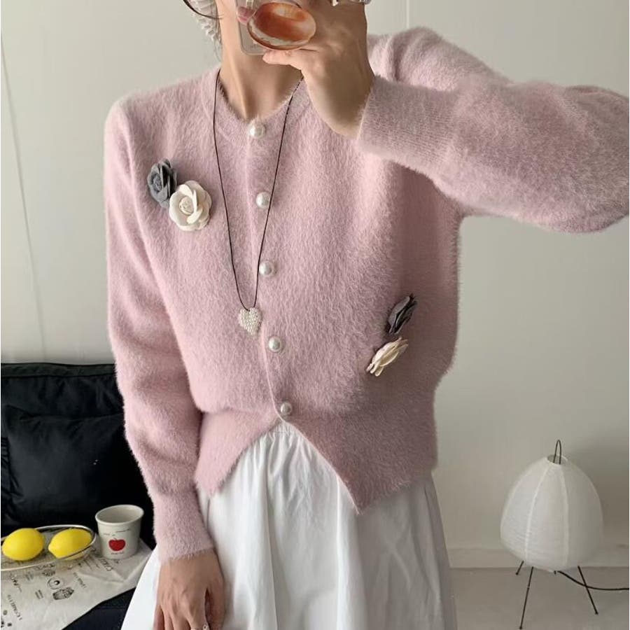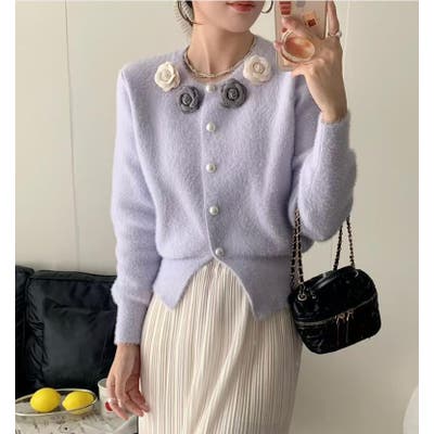 フラワーボタンニットカーディガン