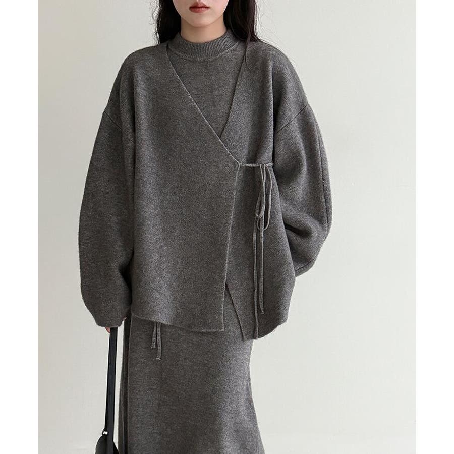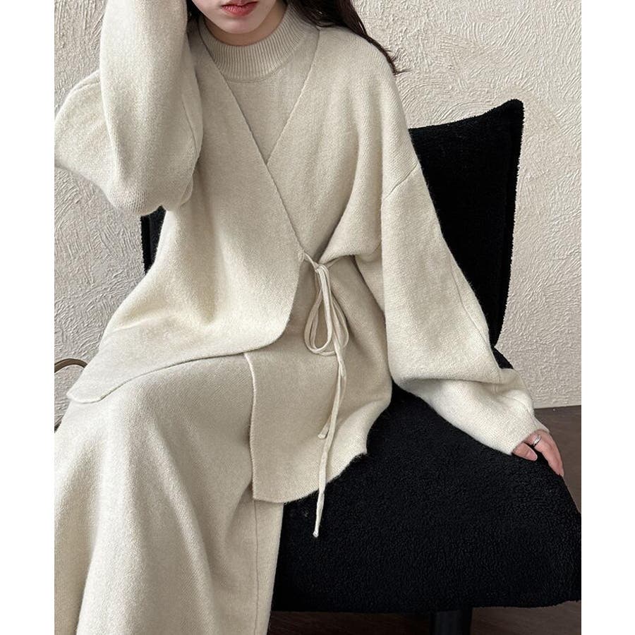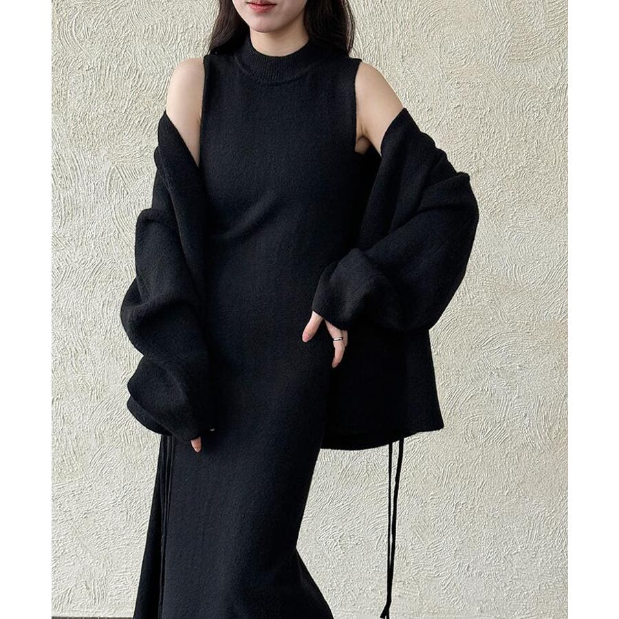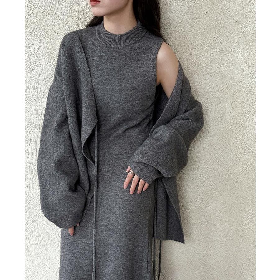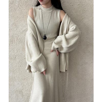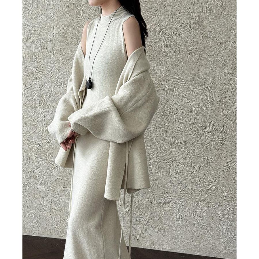ボリュームスリーブカーディガン ノースリーブワンピースセット