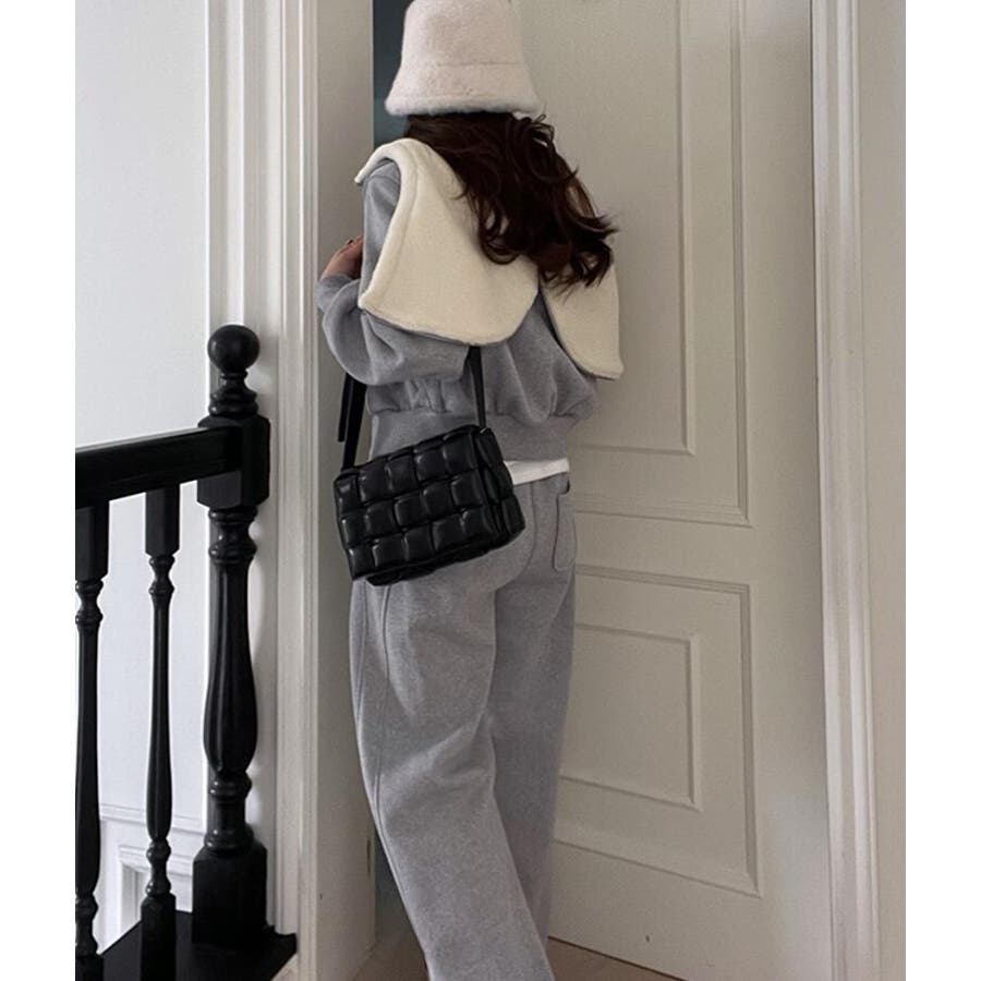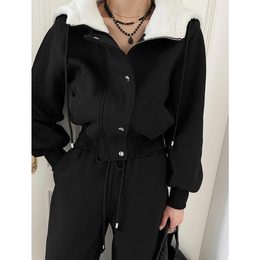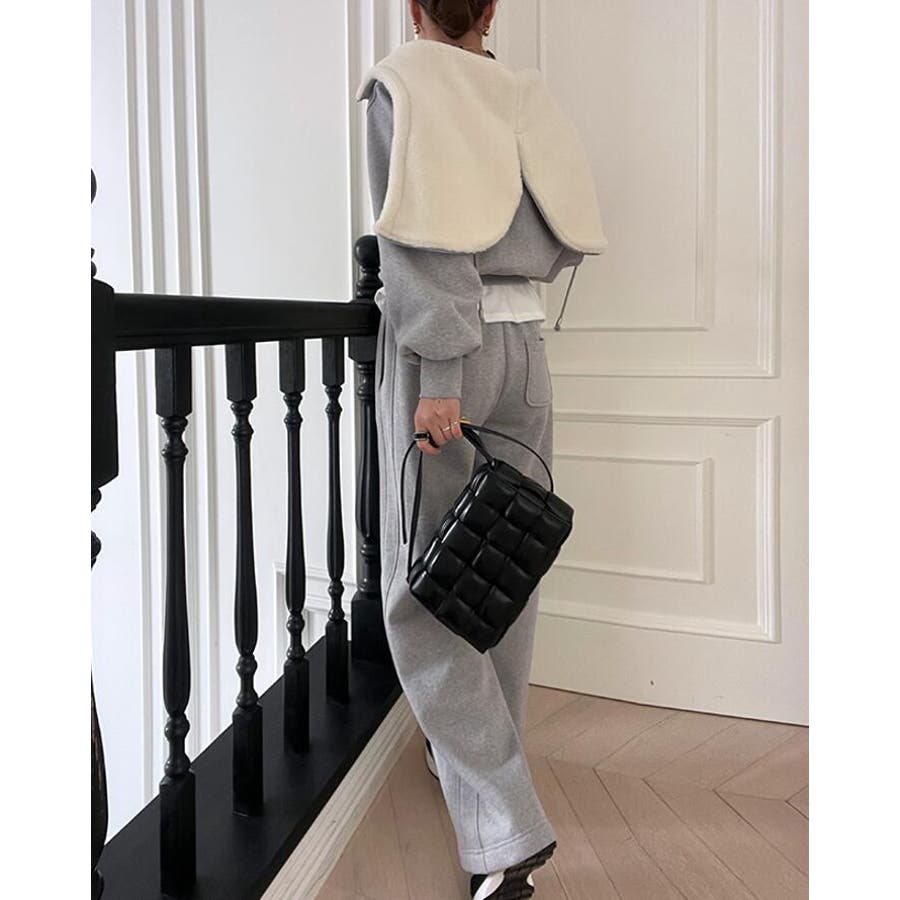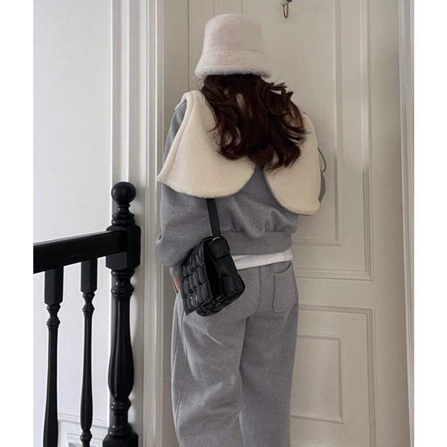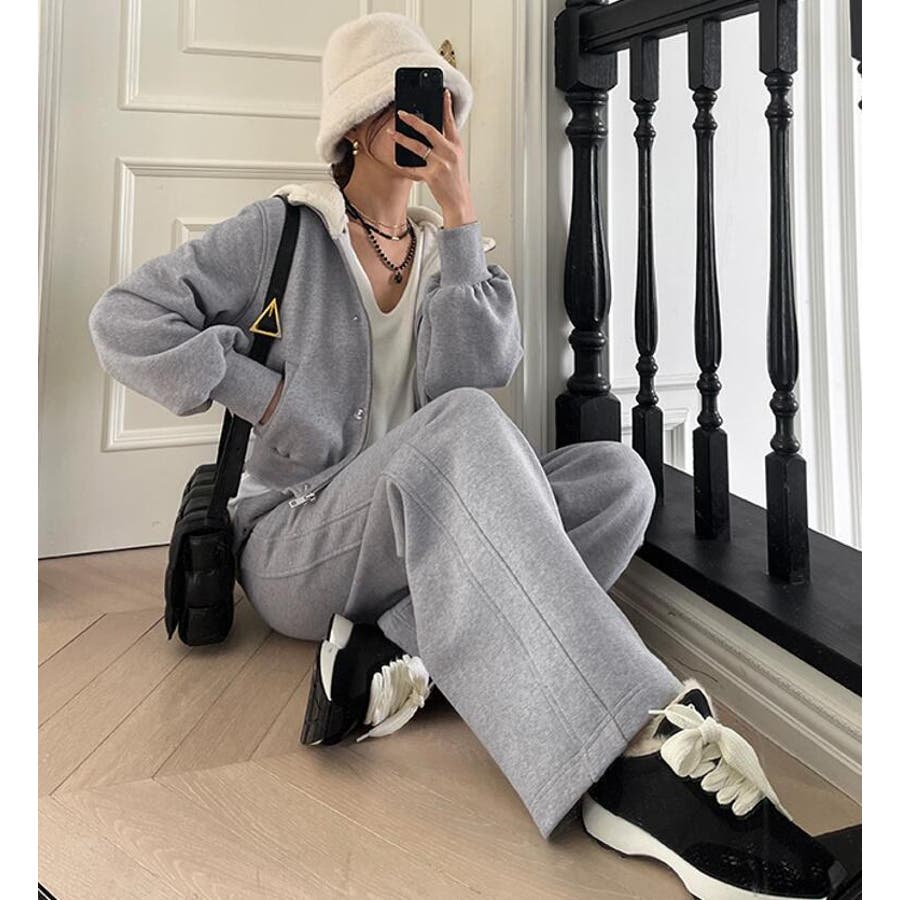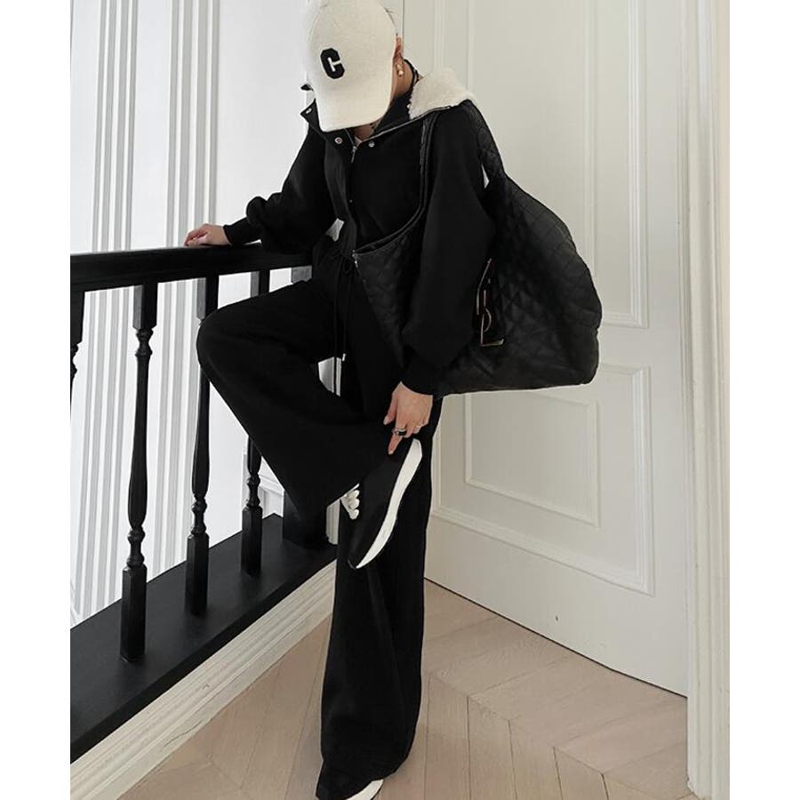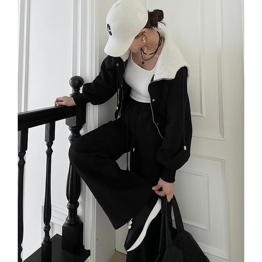 パーカートップス × ワイドパンツ スウェットセット フード付きコーディネート