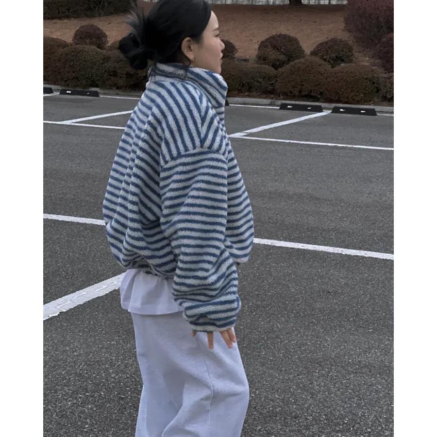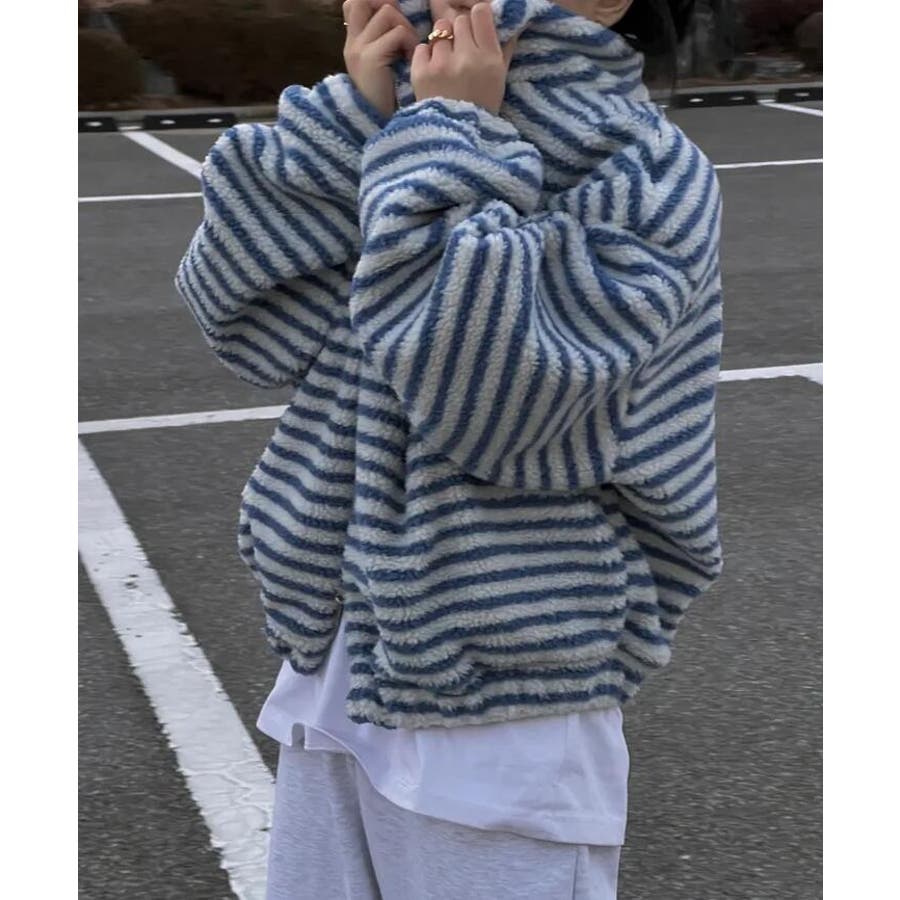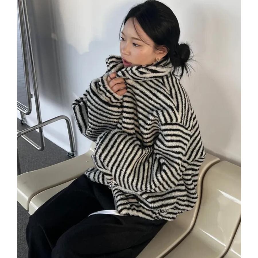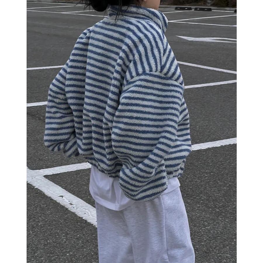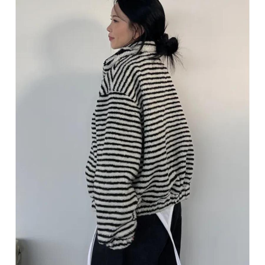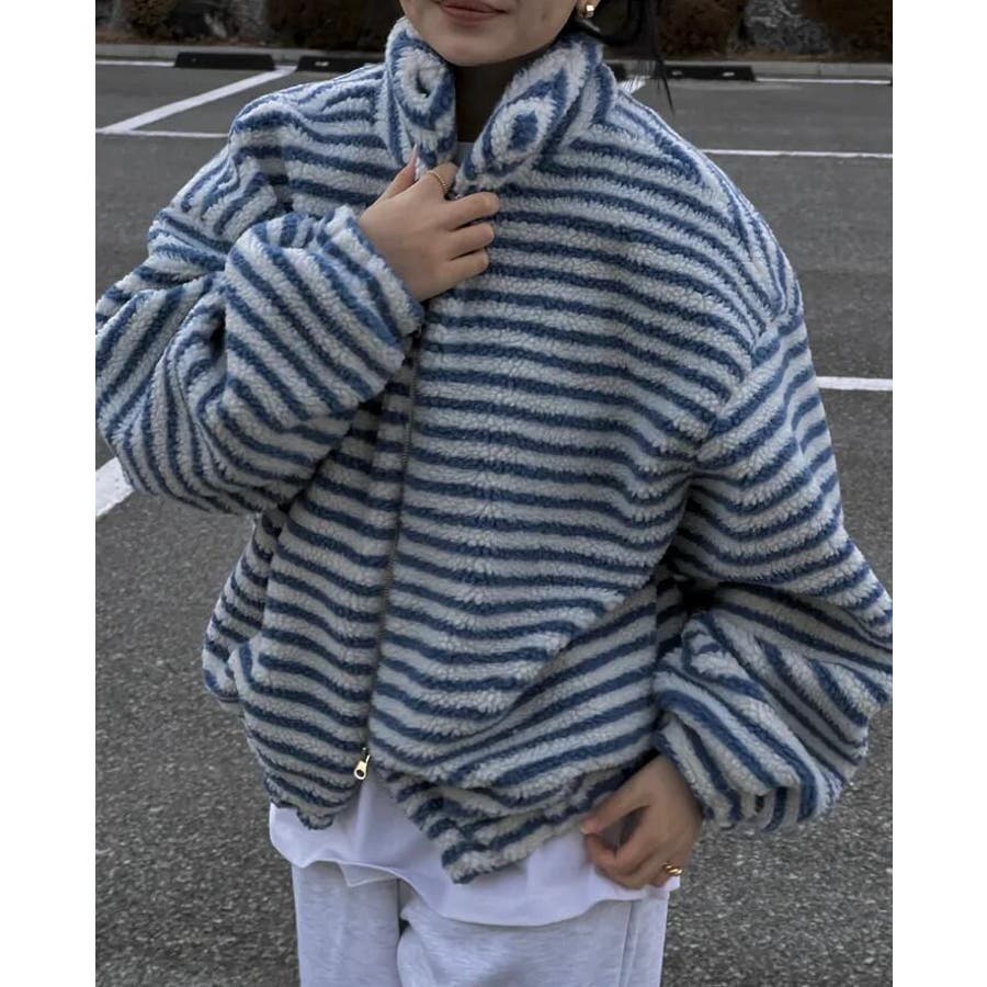 ストライプ柄ハイネックフリースジャケット