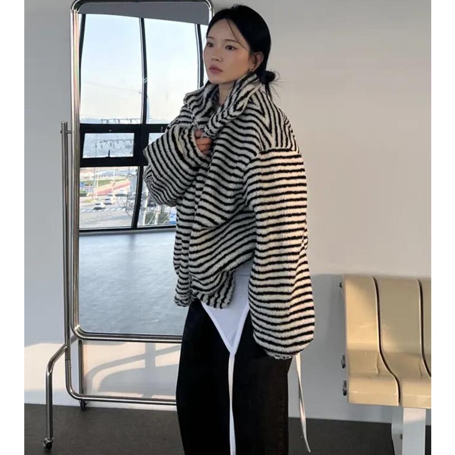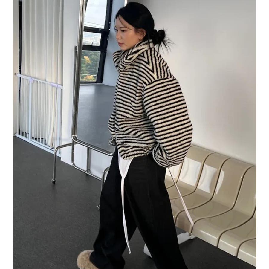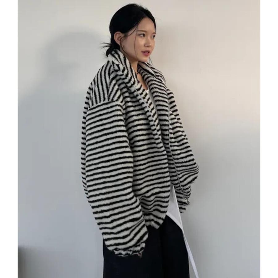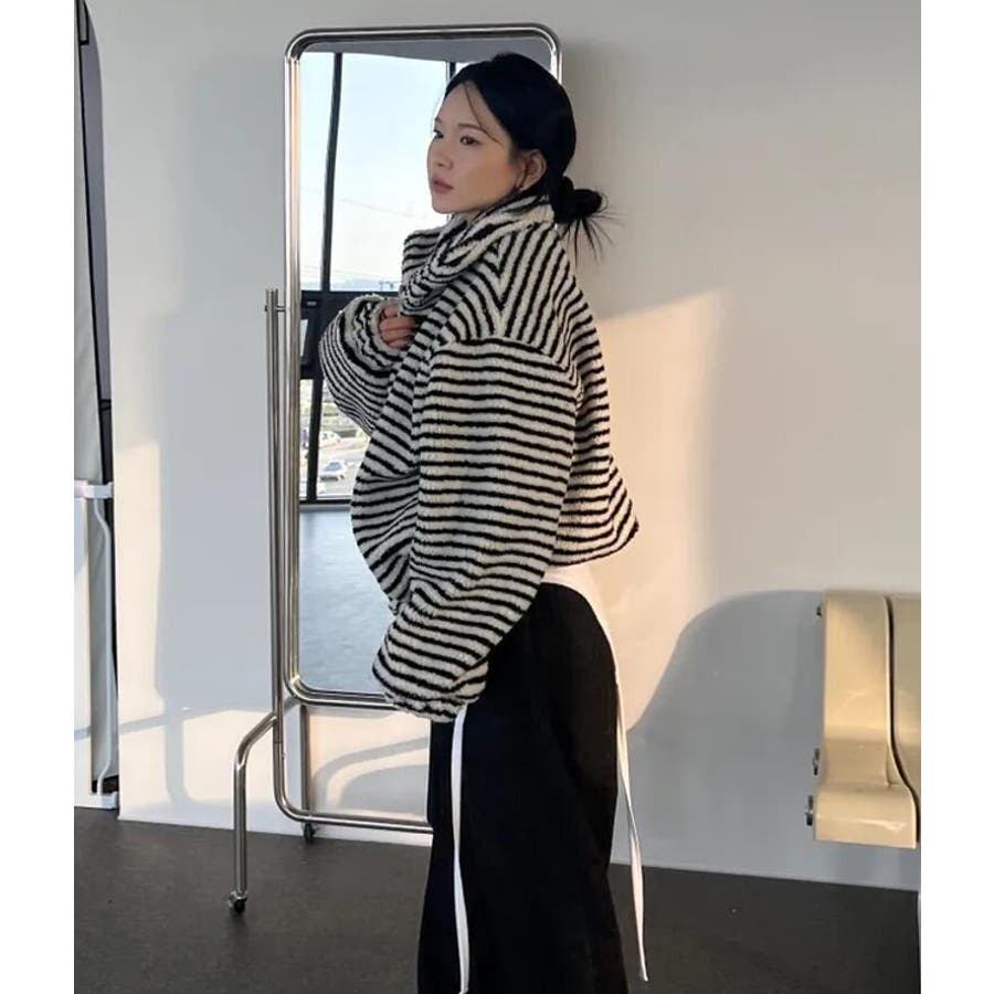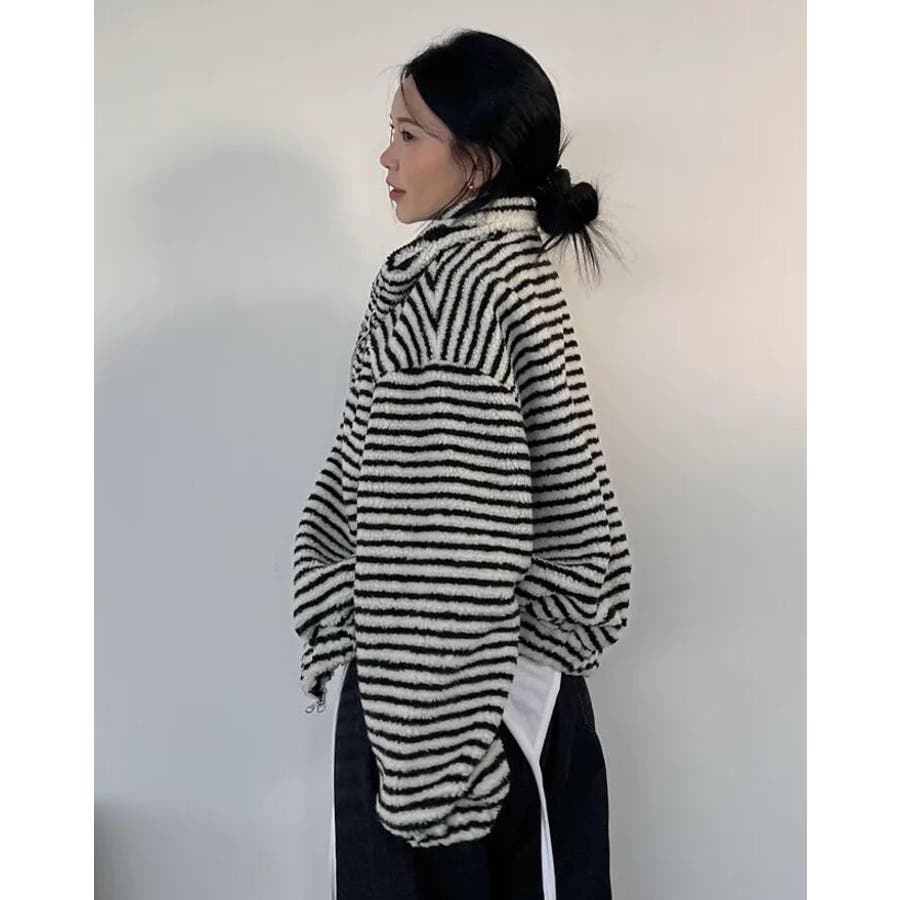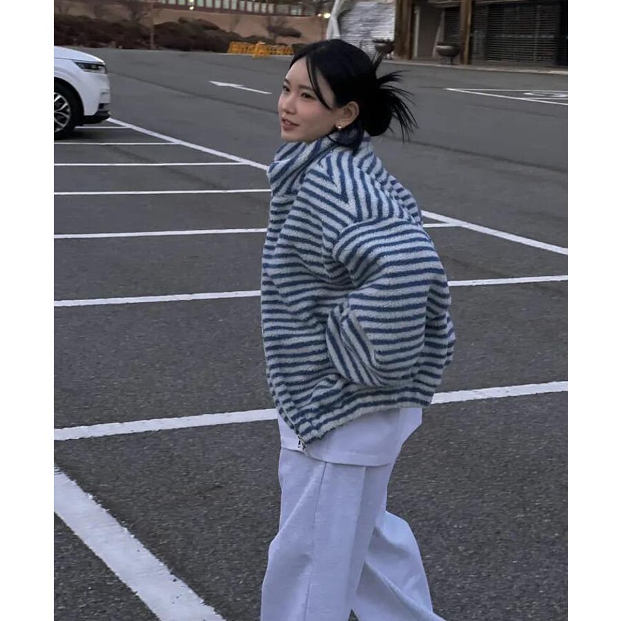 ストライプ柄ハイネックフリースジャケット