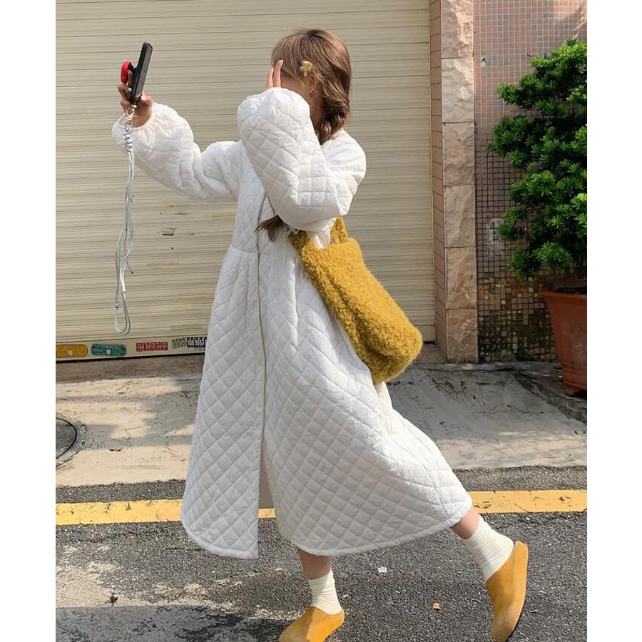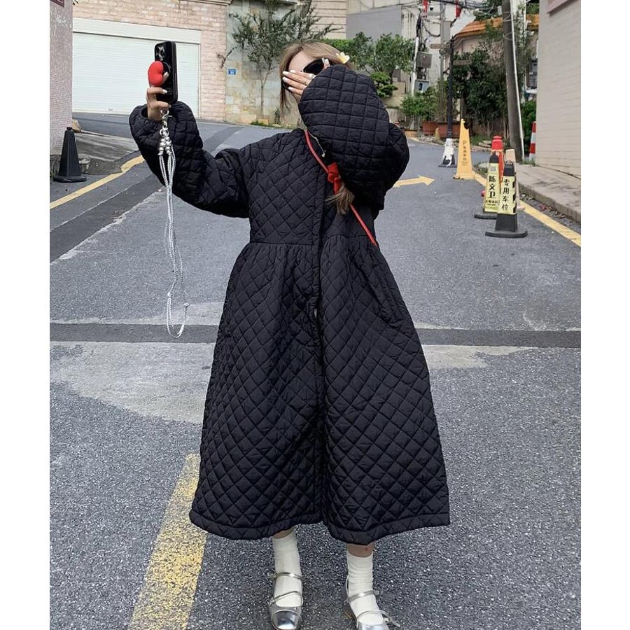 ダイヤ柄バルーンスリーブロングワンピース