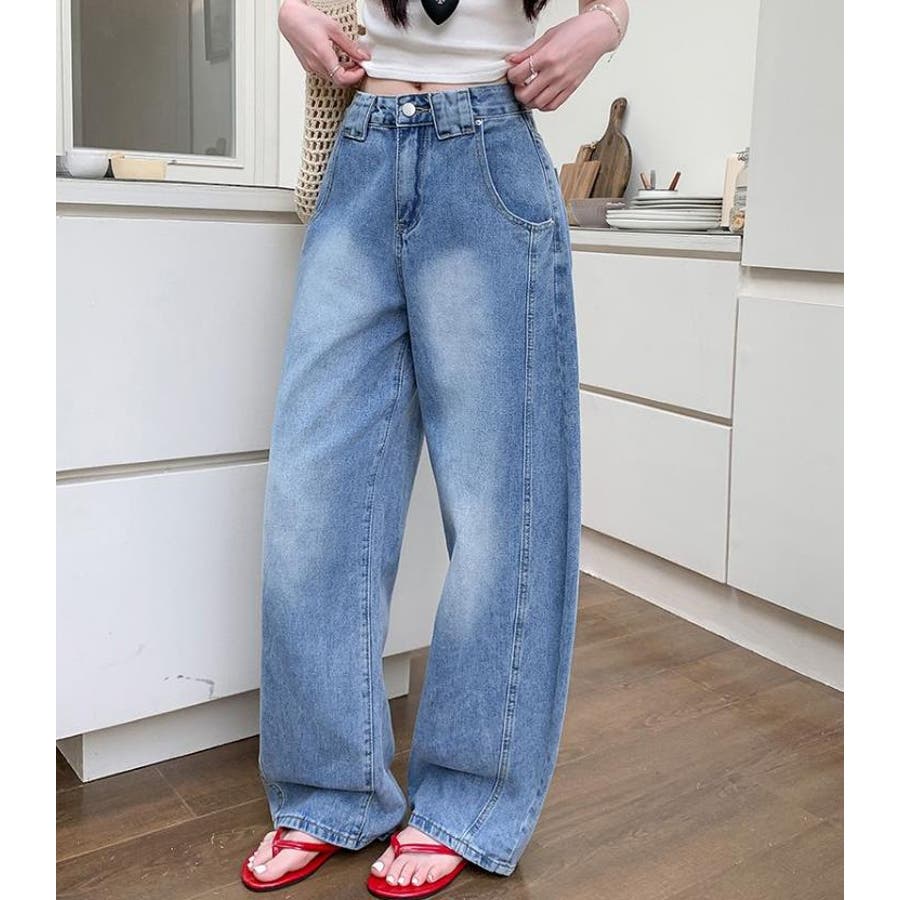 レギュラーなシルエットでスタイリッシュなデニムパンツ【韓国ファッション】