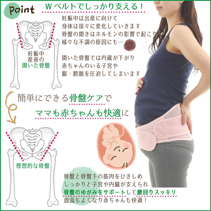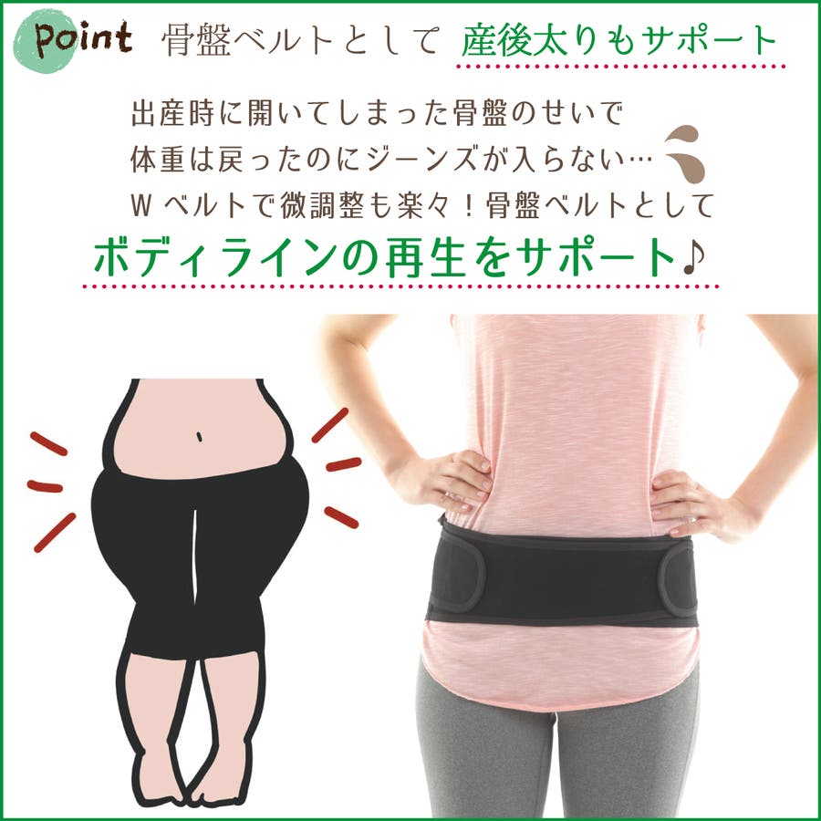 産後は骨盤サポートベルトとして使用でき、開いてしまった骨盤の引き締めにお使いいただけます。