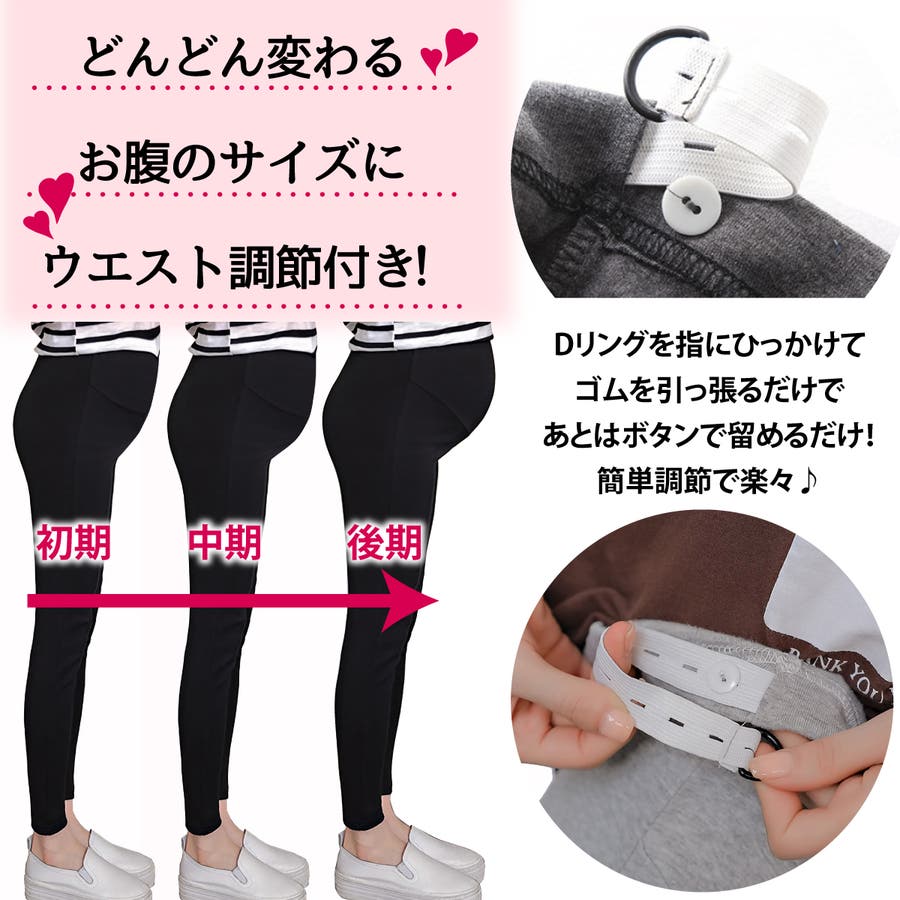 簡単調整のボタン付きゴムが、妊娠初期から産後まで継続的に着用できて経済的!