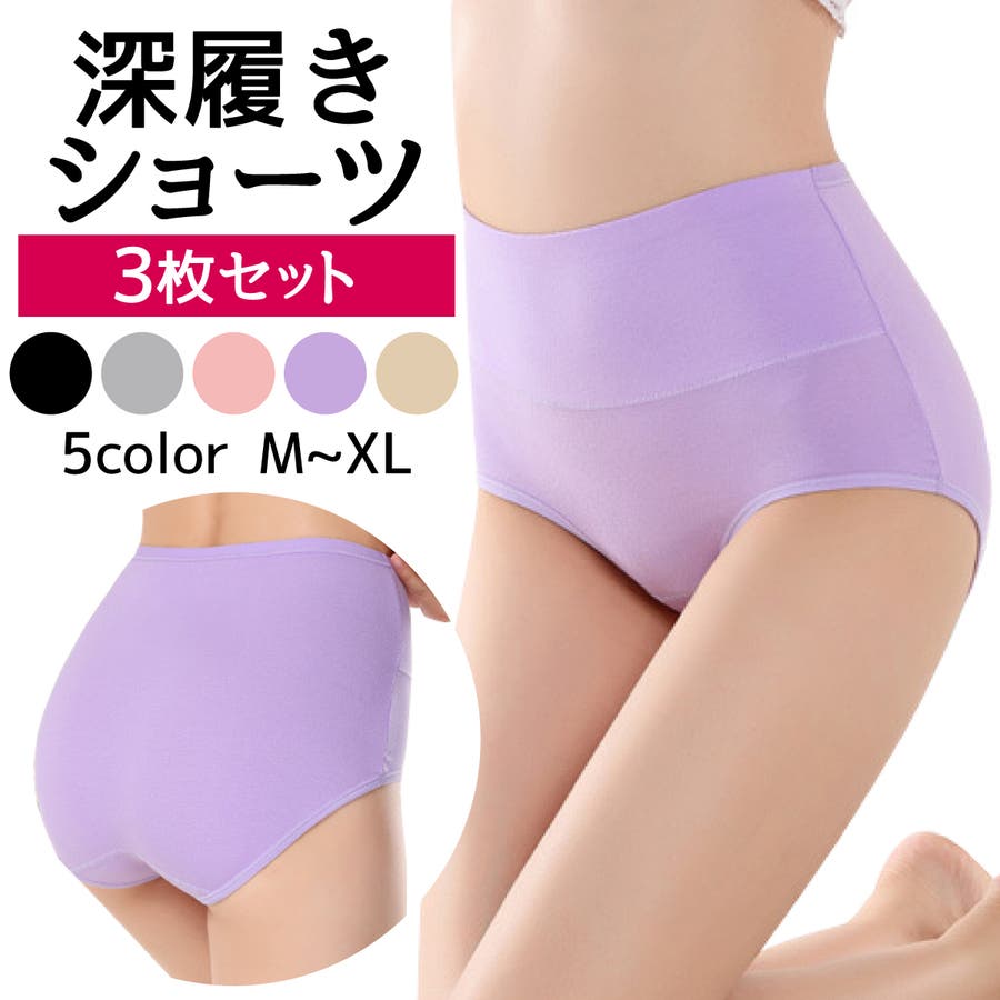 ショーツ レディース 綿 3枚セット お腹 すっぽり 深め 深履き 産後 30代 40代 50代 ハイウエスト ゆったりパンツ パンティ 締め付けない リラックス 楽ちんパンツ 無地 黒 ブラック ピンク パープル グレー L XL ヨガ ジム 在宅 下着 インナー 女性 レディース
