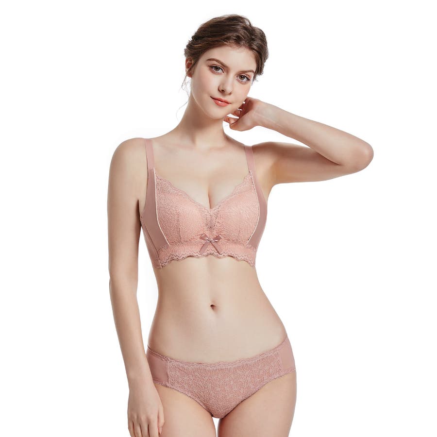 ノンワイヤーで締め付け感がないのにしっかり盛れる美乳ブラ&ショーツセット♪