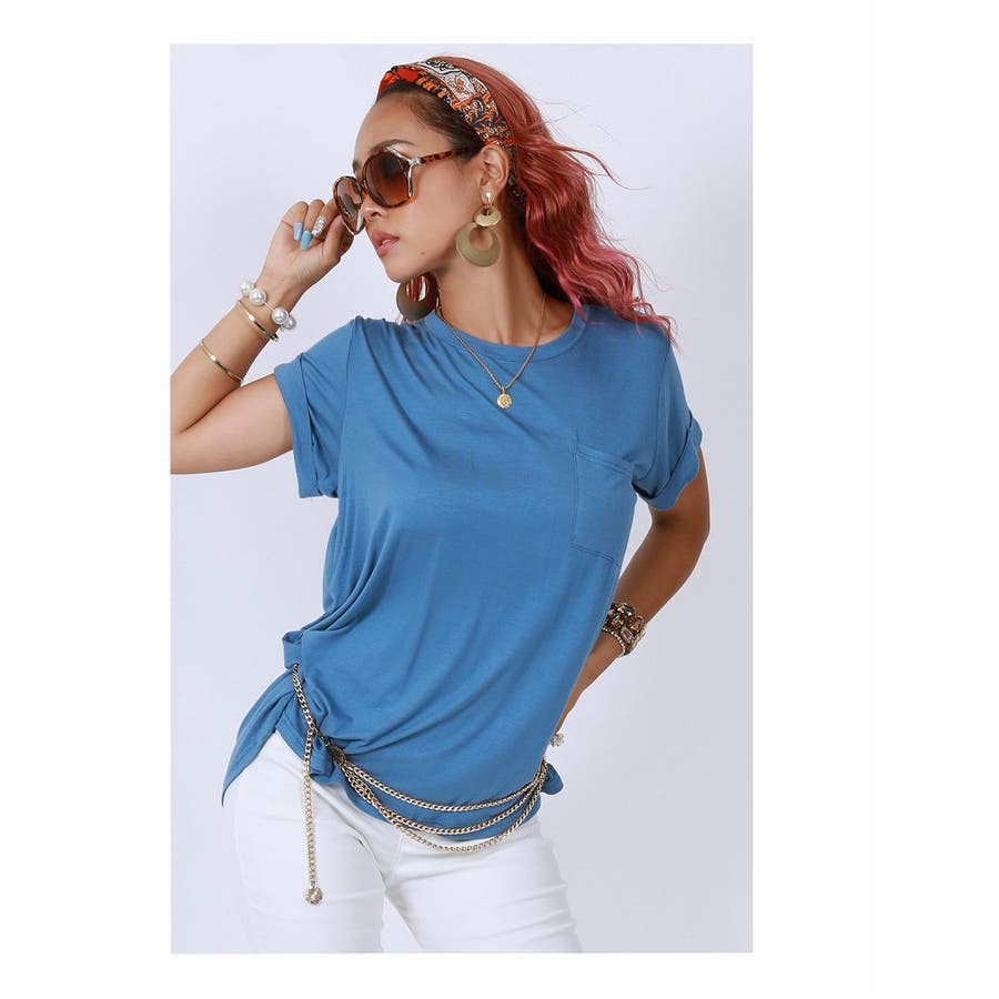☆肌触り抜群な薄手の素材の半袖Tシャツは、折り返しデザインになったロールアップ袖がおしゃれで女子力UP。