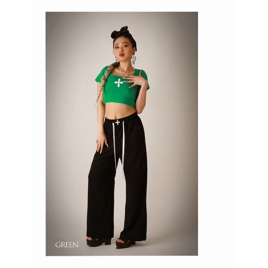 ☆ゆるダボワイドパンツはミニTと相性抜群!ウエストをより細く強調できてスタイルアップ!