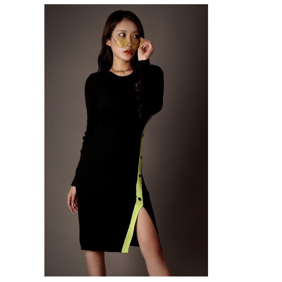 ☆ボタンデザインとサイドスリットが個性的な長袖ニットワンピース!