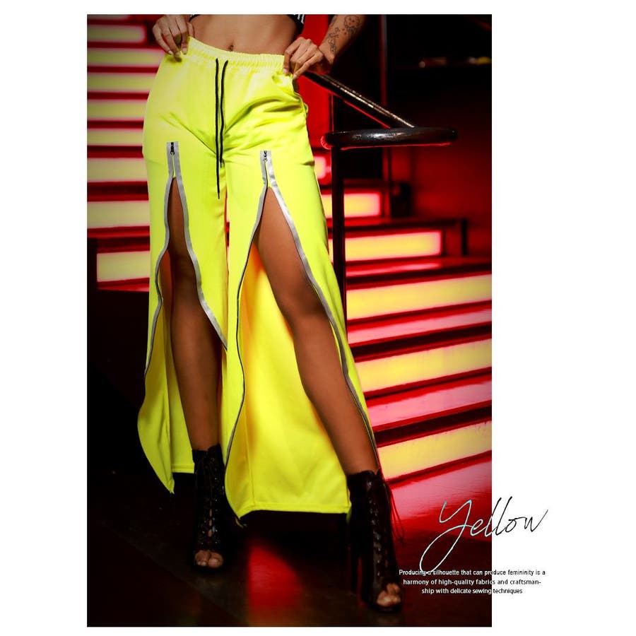 ☆派手好きダンサーさんにおすすめの、個性派原色カラーの蛍光イエローとオレンジと、シンプルなブラックの3色展開のワイドフレアパンツ!