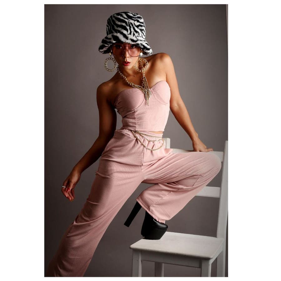 ☆ セクシーさ全開!ショート丈ベアトップとロングパンツのセットアップ。LA風のおしゃれスタイルを楽しもう♪