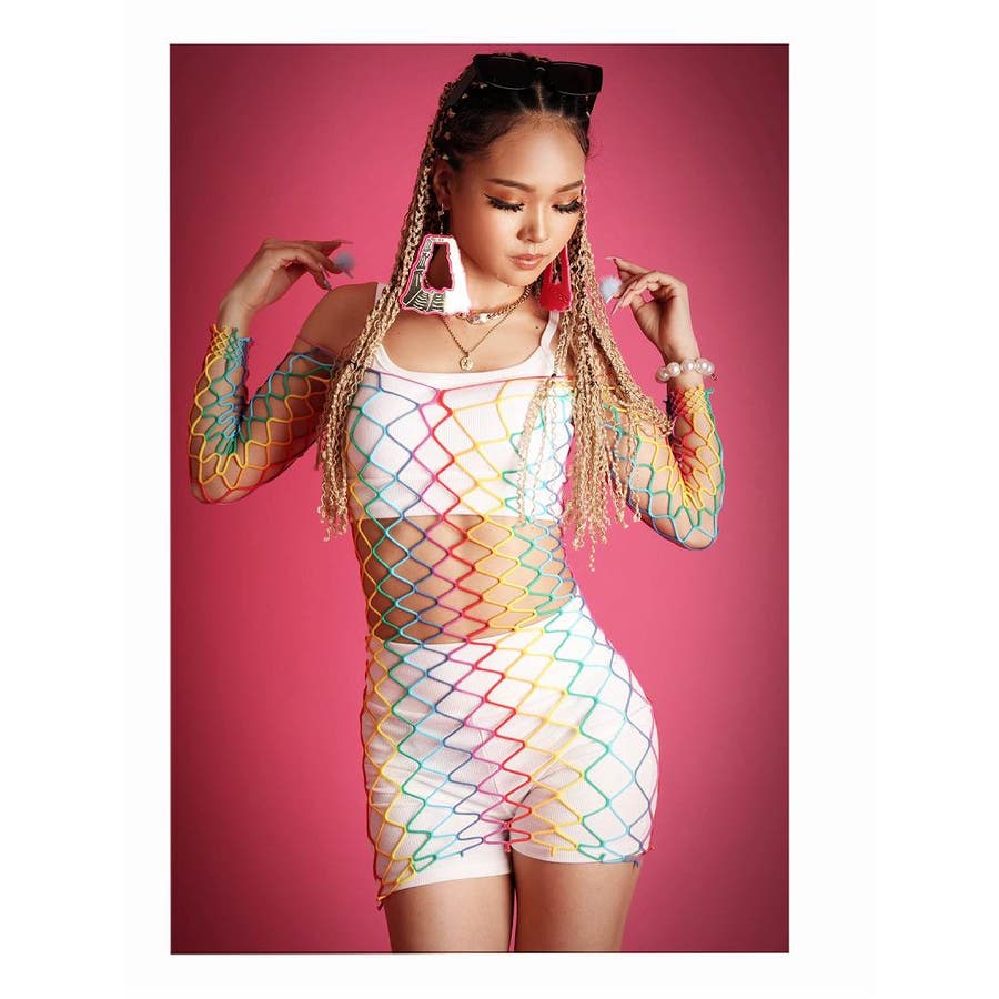 ☆カラフルなレインボーカラーが映える、セクシーなフィッシュネットボディウェア!