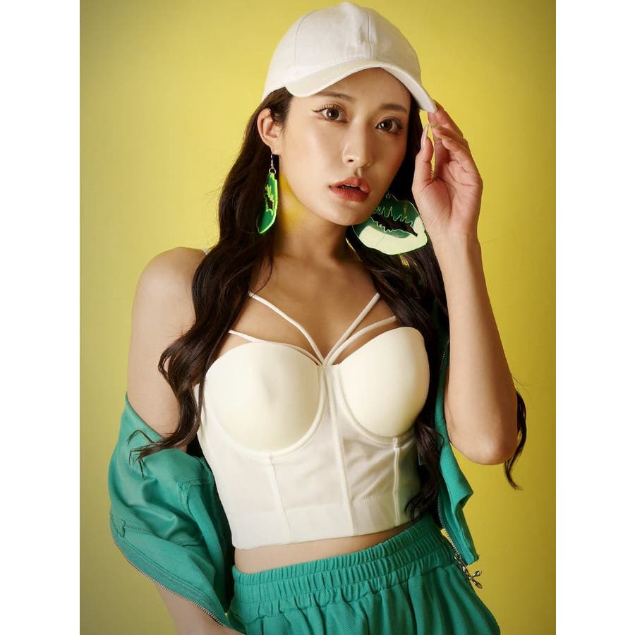 ☆ビスチェ風バストカットでセクシーに魅せる。カップ付きでバストを盛り上げ、クロップド丈でおしゃれ感アップ。フェスやパーティーで目を引く一枚。