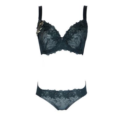 大きいサイズの美胸引き立つケミカルモチーフレースブラショーツセット