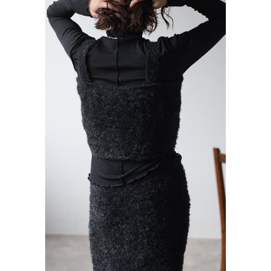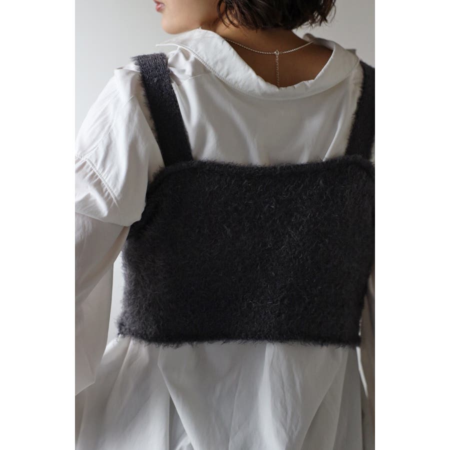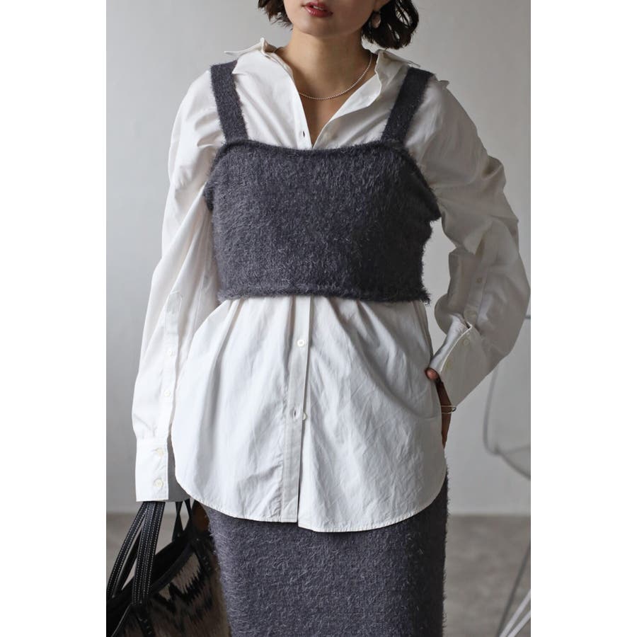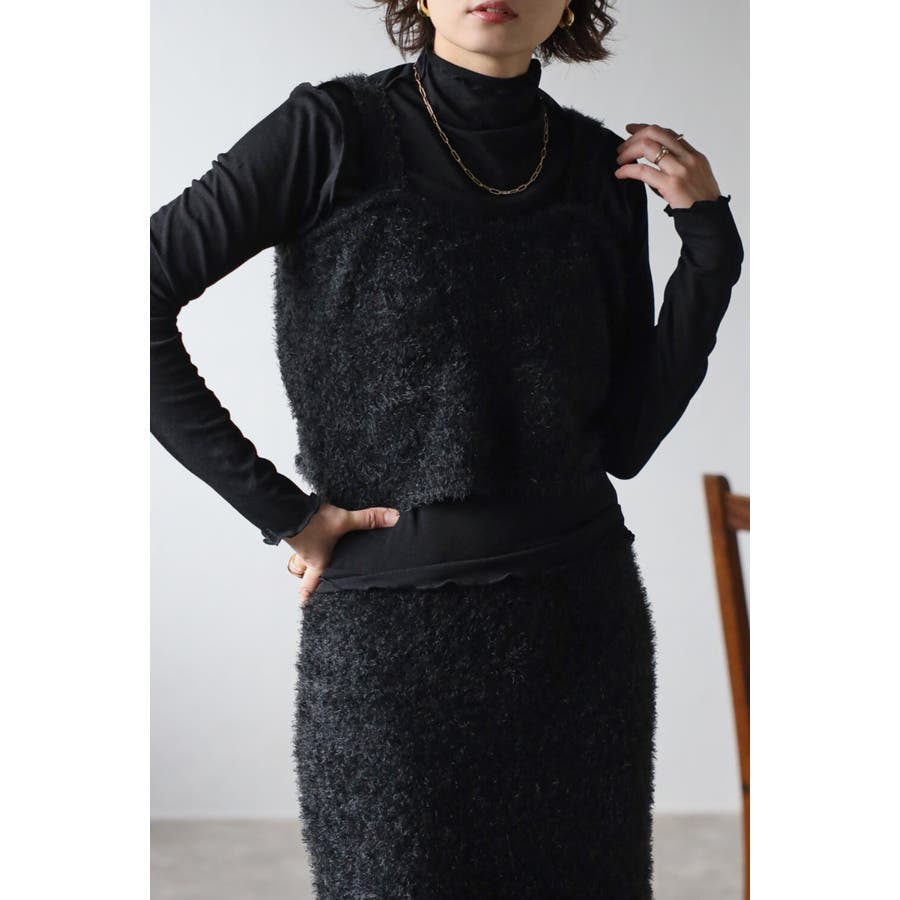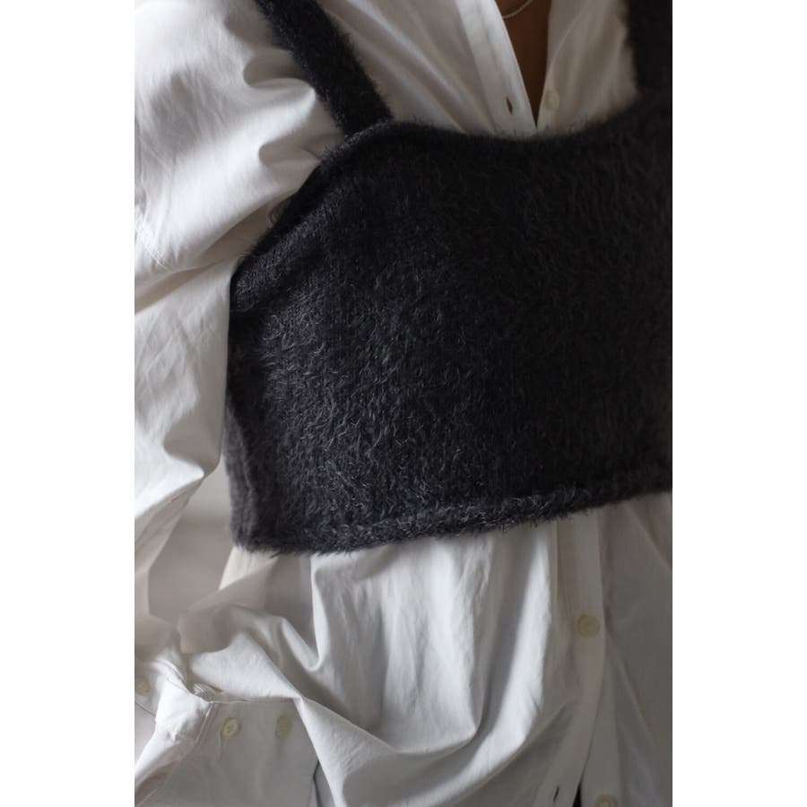毛足のあるシャギーニットにベア型ビスチェを組み合わせたトレンド感満載のアイテム。