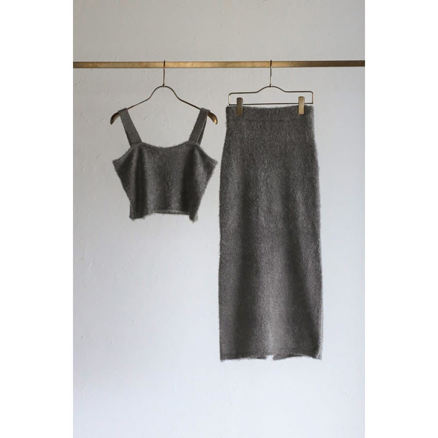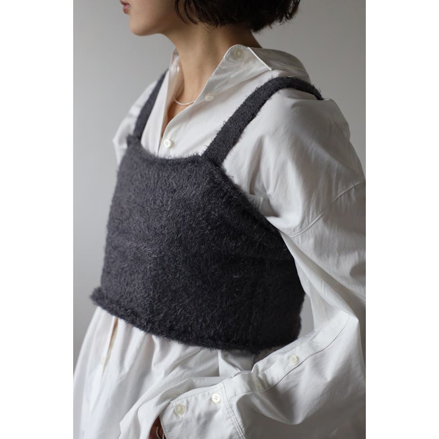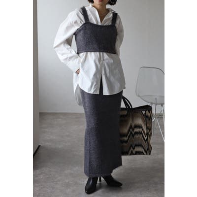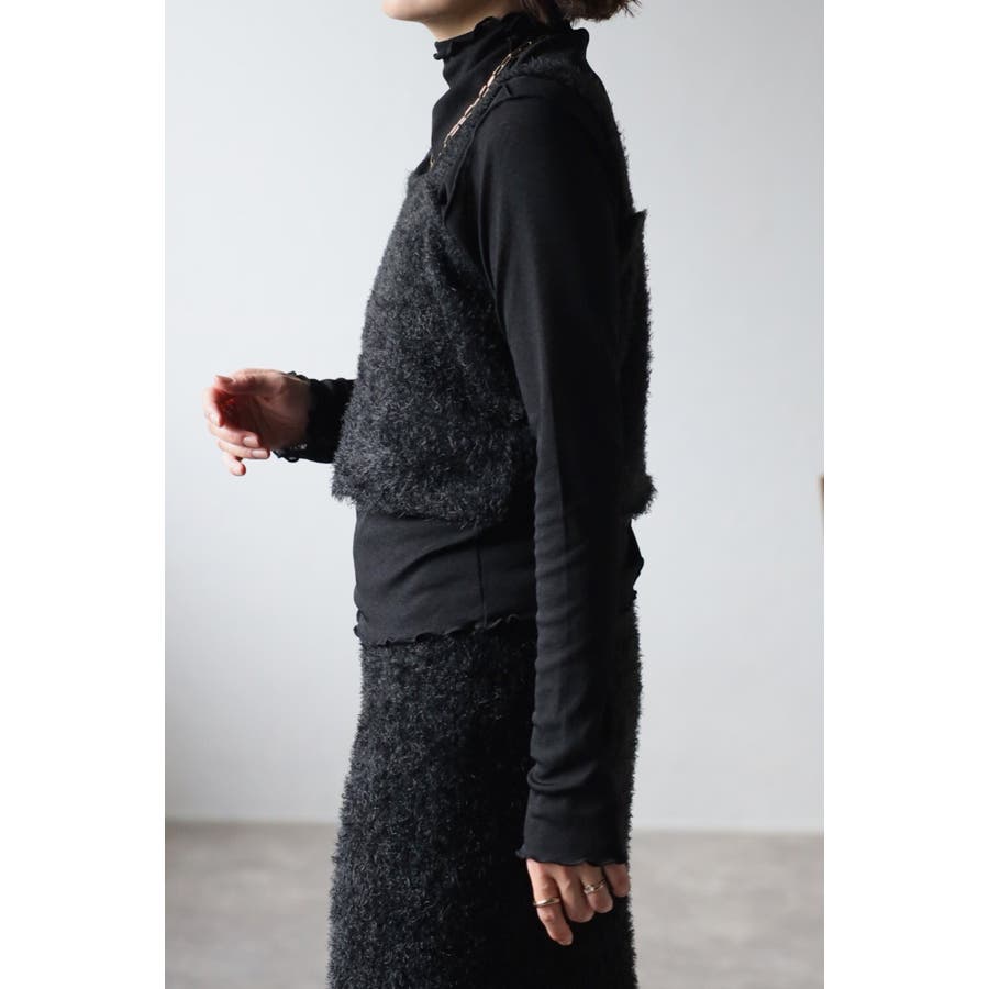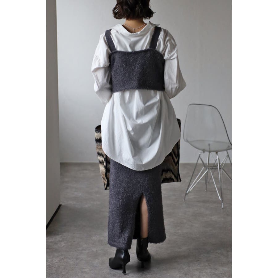 毛足のあるシャギーニットにベア型ビスチェを組み合わせたトレンド感満載のアイテム。