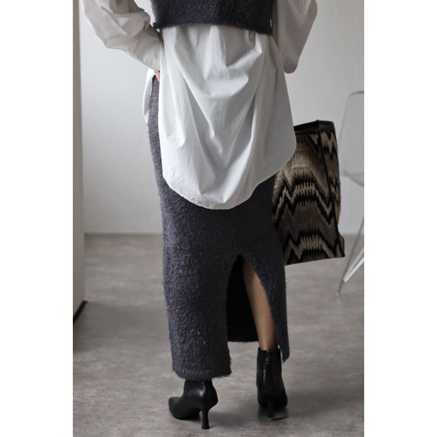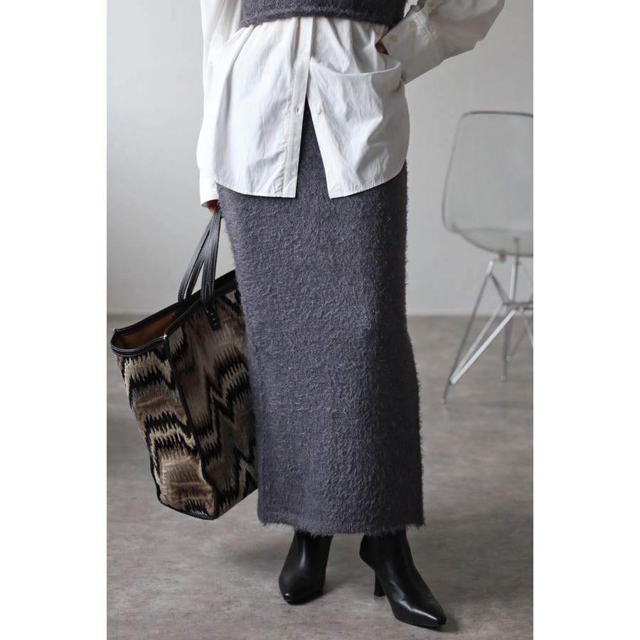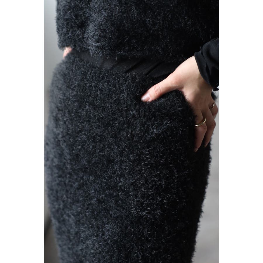 トレンドライクな毛足のあるシャギーニット素材のタイトスカート。