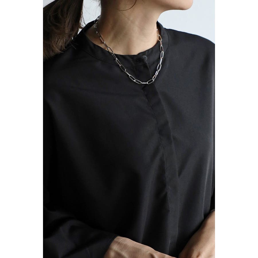 首周りをすっきり見せてくれるバンドカラーネックに、前立ては半分まで開閉可能なプルオーバータイプです。
