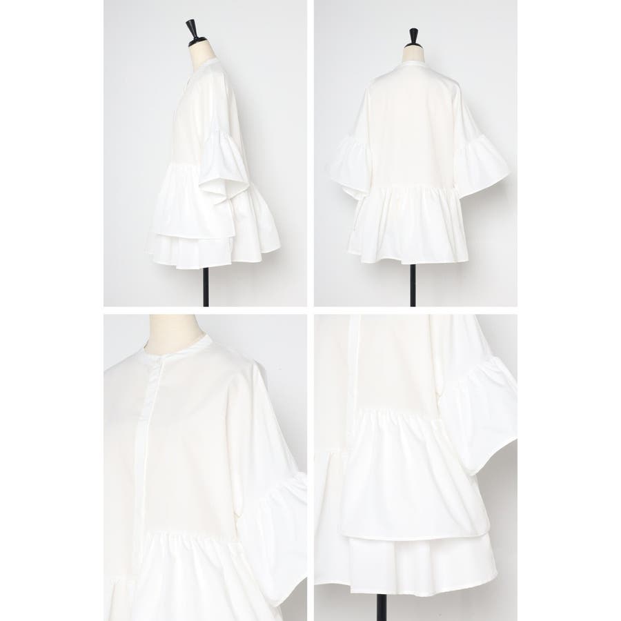 さらりとした肌触りのシャツ素材で、ややハリがある生地感がフリルをキレイに見せるポイント。