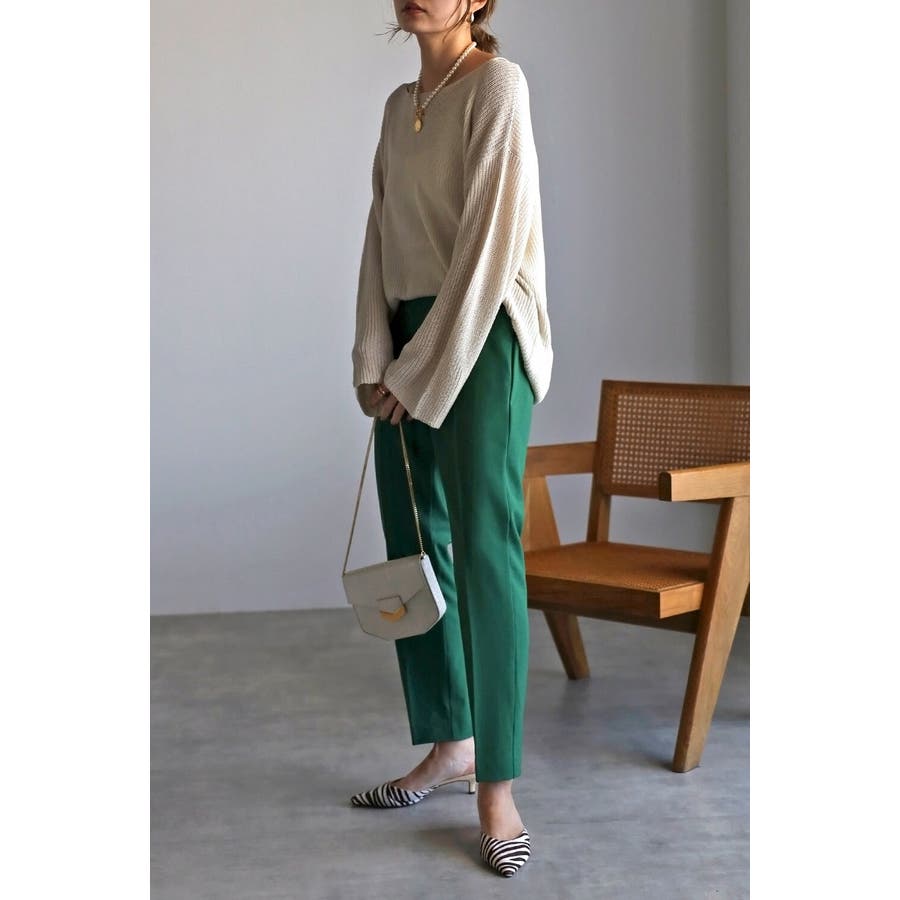 ドロップショルダーのシルエットで女性らしくゆるっと楽に着られて、カジュアルにもフェミニンにも重宝するニットプルオーバーは着回し力抜群。