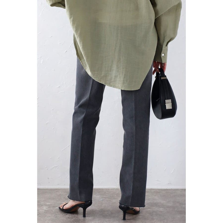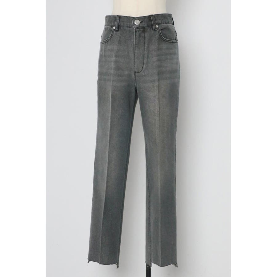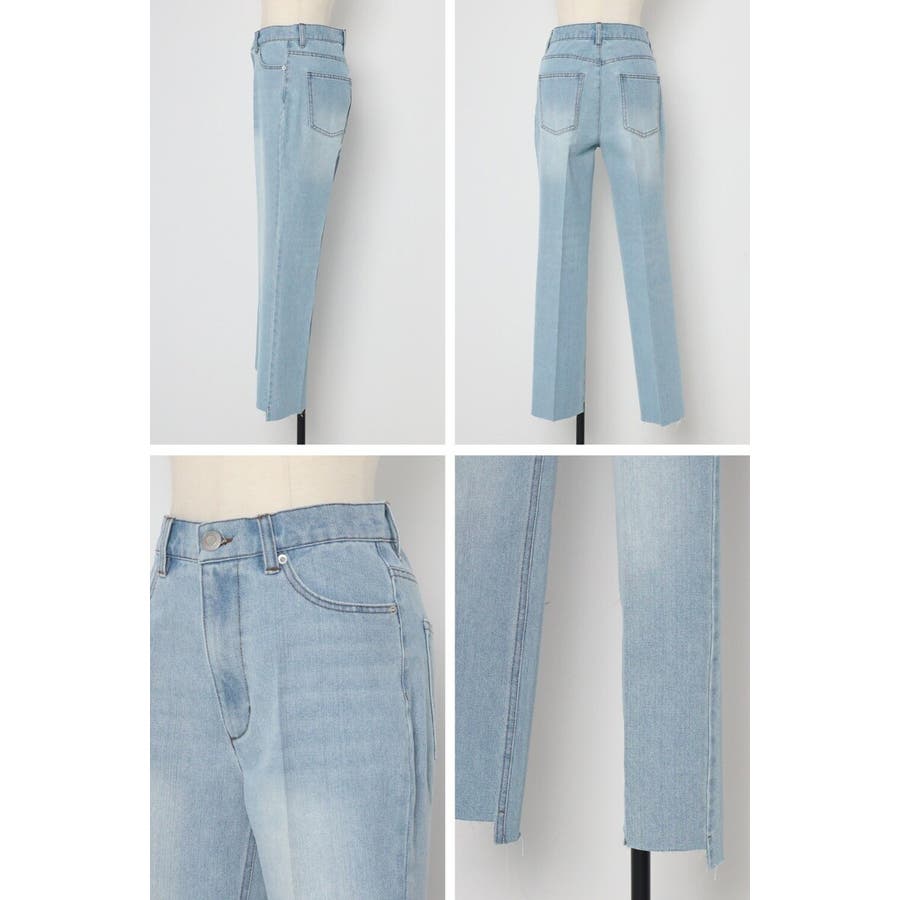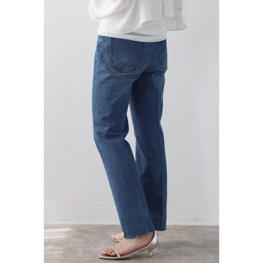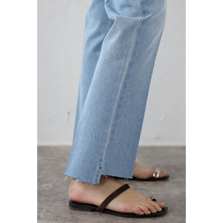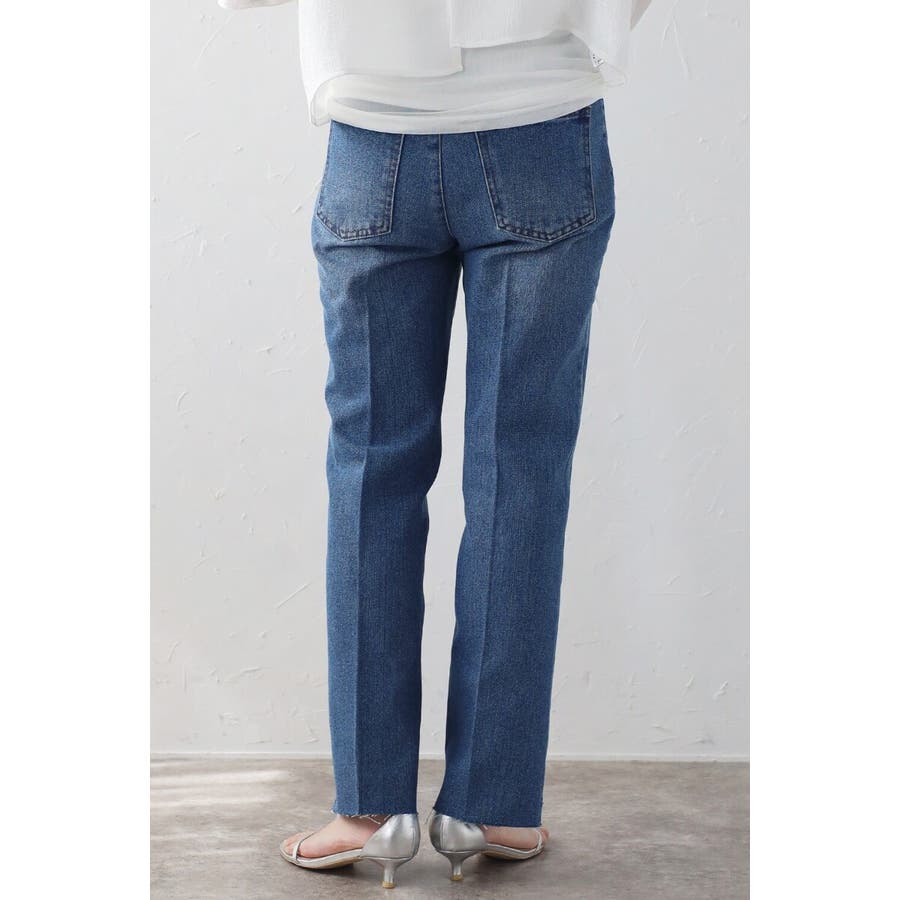段差にデザインされた裾のカットオフ加工がこなれ感のあるテーパードデニム。