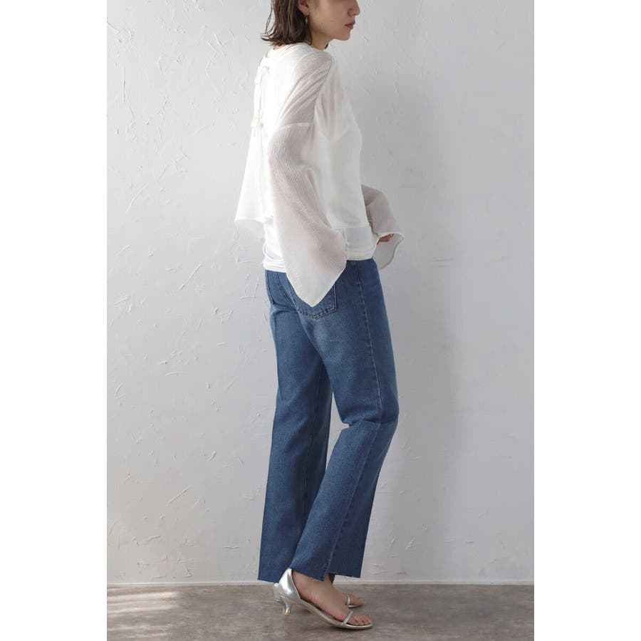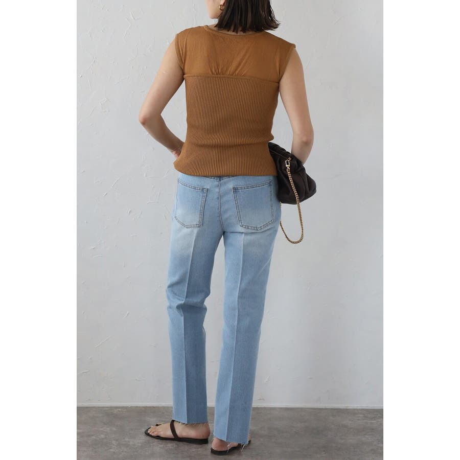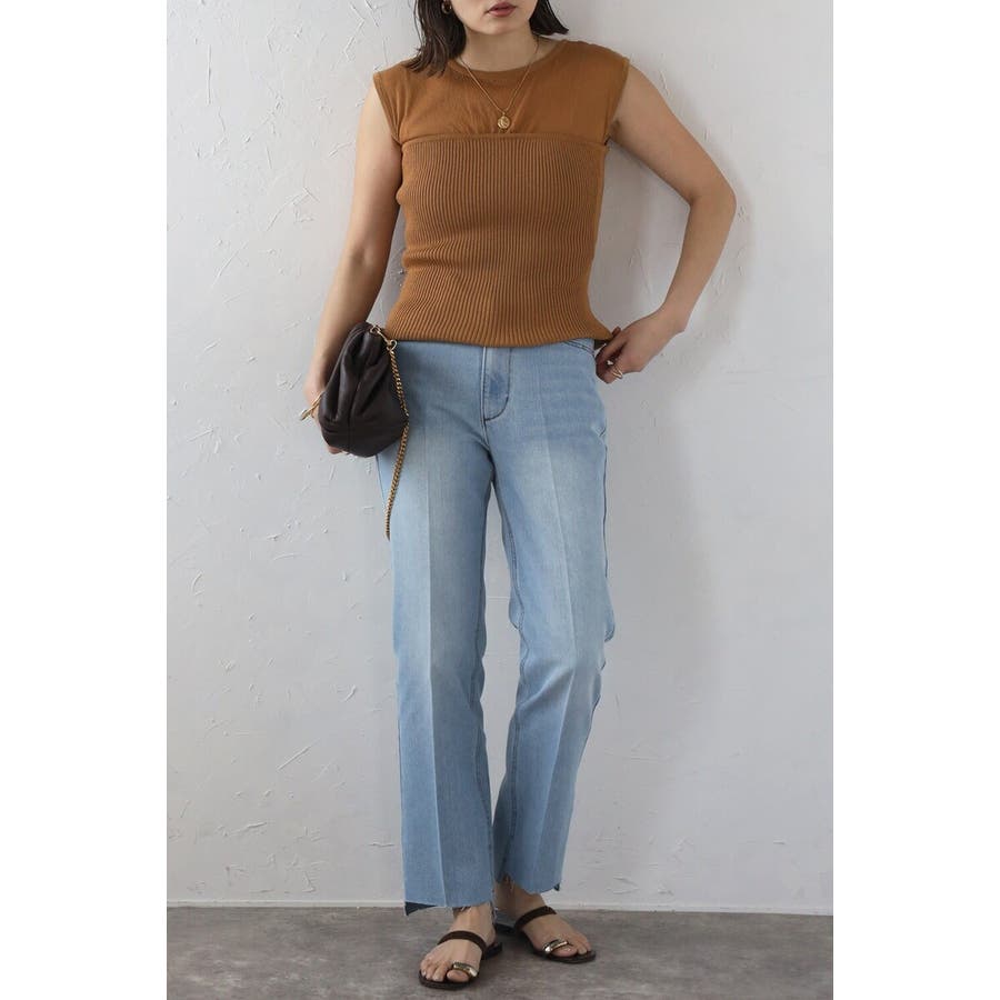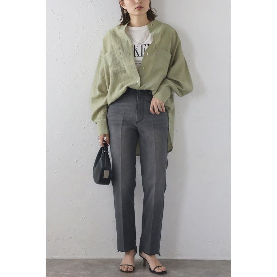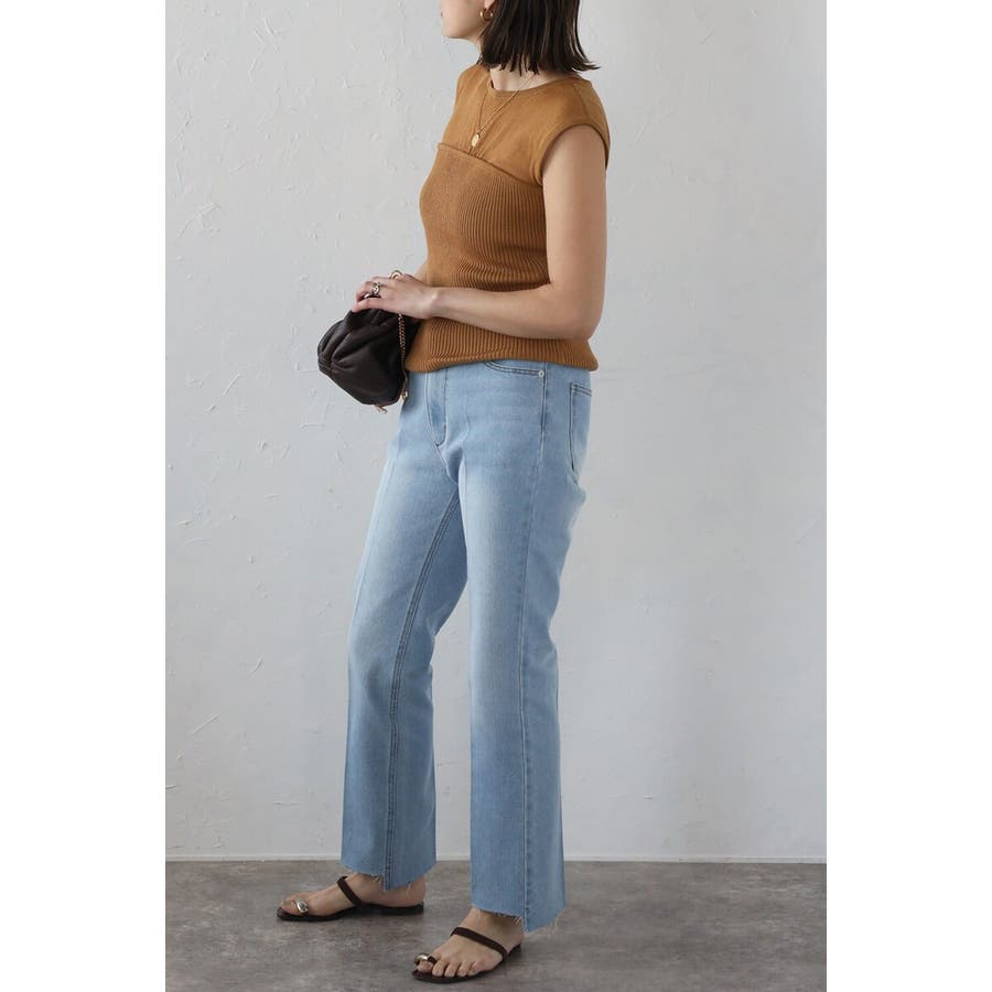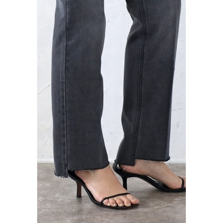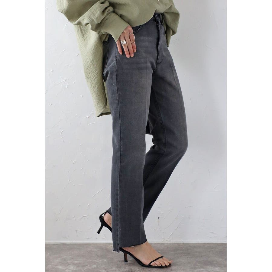 段差にデザインされた裾のカットオフ加工がこなれ感のあるテーパードデニム。