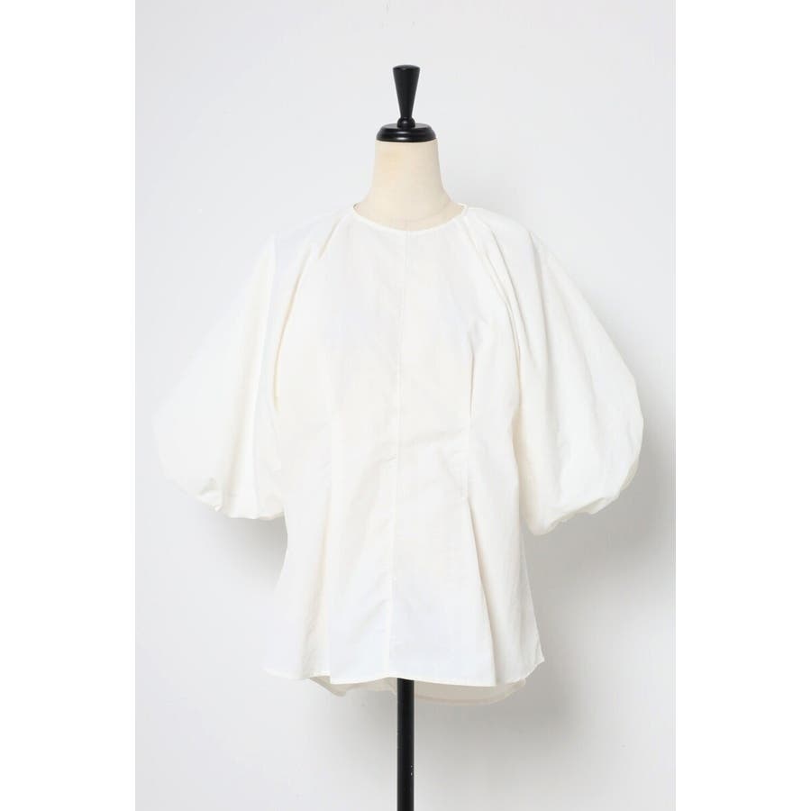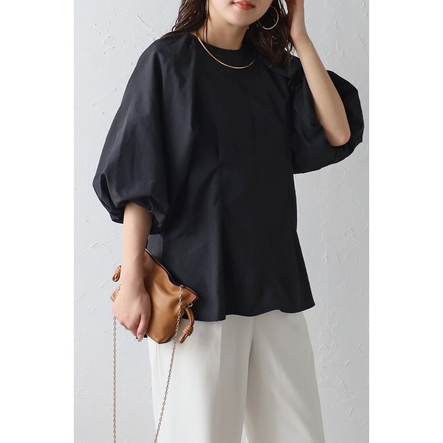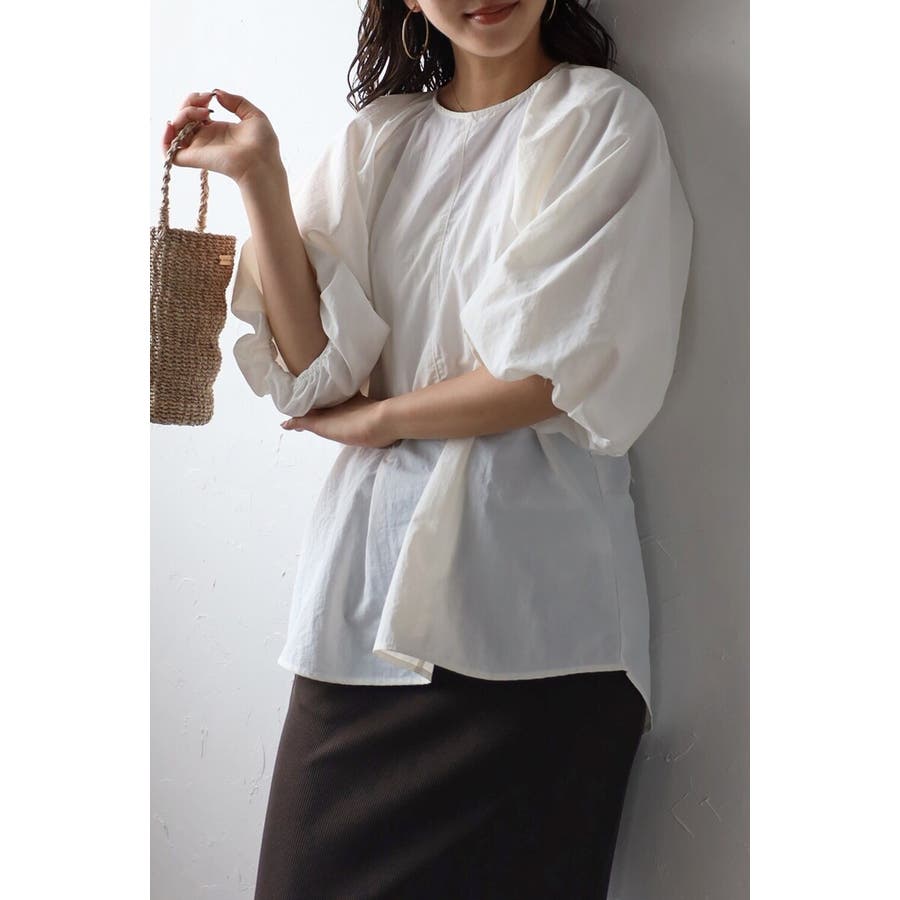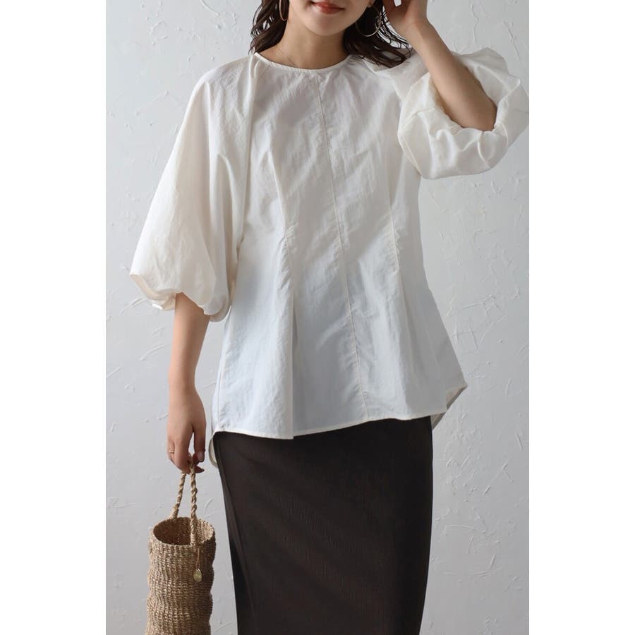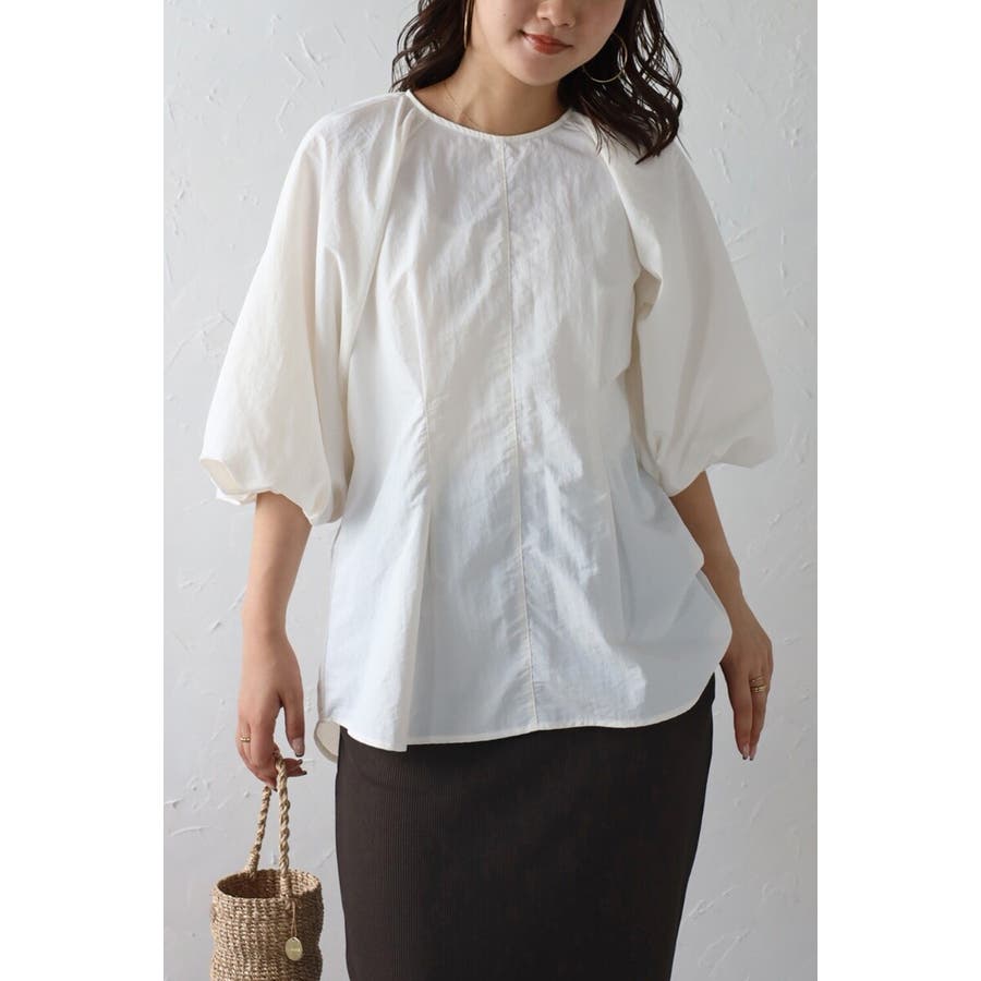 優雅で女性らしいシルエット。バルーンスリーブのウエストタックブラウス