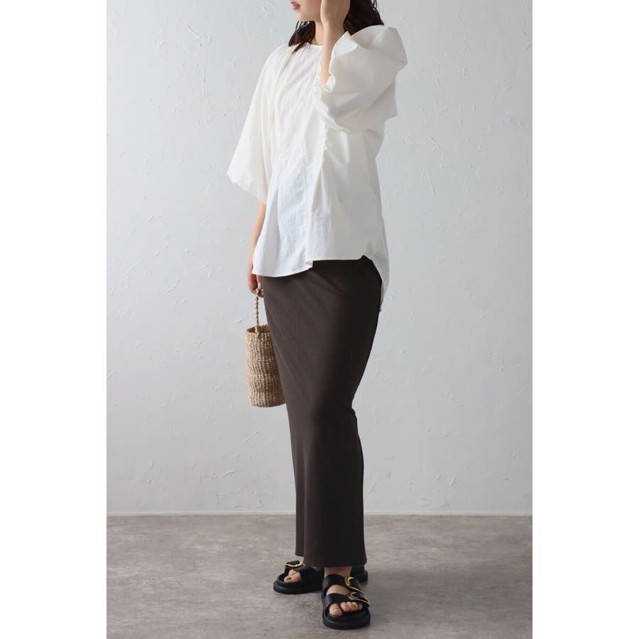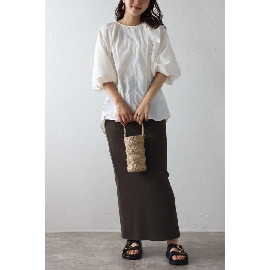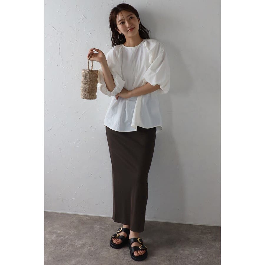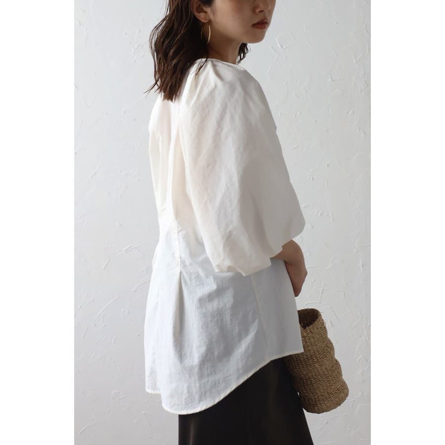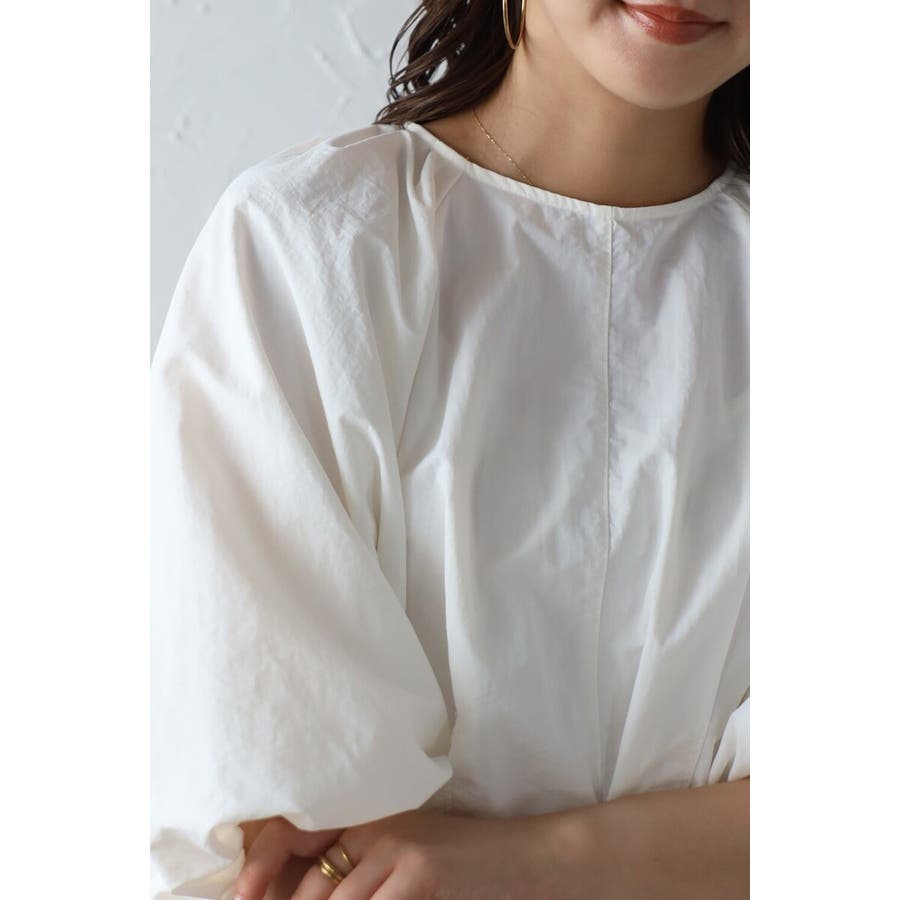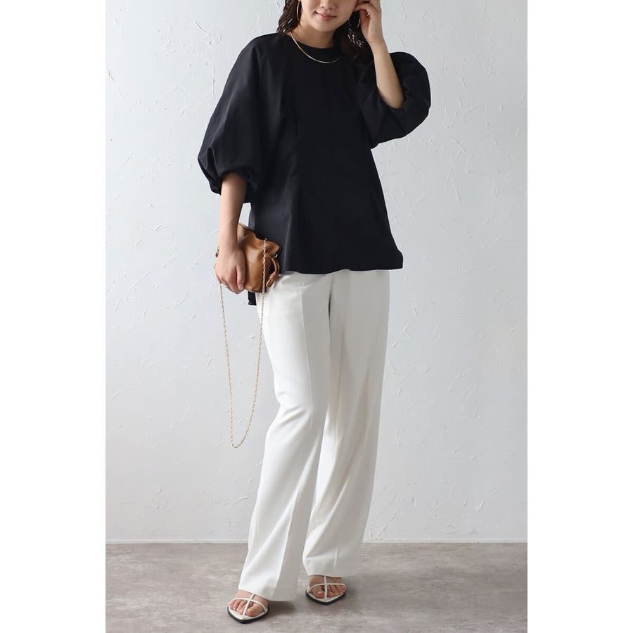 優雅で女性らしいシルエット。バルーンスリーブのウエストタックブラウス